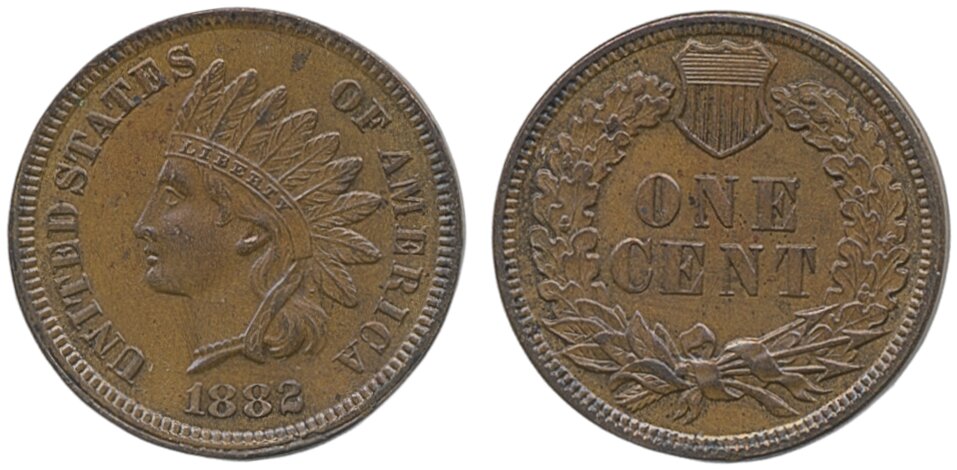 Coins, U.S.A. KM 90a, 1 cent 1882. XF-UNC.