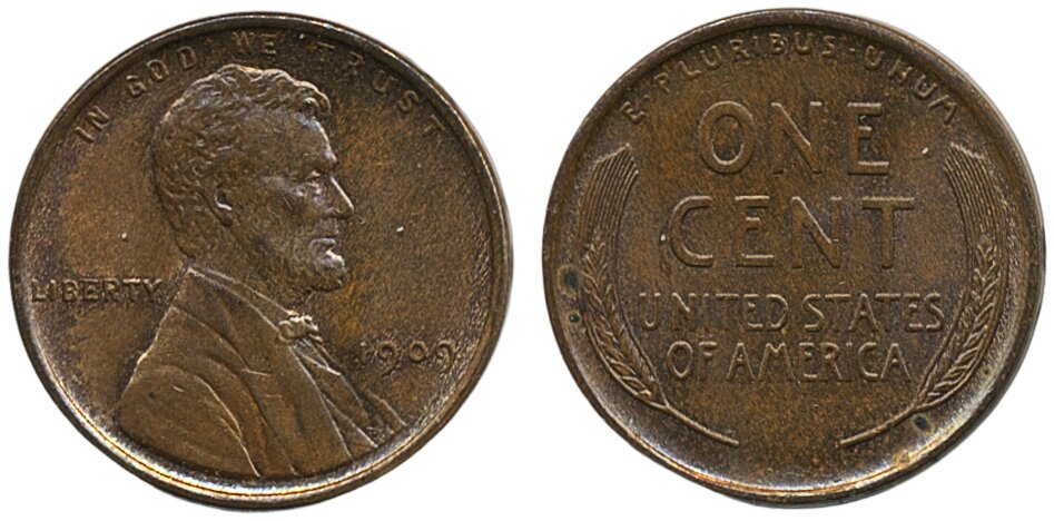 Coins, U.S.A. KM 132, 1 cent 1909. Small spots on reverse. XF-UNC.