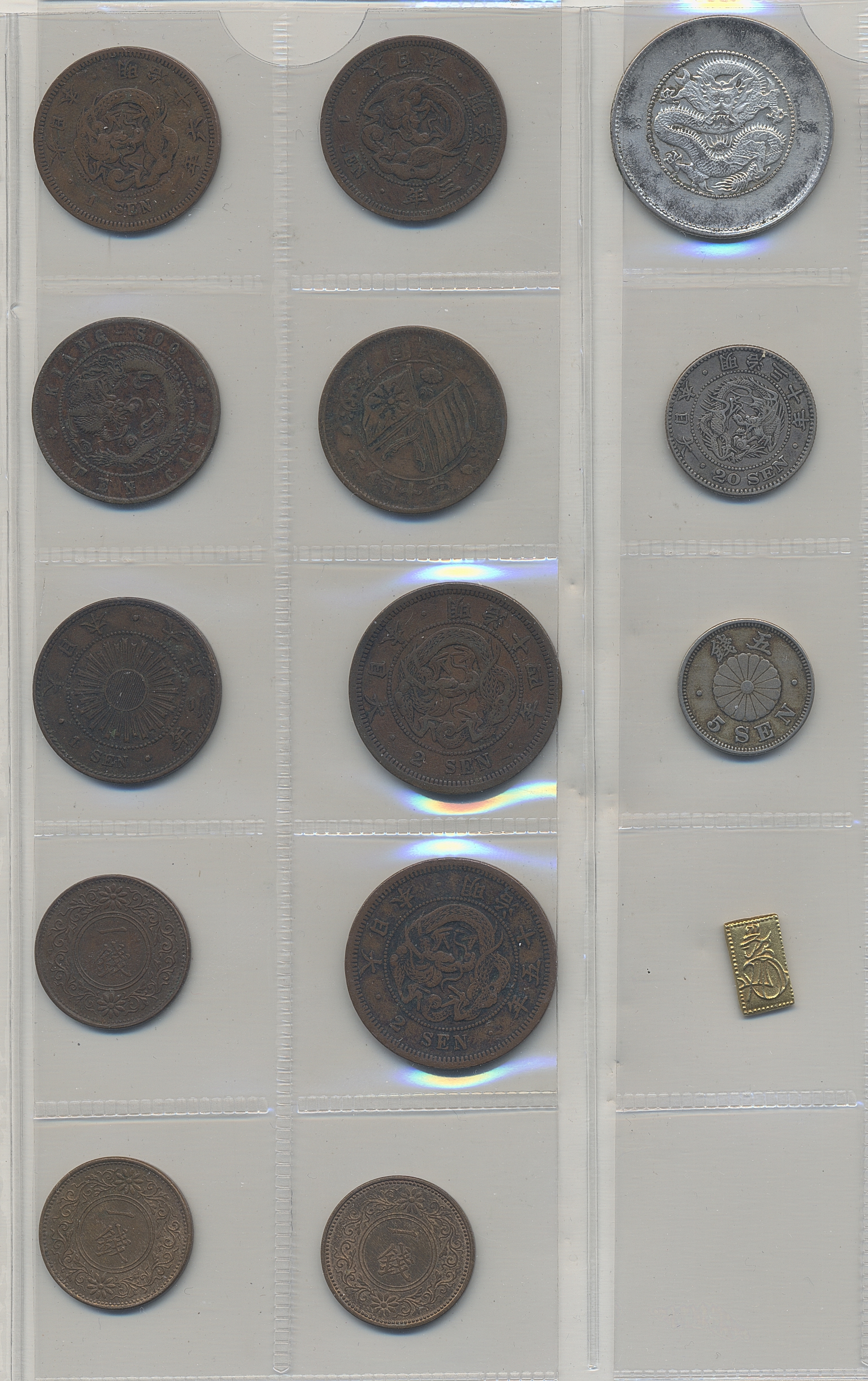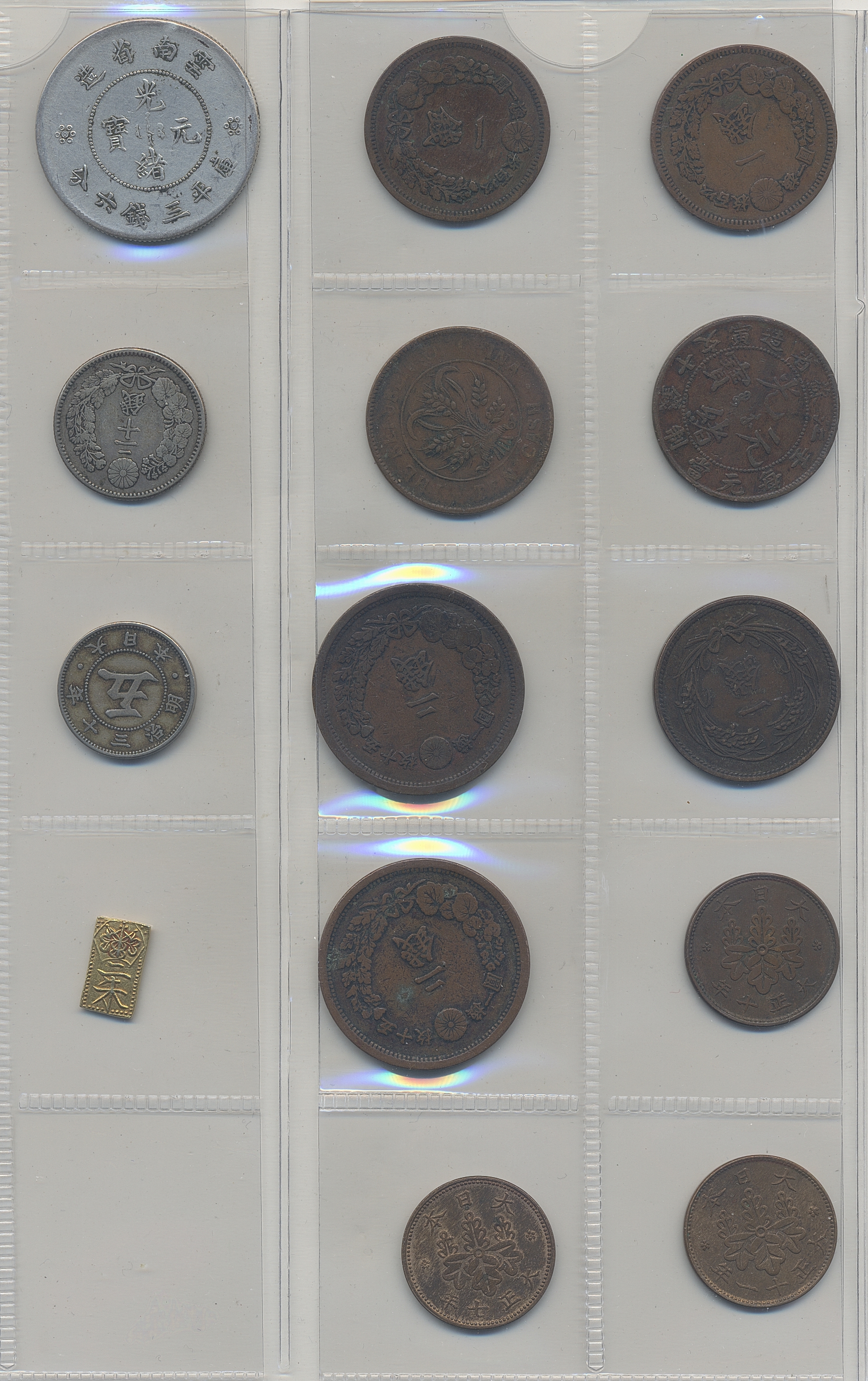 Coins, ALL WORLD, Asia. Small lot of Chinese and Japanese coins 14 pcs including gold 2 shu. Please inspect! VG-XF/UNC.