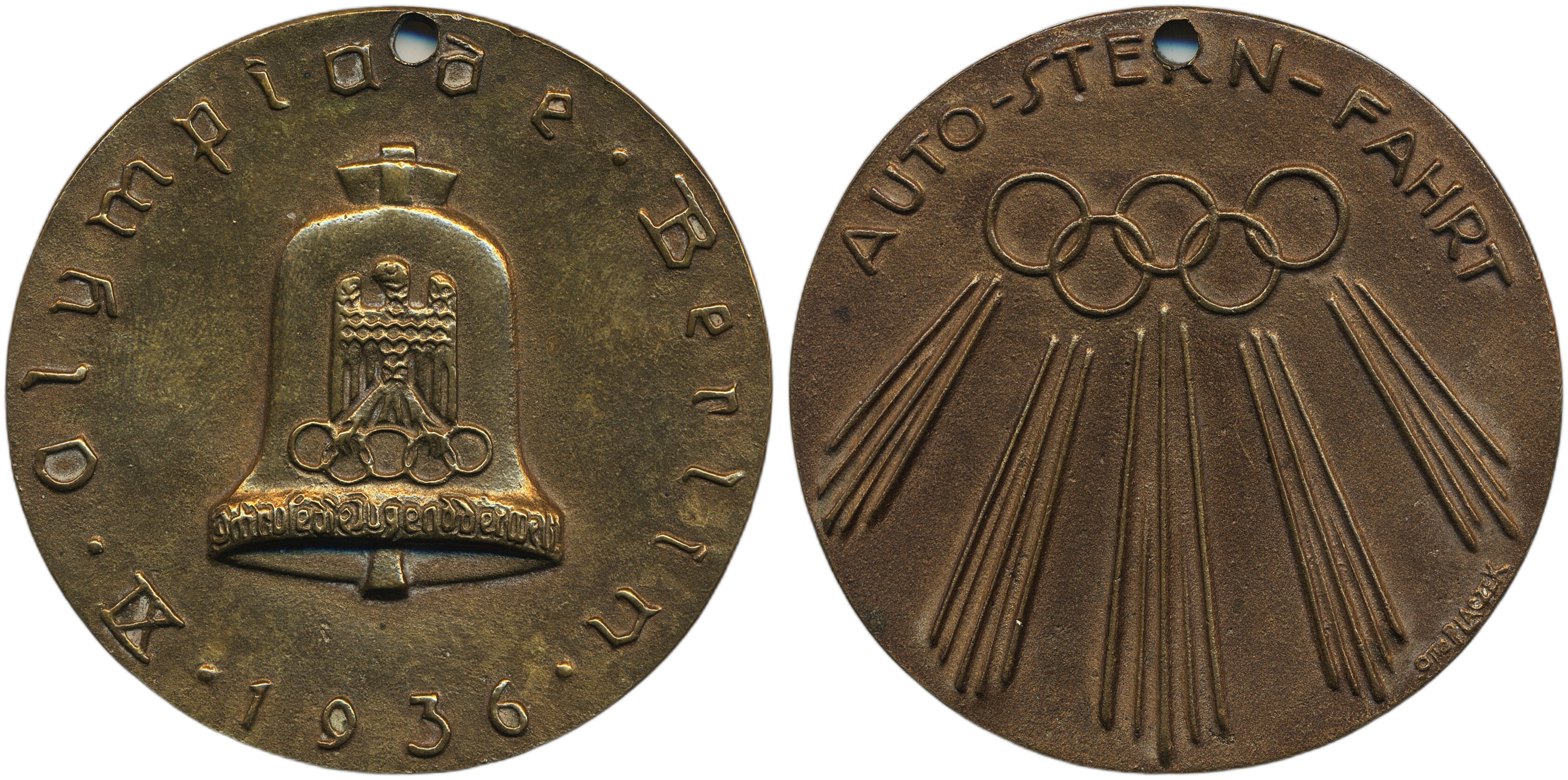 Medals, non-regal, Germany, Reich. "XI Olympiade Berlin 1936/AUTO-STERN-FAHRT". Berlin olympic automobile rally medal. Medal in bronze, 70 mm, 119 g. Drilled. VF-XF.