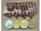 Medals, non-regal, Russia. One box with five medals, 1945–1958, military, mixed quality.