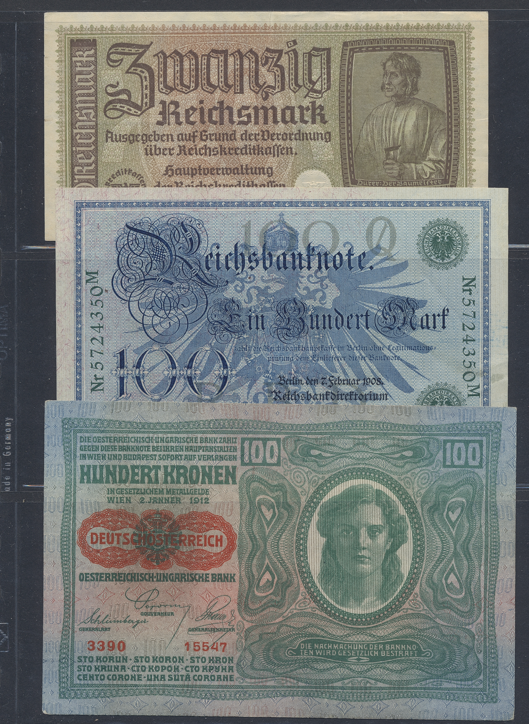 Banknotes, Germany, Mixed. One album with 37 banknotes, 1908–1948, mixed quality.