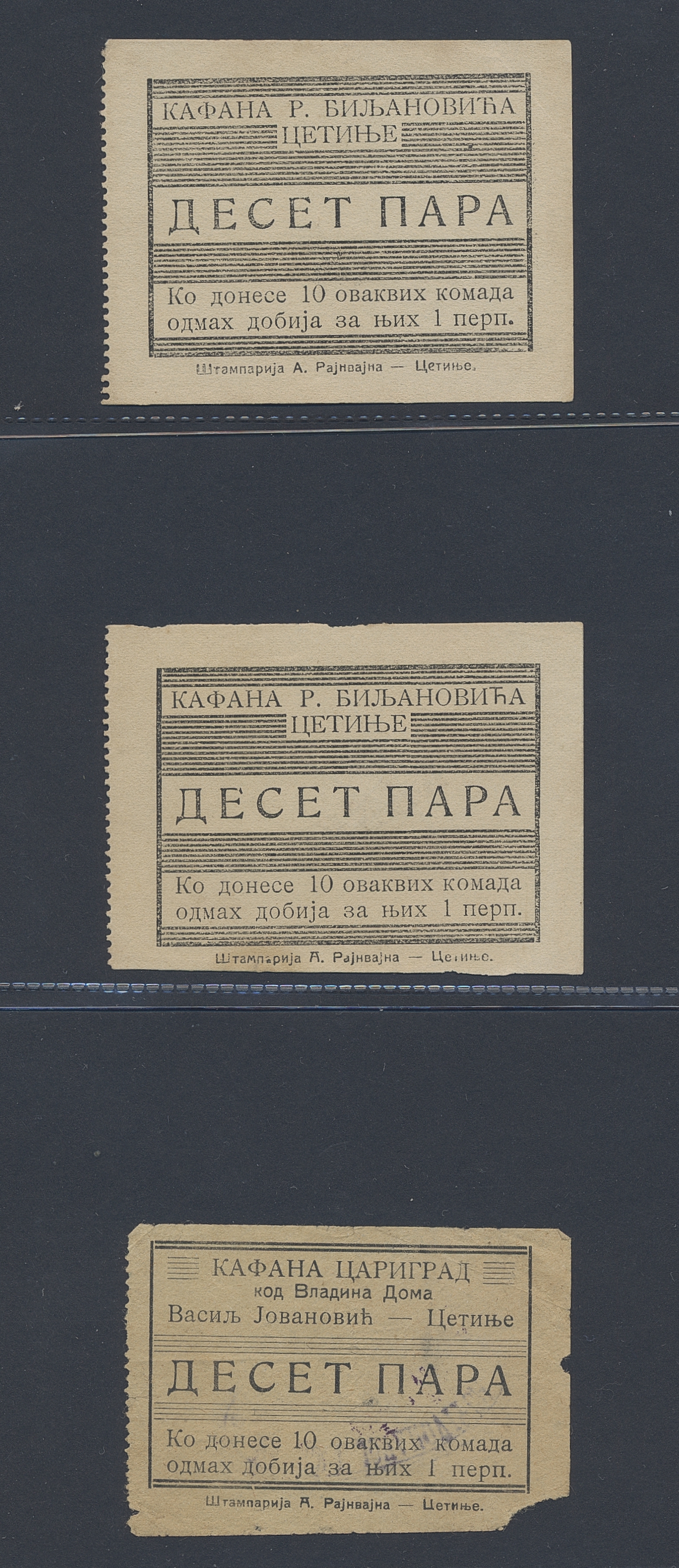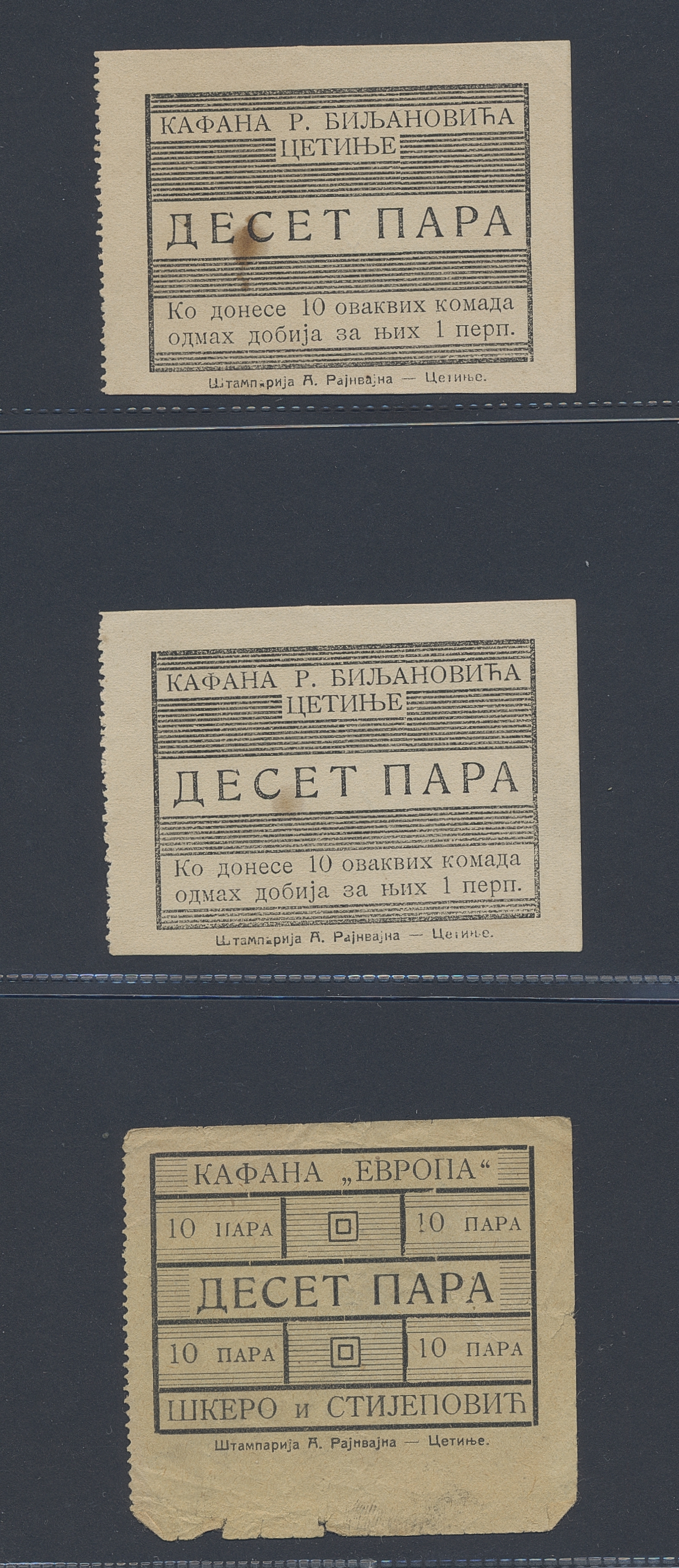 Banknotes, Montenegro. Canteen chits/coupons of WWI era. Three different designs in six examples. Please inspect!