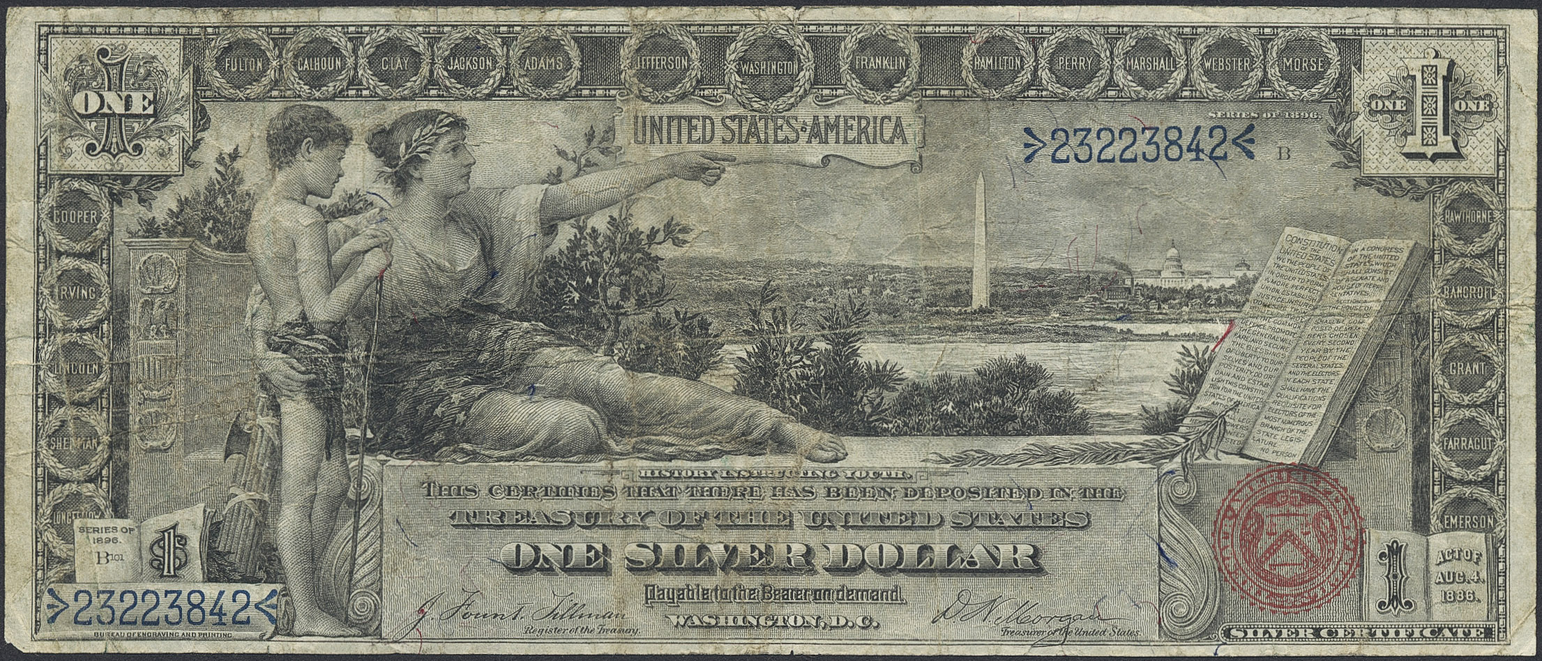 Banknotes, U.S.A. Pick 335, 1 dollar 1896. Minor tears. F.