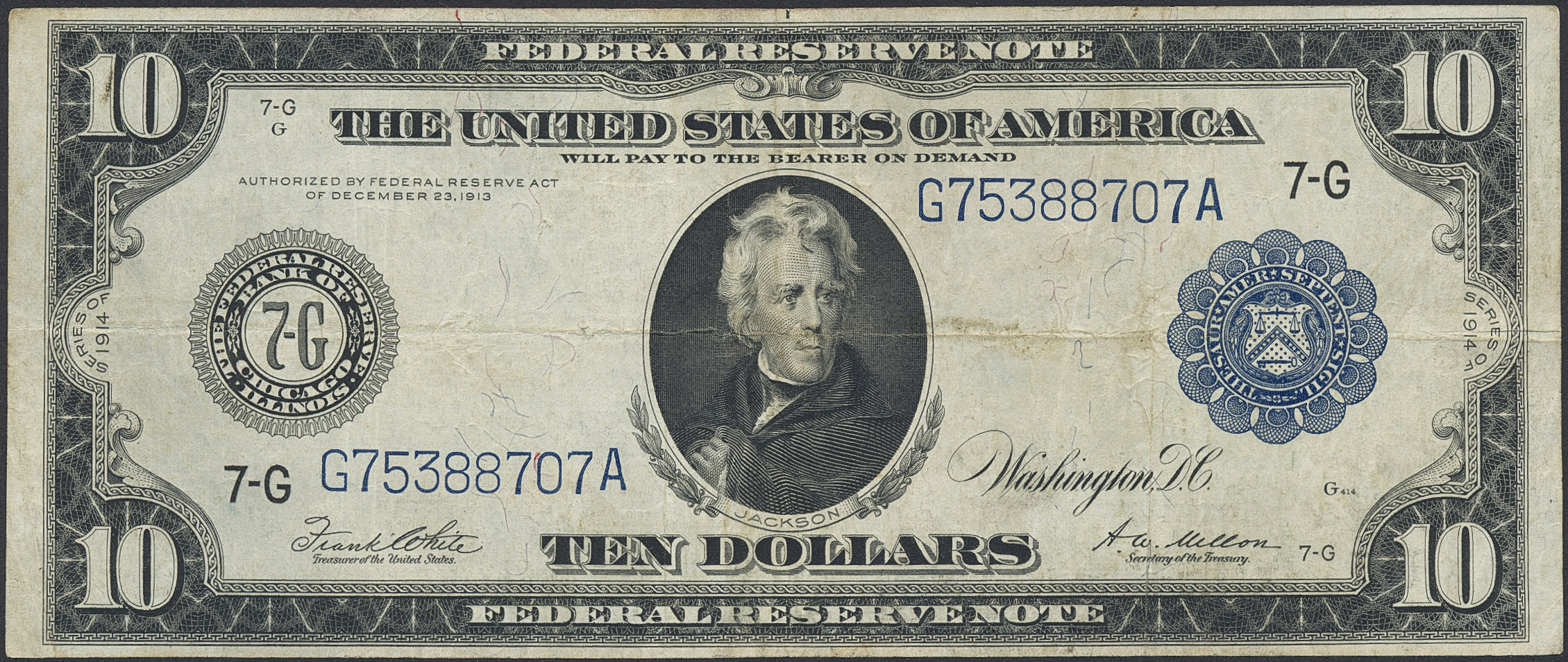 Banknotes, U.S.A. Pick 360b, 10 dollars 1914. F-VF.