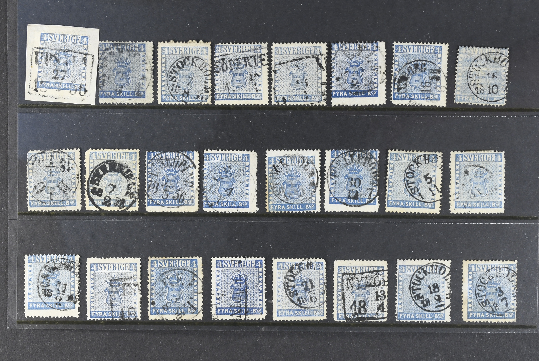 Sweden. Facit 2 used, 4 skill blue. 24 ex. in very mixed quality.
