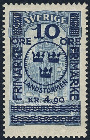 Sweden. Facit 125 ★, 1916 Landstorm II 10+4,90 / 5 kr blue. SEK 1200