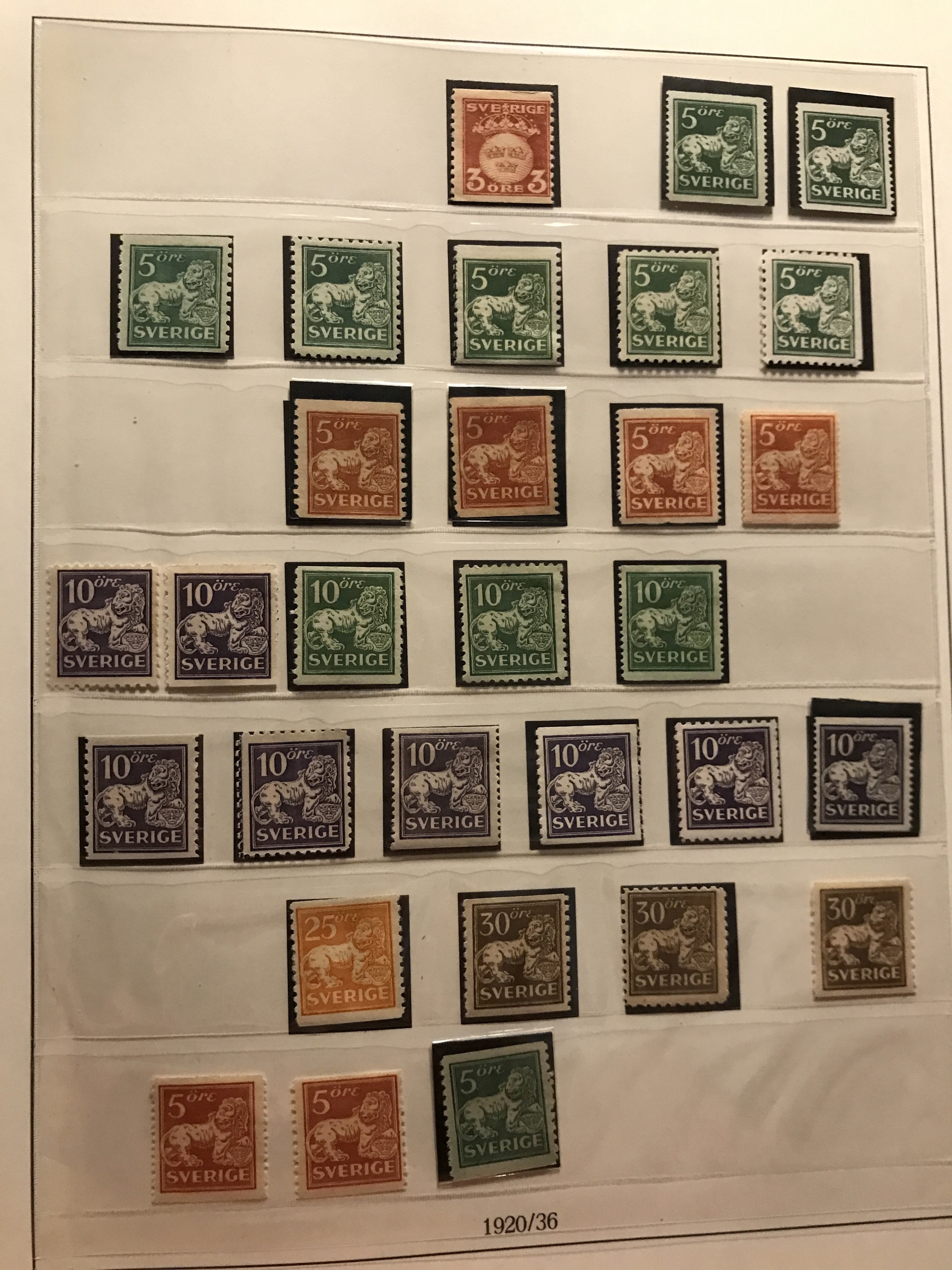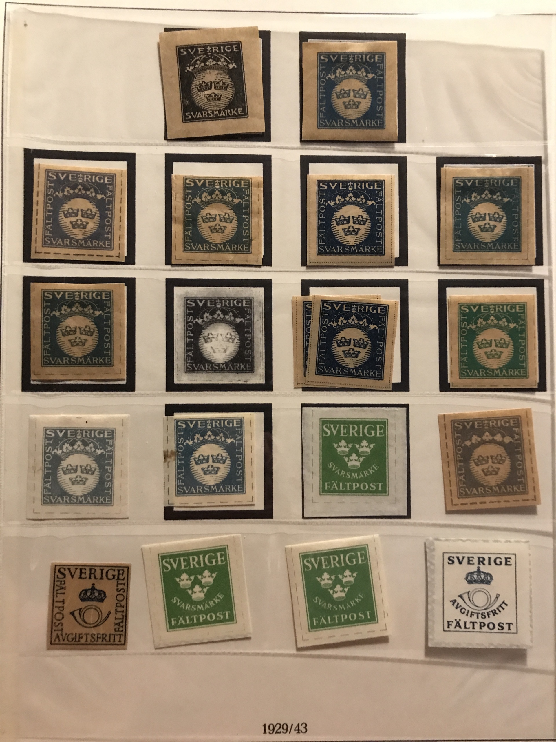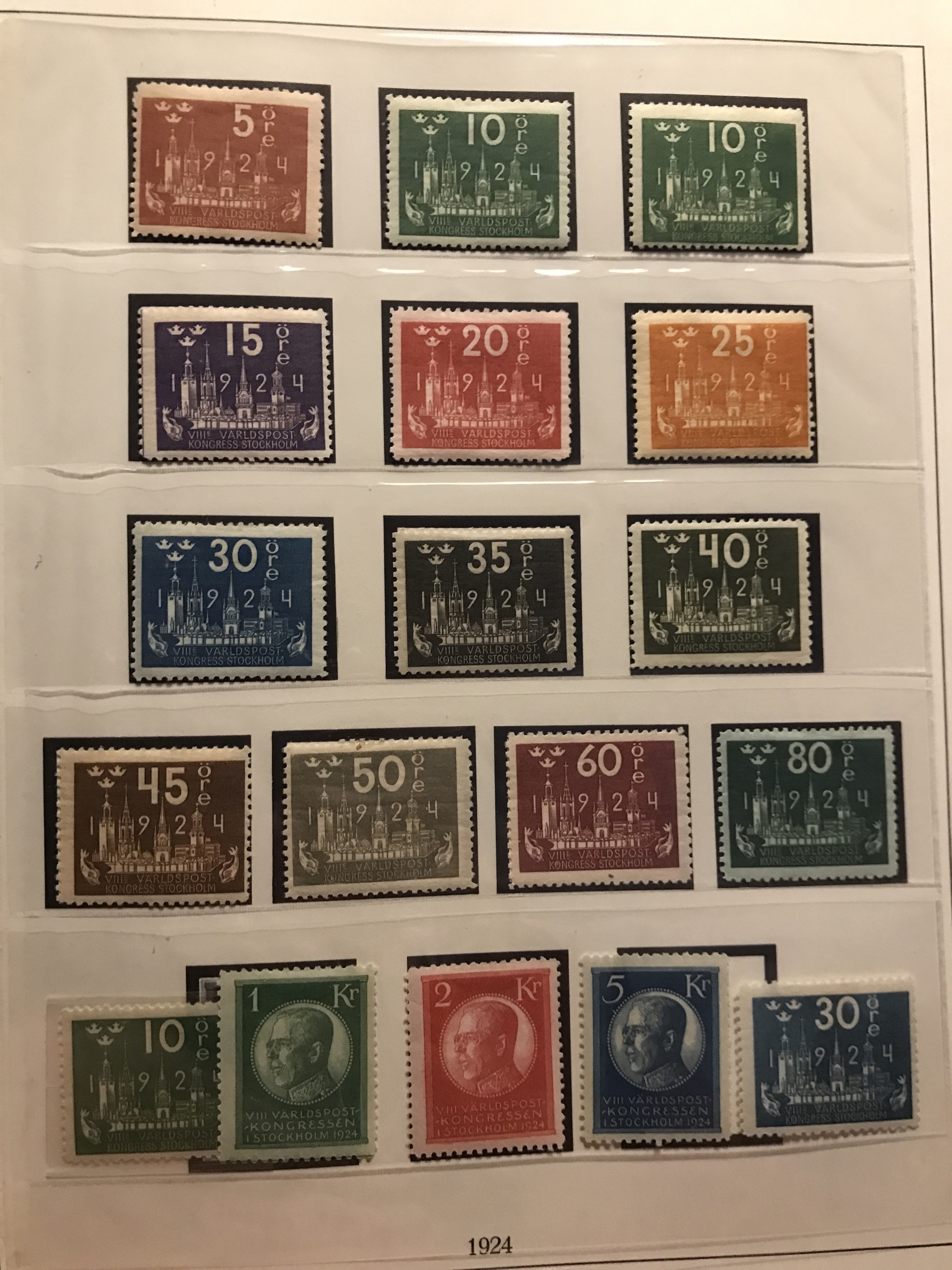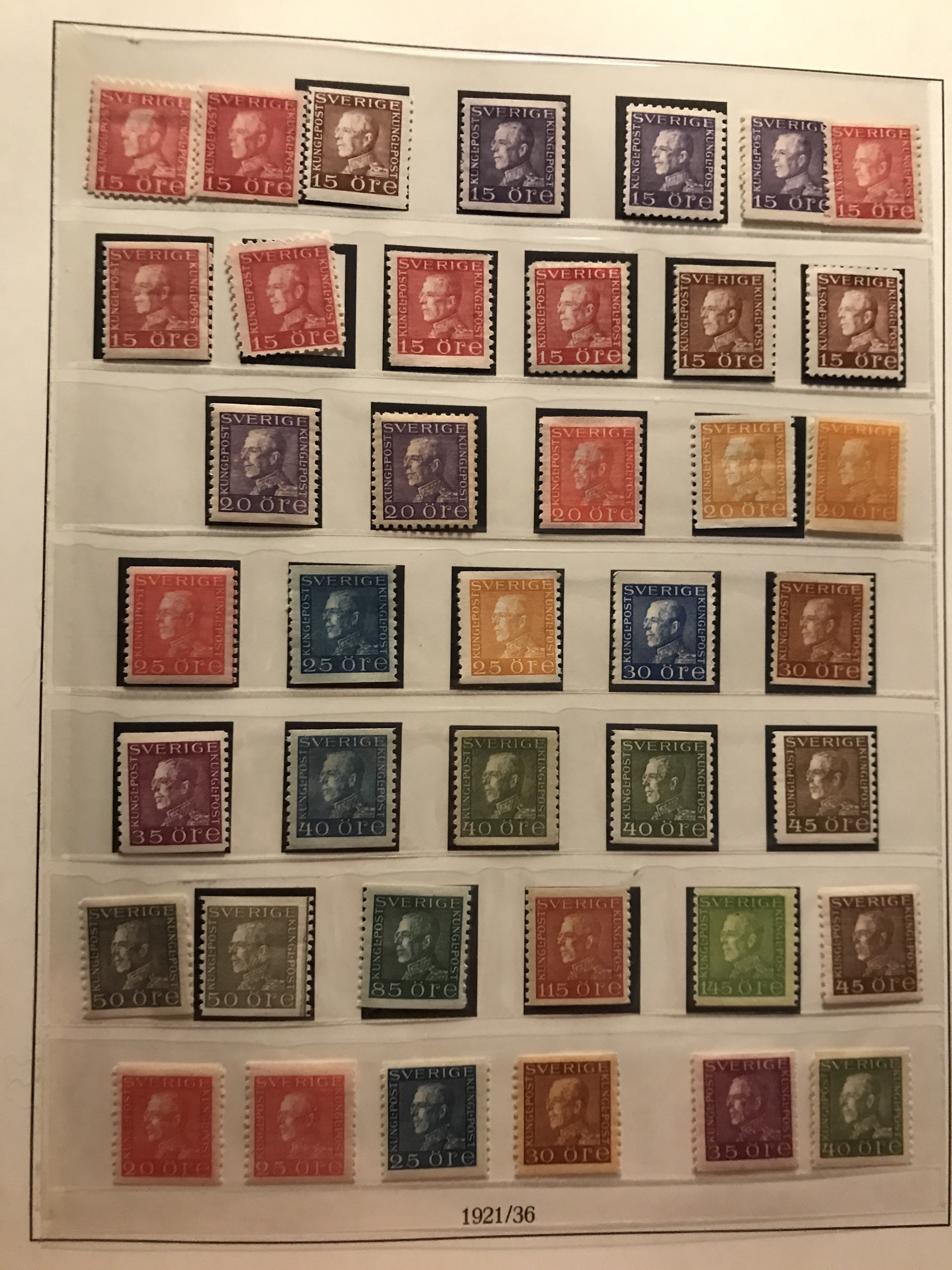 Sweden. ★★/★. Collection until 1945 in Lindner album incl. e.g. F1–2 and 5–6N, good Coat-of Arms and Lion types incl. some (*), nice Circle types, cpl. Oscar, F65 *, a weel-filled section Coil stamps mainly *, cpl. Landstorm, Congress and UPU incl. some **, F233b **, 22 ** BC/CB-pairs and 332BC+CB *, 337C**, some better officials- and postage due stamps, etc. Please see a selection of scans at www.philea.se. Mostly fine quality.