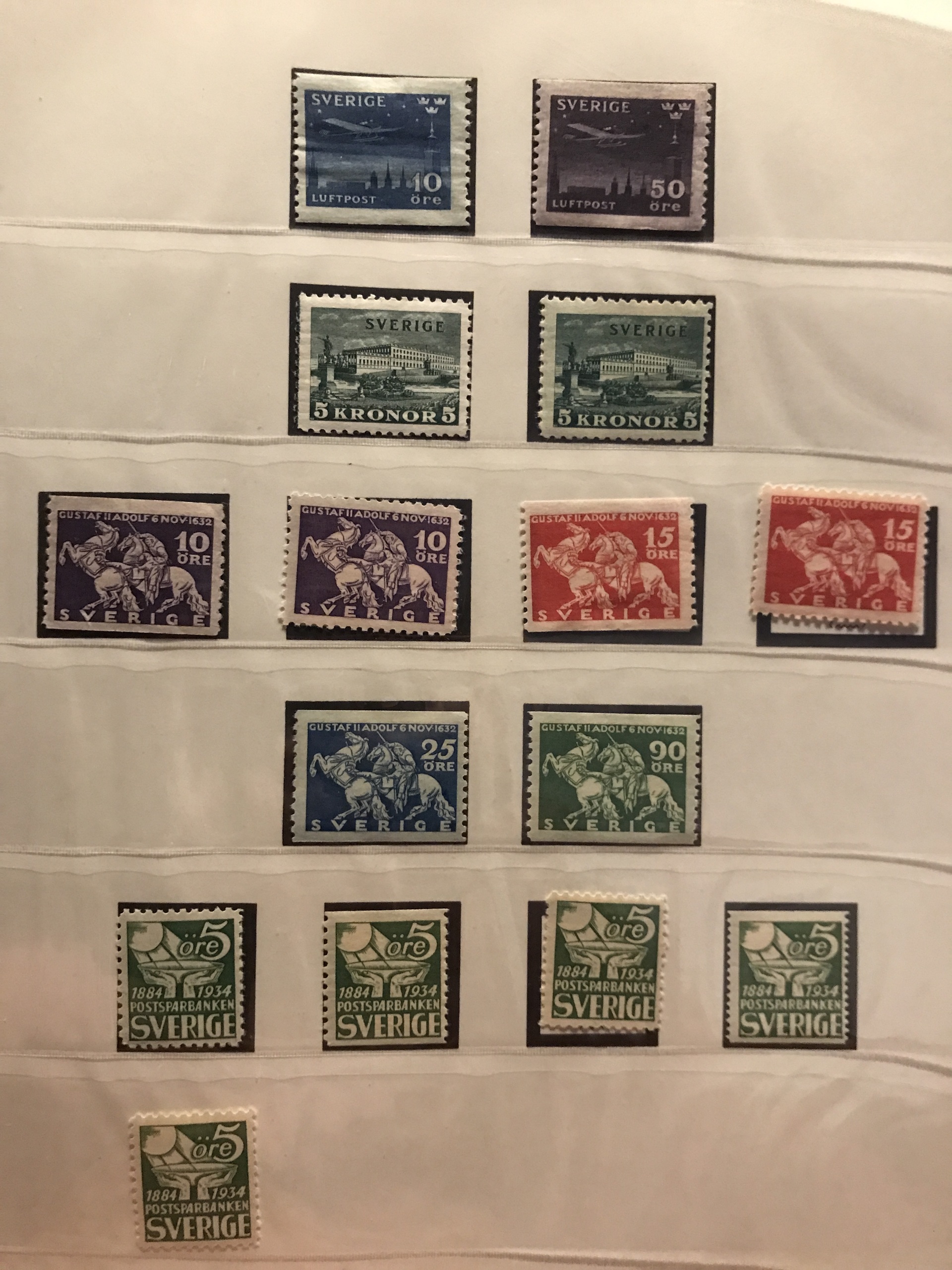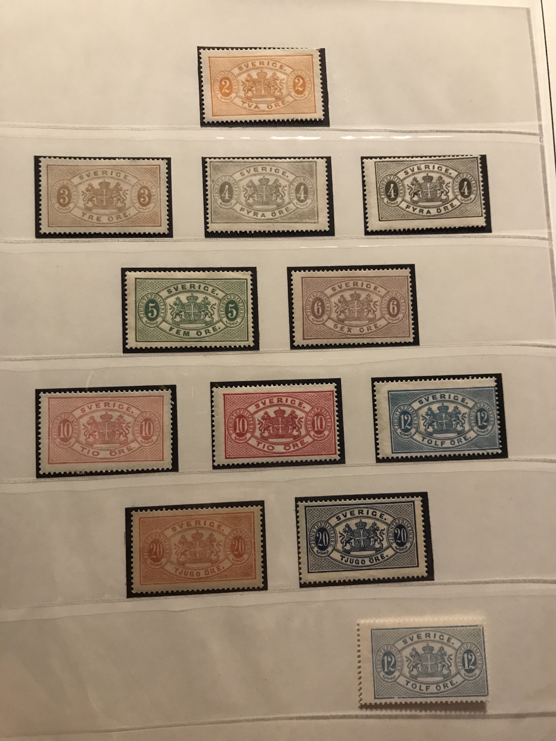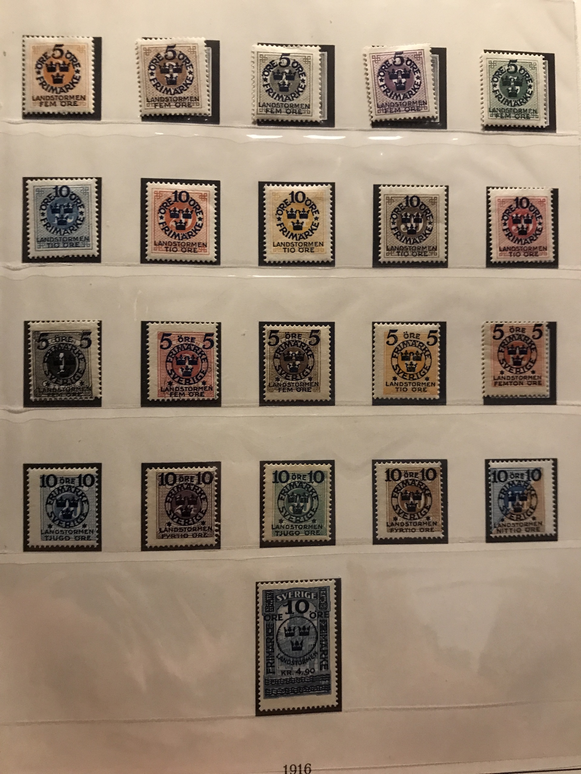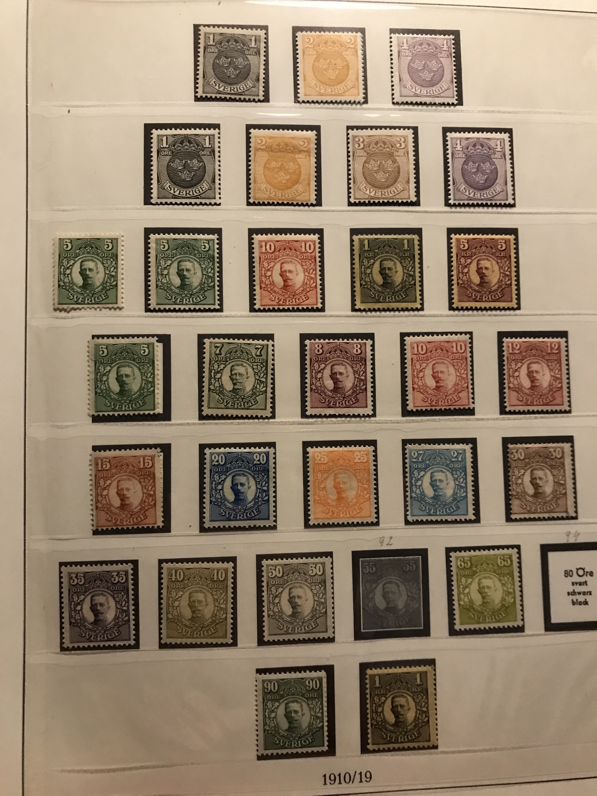 Sweden. ★★/★. Collection until 1945 in Lindner album incl. e.g. F1–2 and 5–6N, good Coat-of Arms and Lion types incl. some (*), nice Circle types, cpl. Oscar, F65 *, a weel-filled section Coil stamps mainly *, cpl. Landstorm, Congress and UPU incl. some **, F233b **, 22 ** BC/CB-pairs and 332BC+CB *, 337C**, some better officials- and postage due stamps, etc. Please see a selection of scans at www.philea.se. Mostly fine quality.