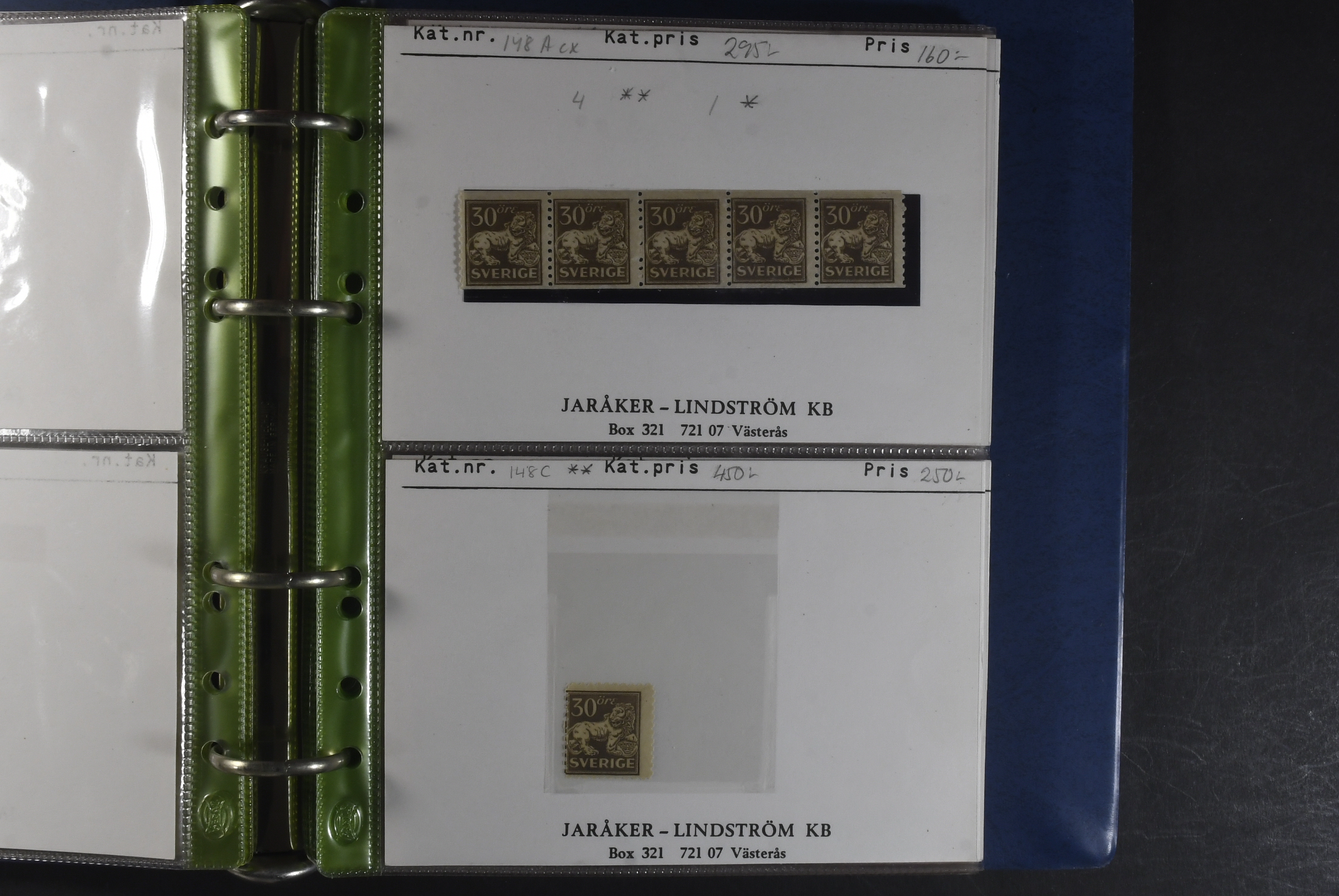 Sweden. Collection ★★/★ small dealer's stock in two binders. Circle type ph–coil stamps, no guarantee for watermarks, please inspect. The entire lot is presented at www.philea.se.