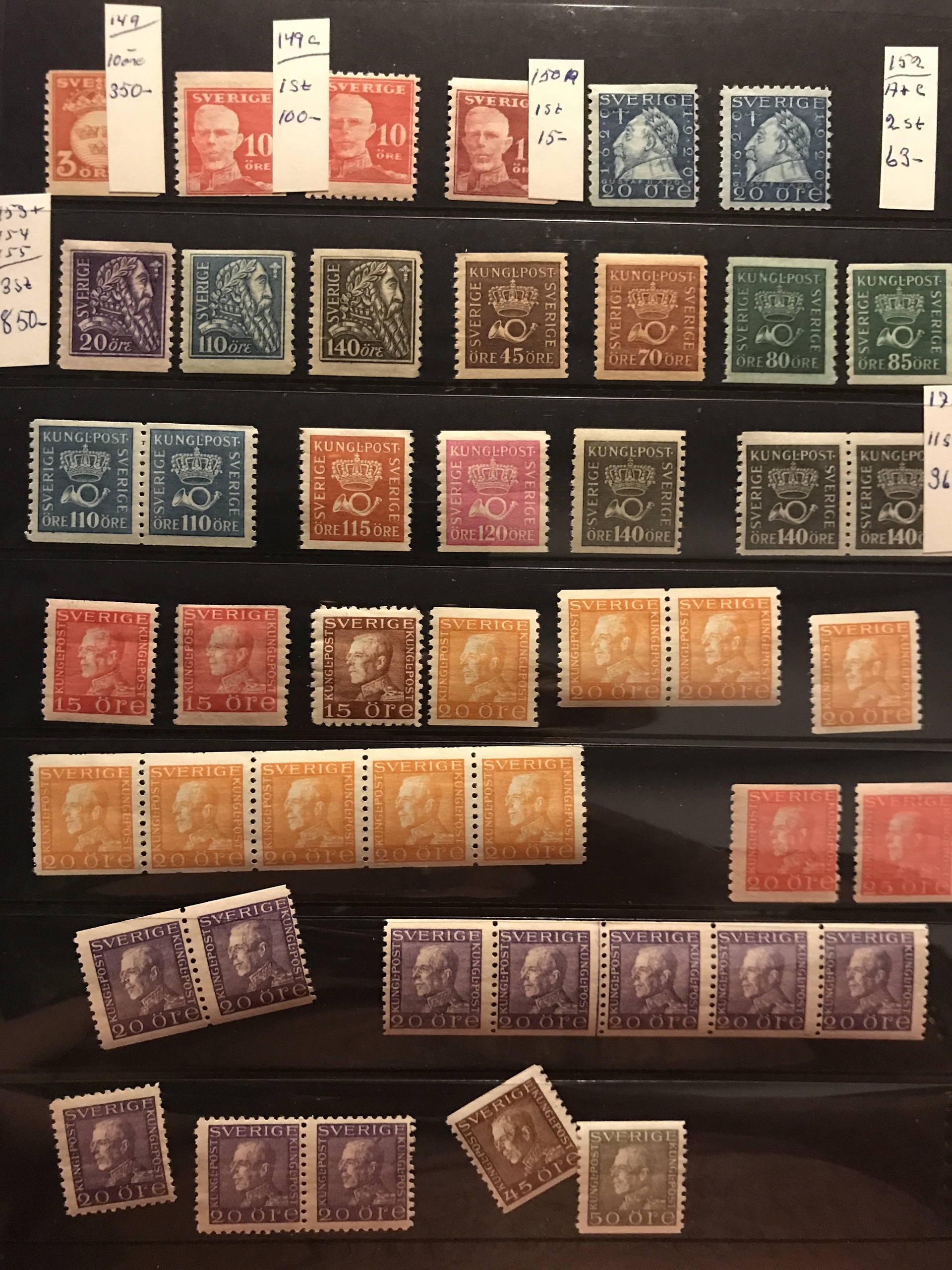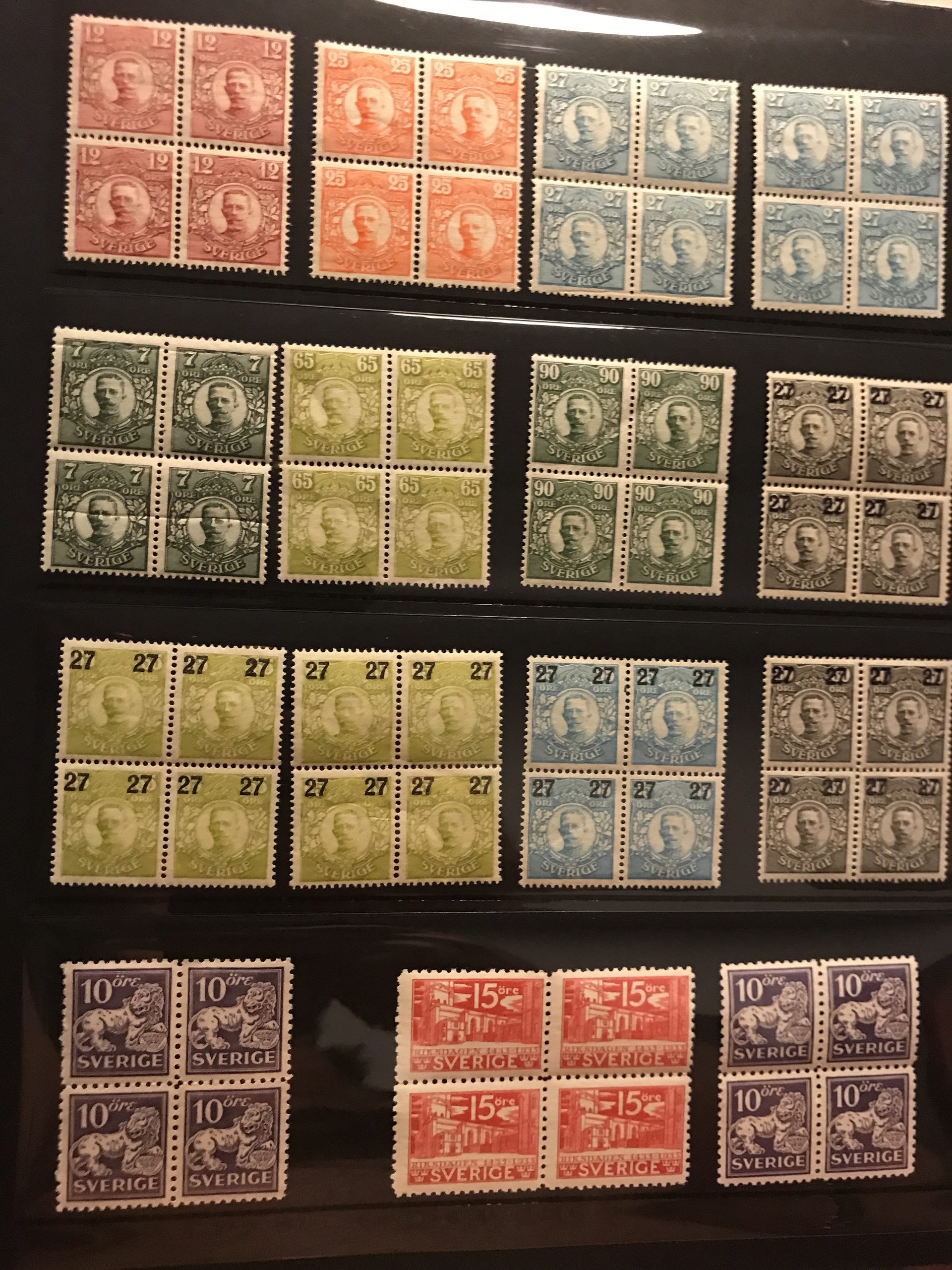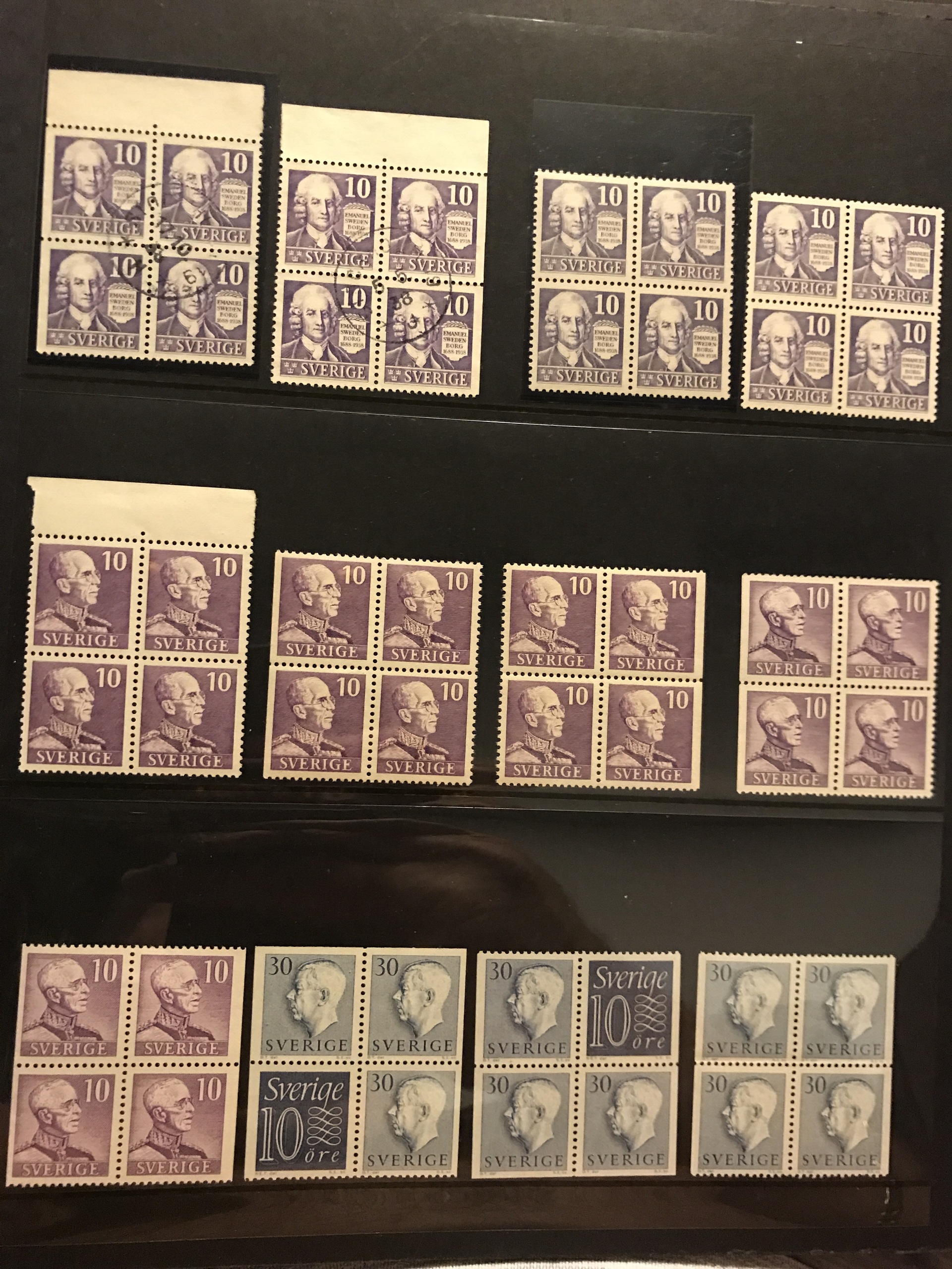 Sweden. ★★/★. Coll./accumulation mostly Oscar II–1960s in two Visir binders incl. some better coil stamps, Congress and UPU cpl. *, many blocks-of-four and other units incl. F65 in * strip-of three, 269BC+CB and 273BC in ** blocks-of-four, etc. Please see a selection of scans at www.philea.se.