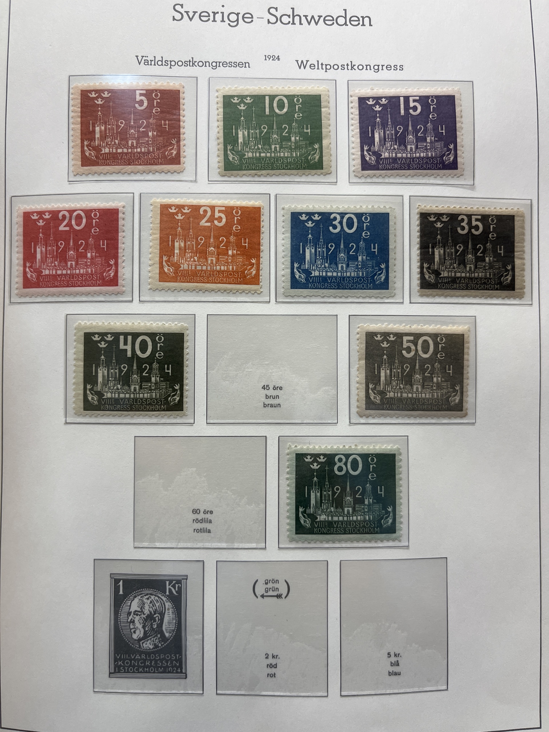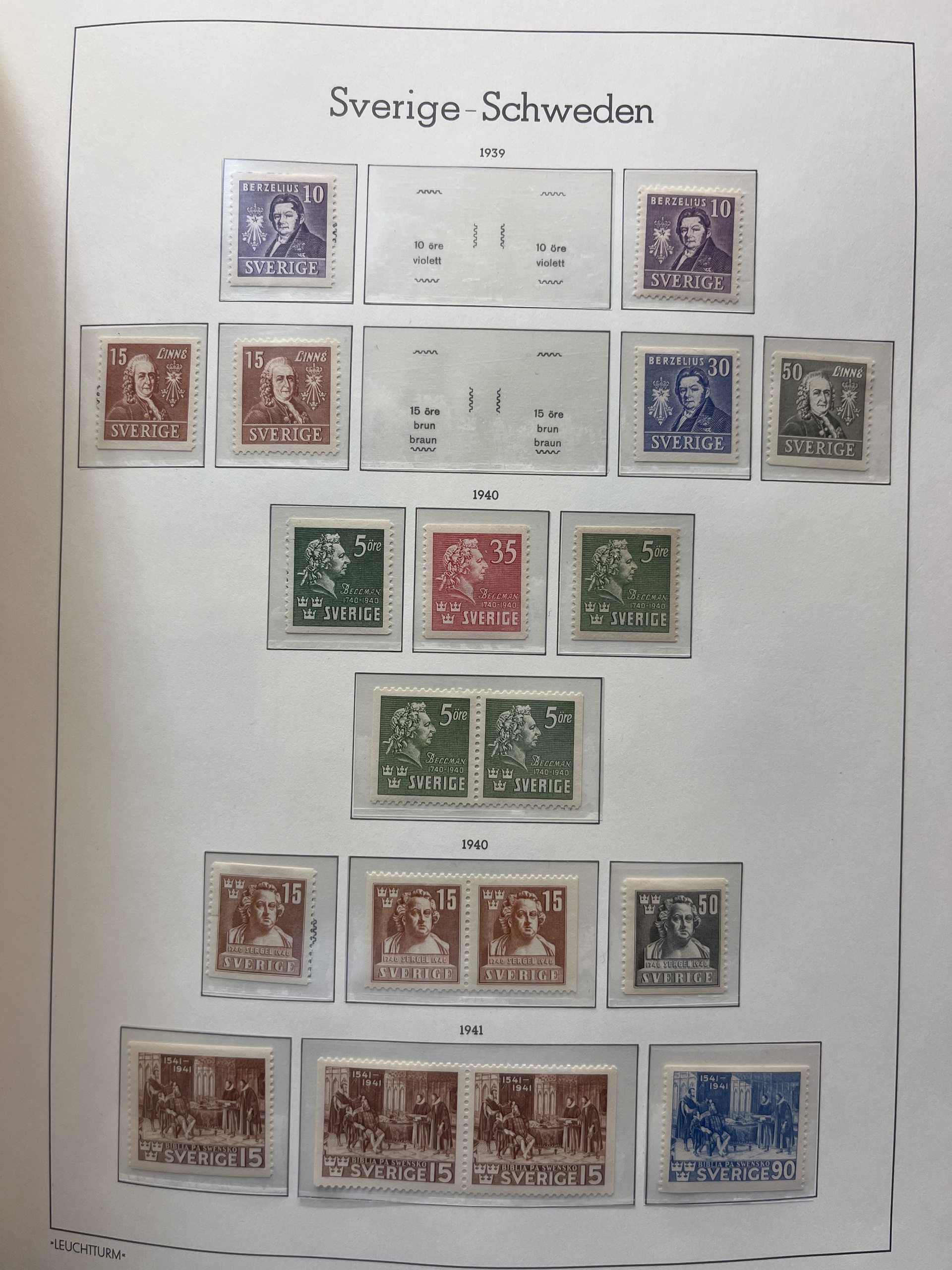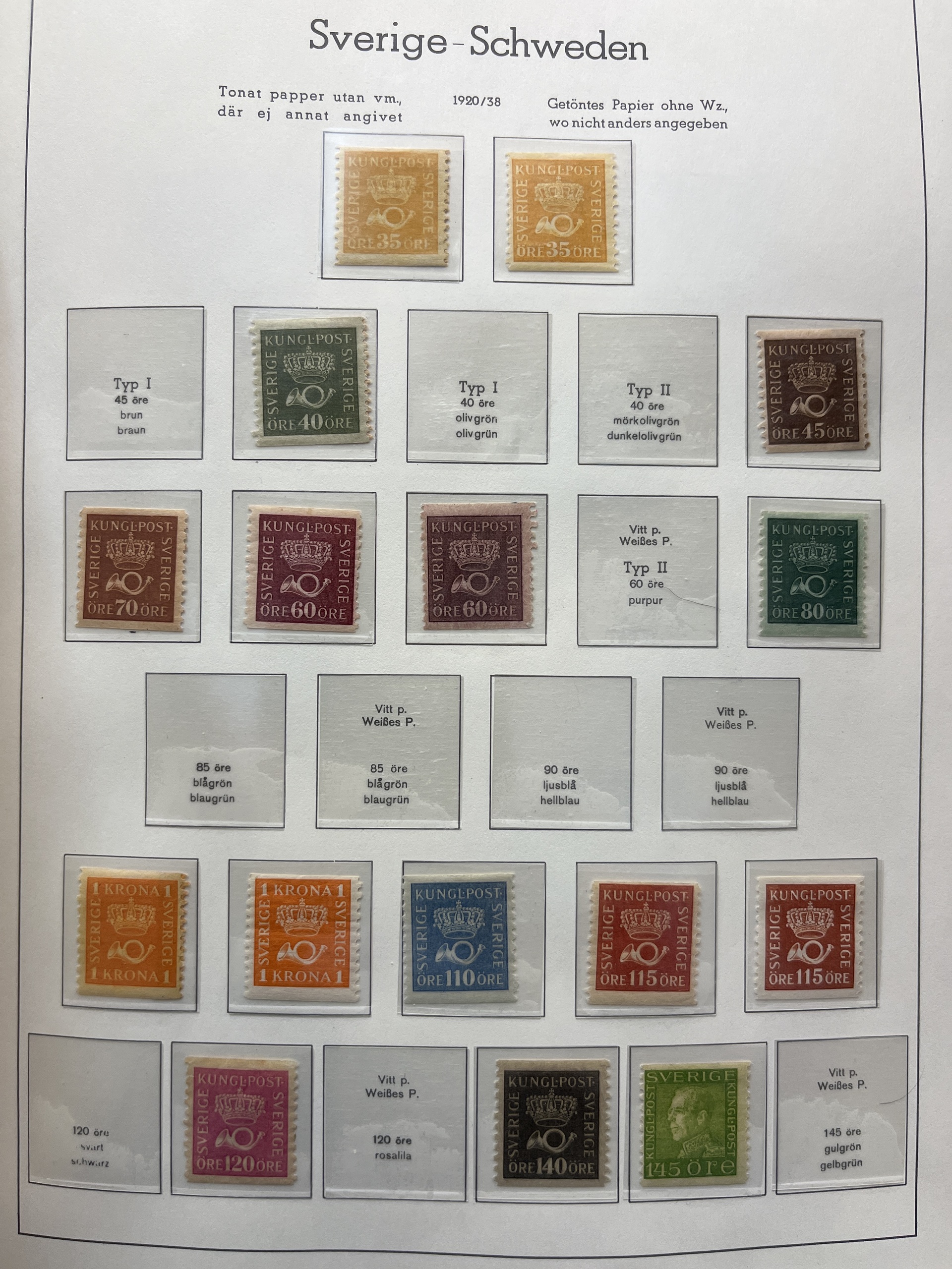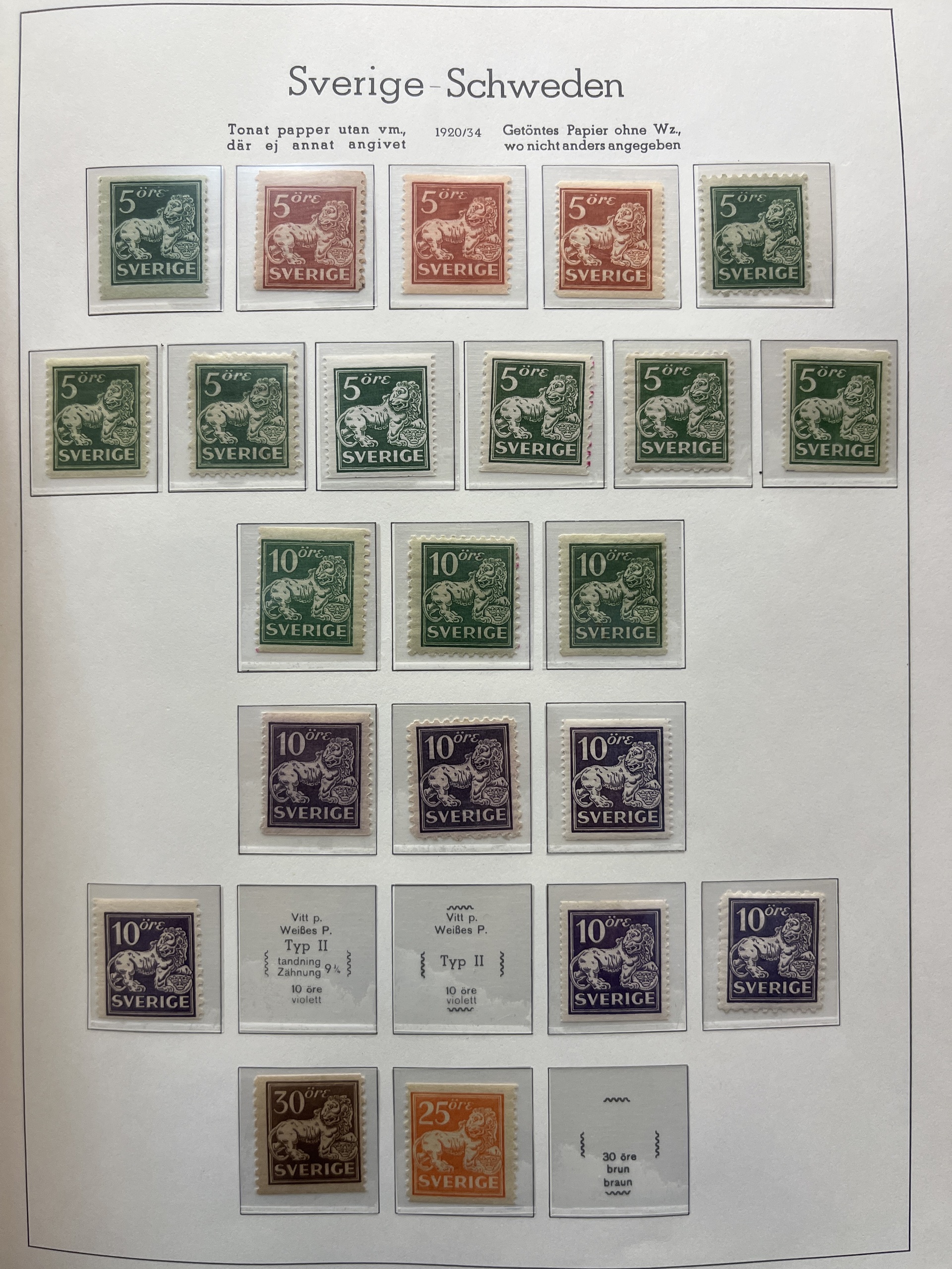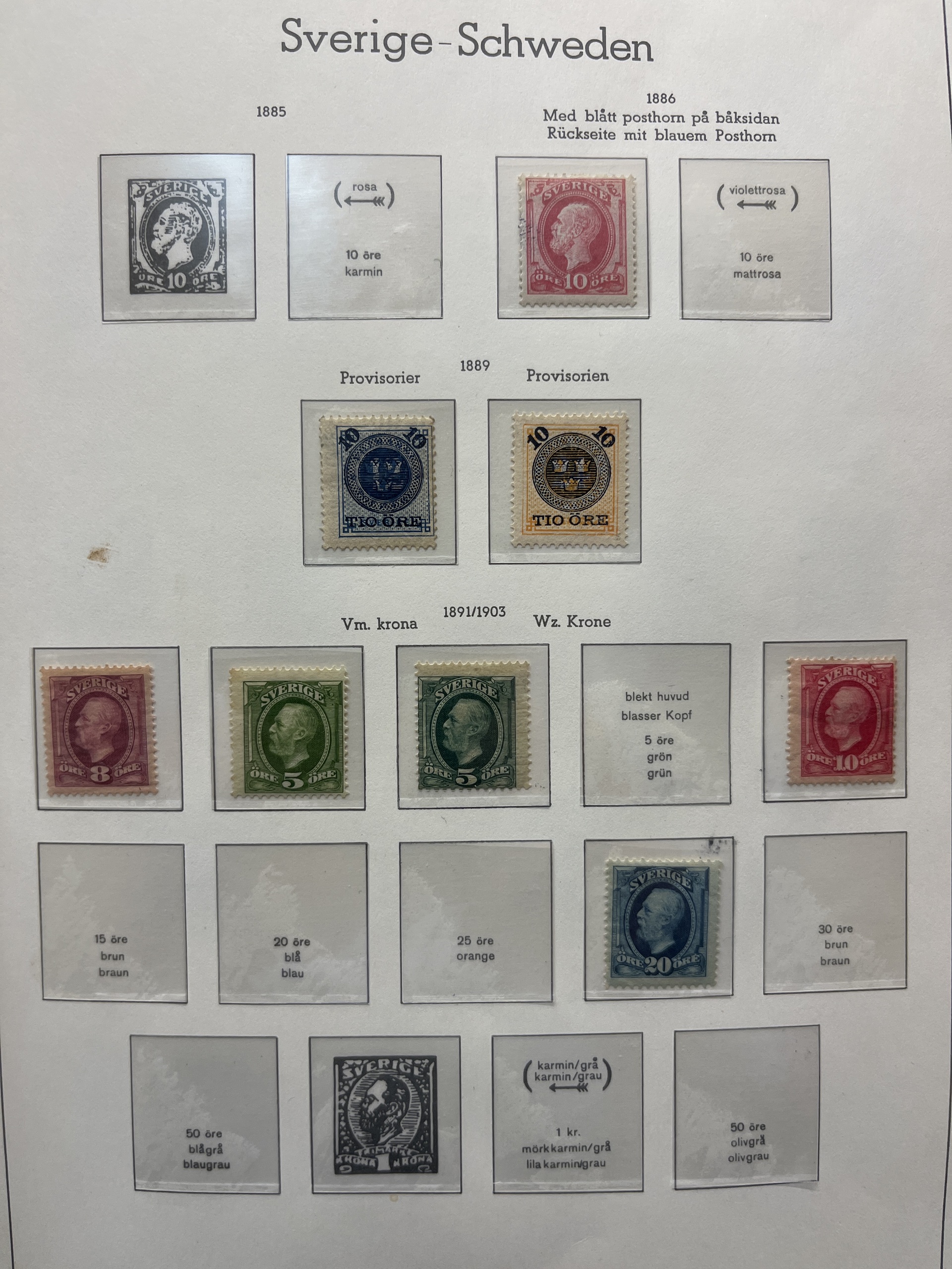 Sweden. Collection ★★/★ ca. 1890–1989 in Leuchtturm album with stamp mounts. Please see a selection of scans at www.philea.se. Mostly good quality.