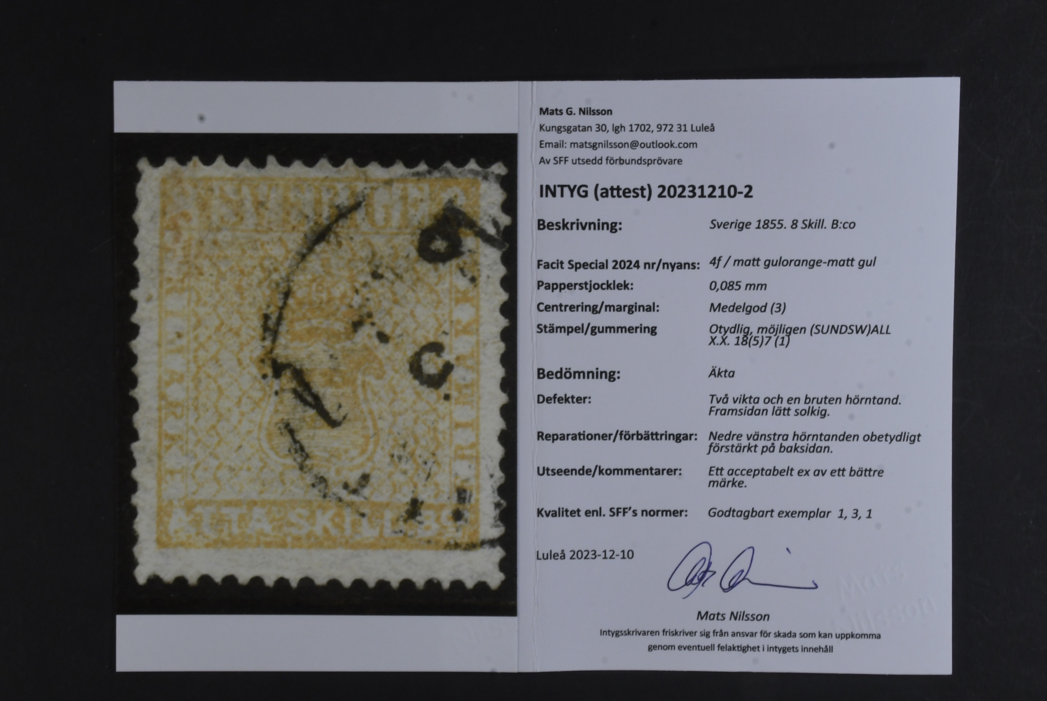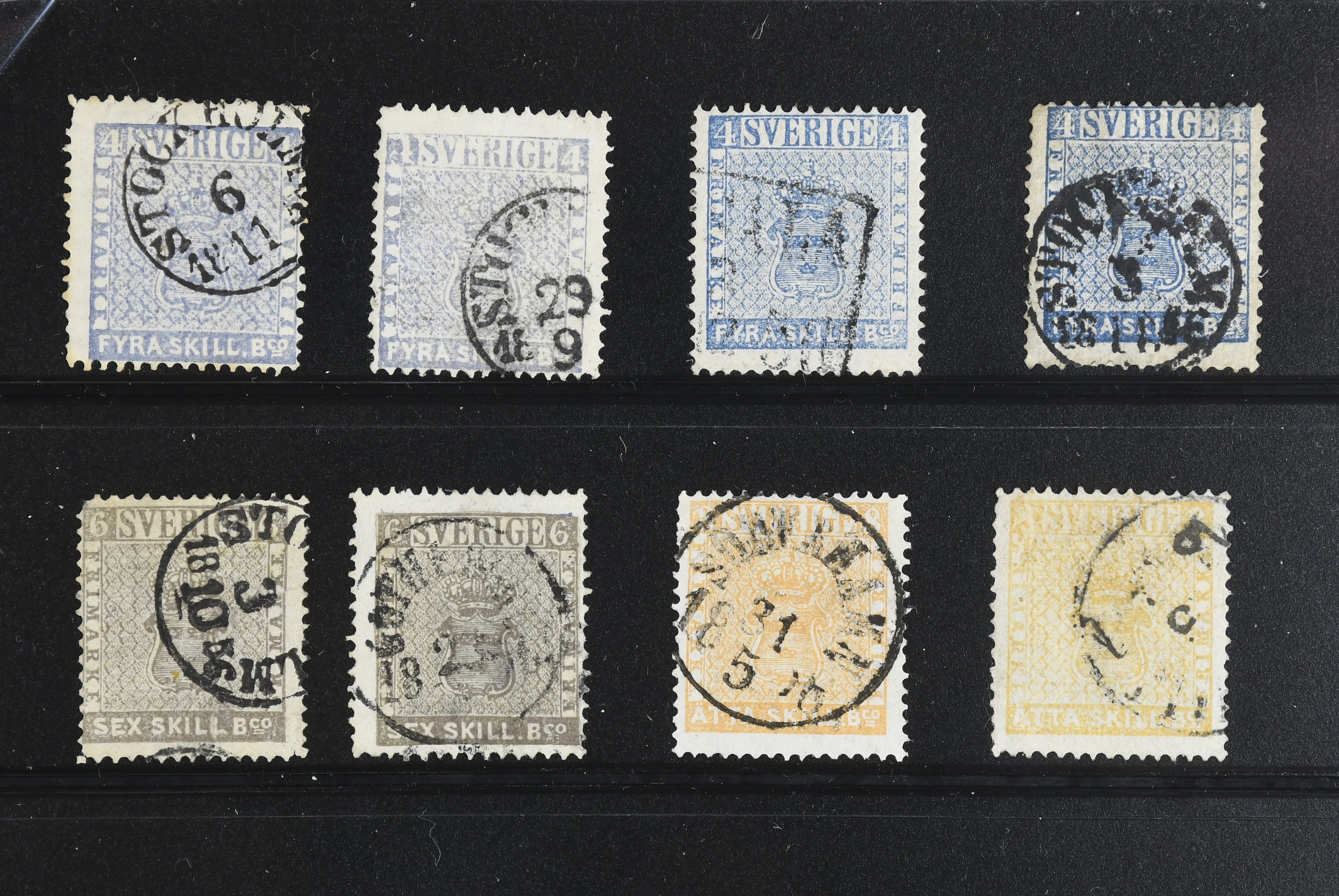 Sweden. Used. 4 sk (4), 6 sk (2) and 8 sk (2). Three certificates are included. Very mixed quality. (8)