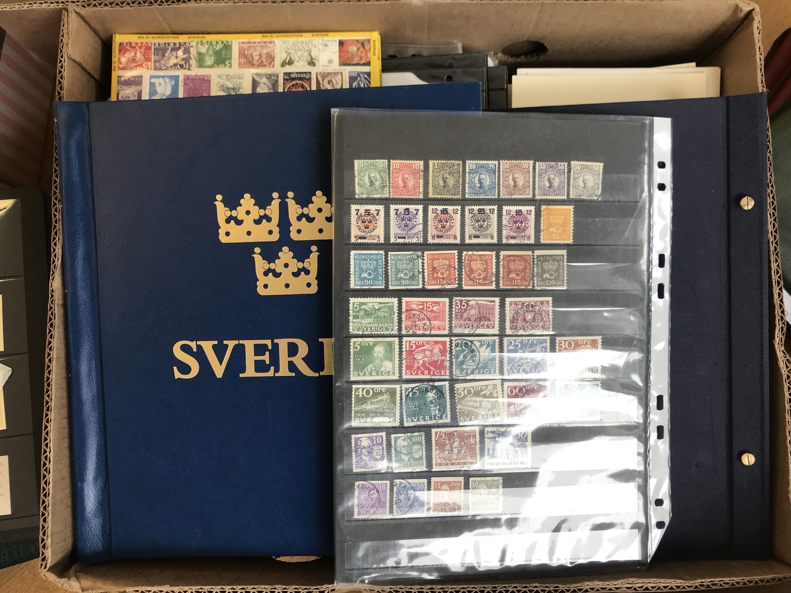 Sweden. ★★/★/⊙. Two boxes with e.g. much Sweden incl. 100s of FDCs in binders, nice booklets incl. H21, 30 and 42, ** in envelopes, 4-skill and def. 8-skill, etc. Please see a selection of scans at www.philea.se. Mostly fine quality. Approx. 33 kg.