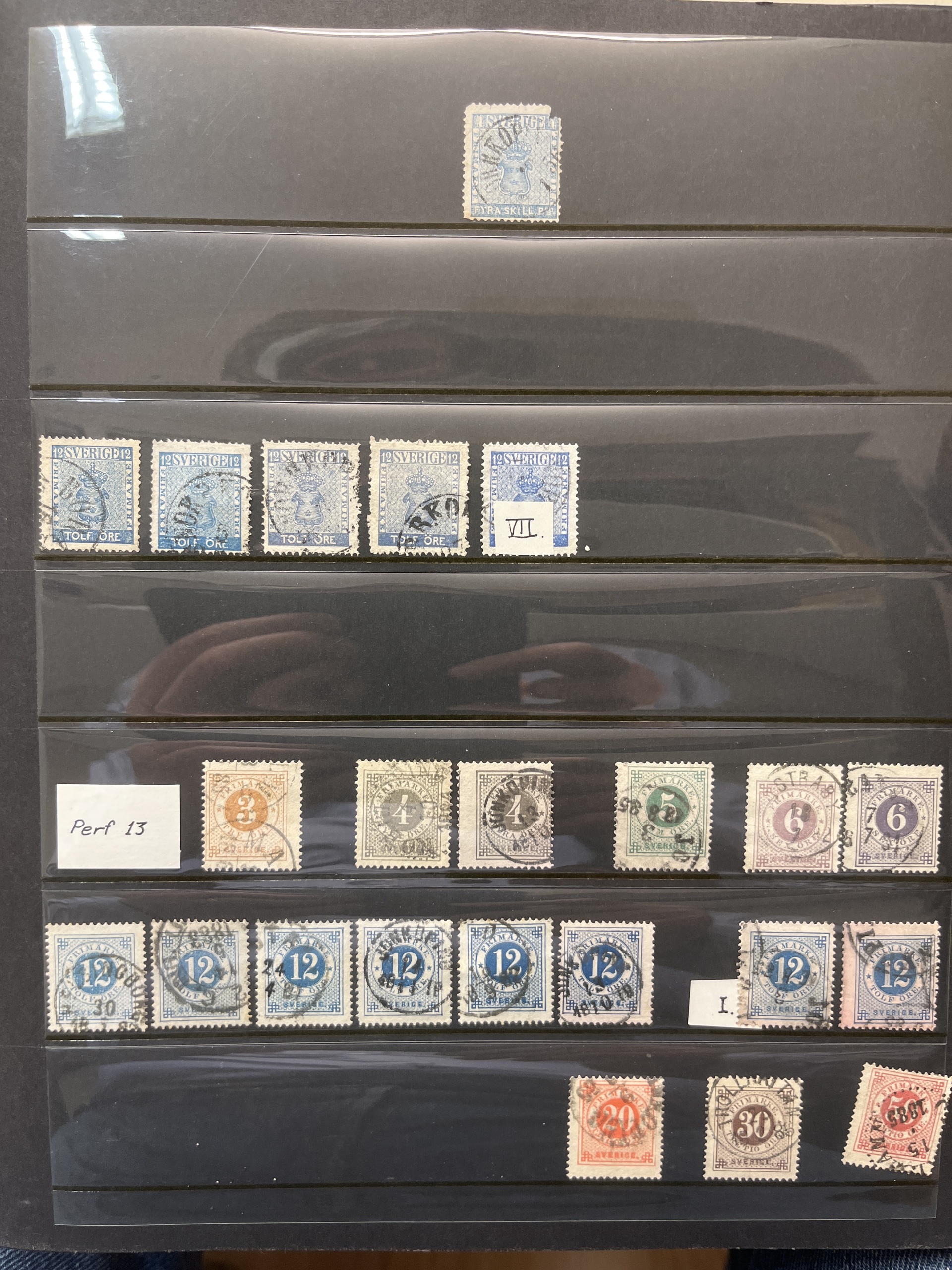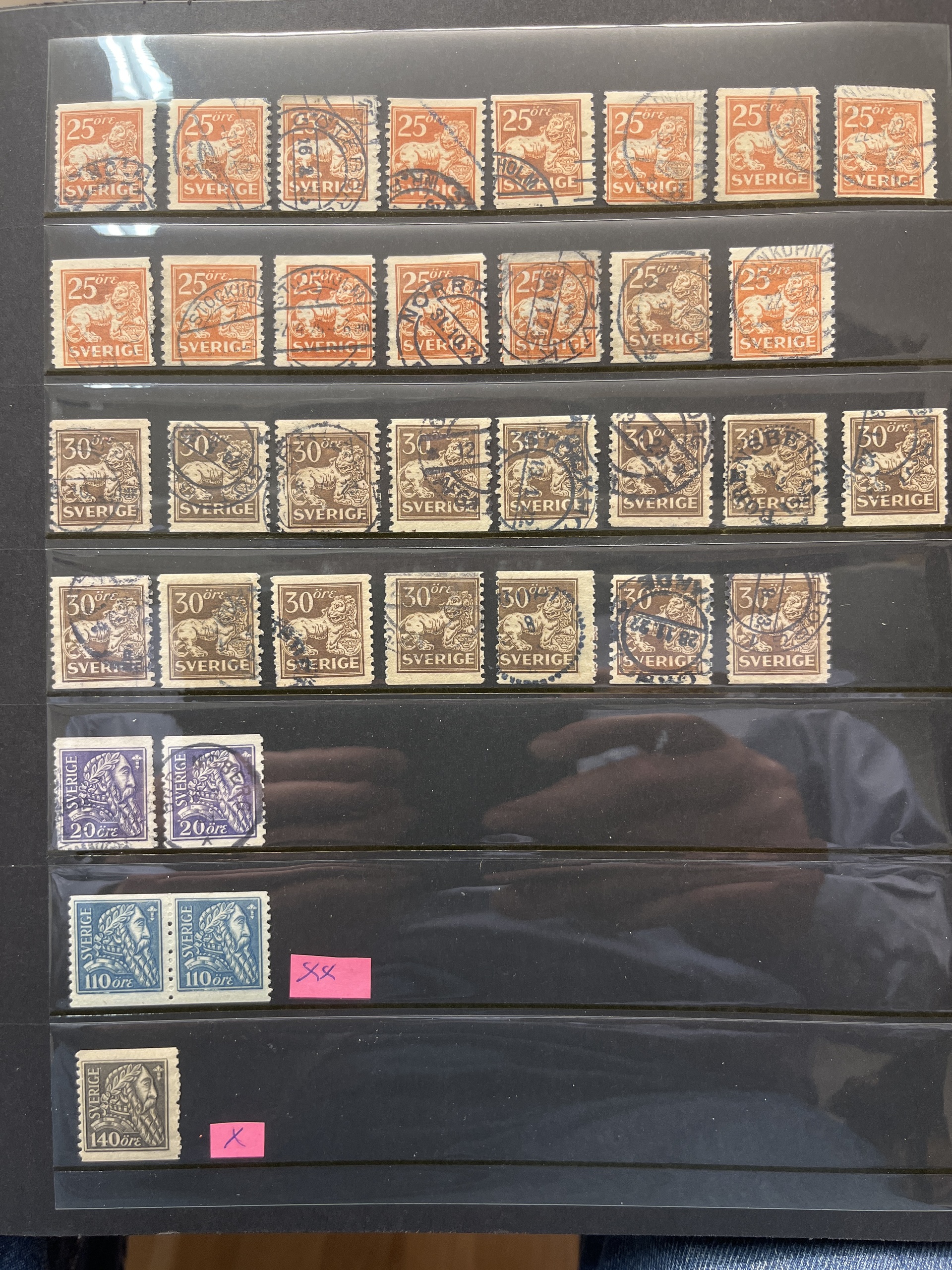 Sweden. Collection/accumulation ★★/★/⊙ 1858–1960s in visir album. Good 1920s–30s. In the beginning mixed quality, later fine.
