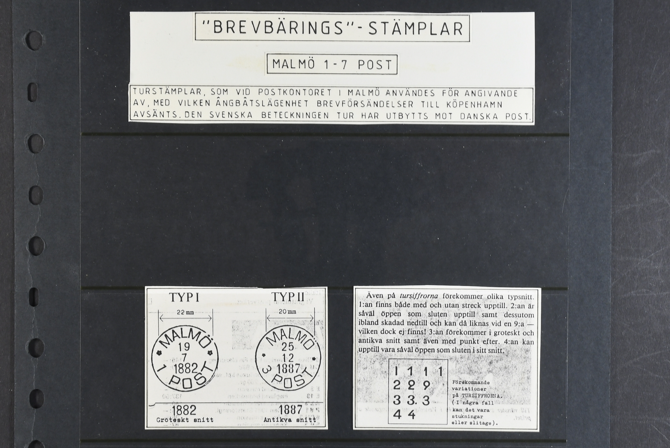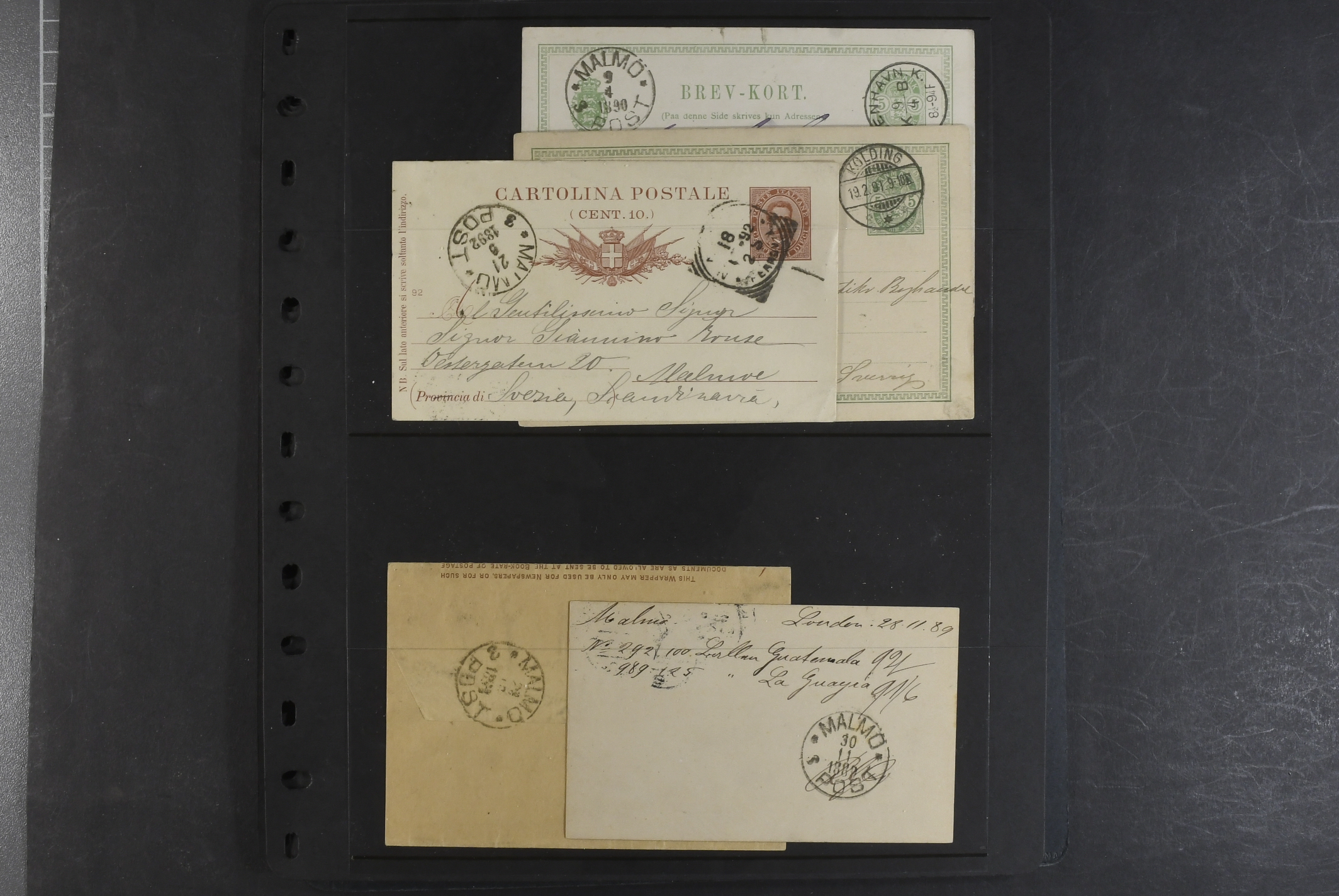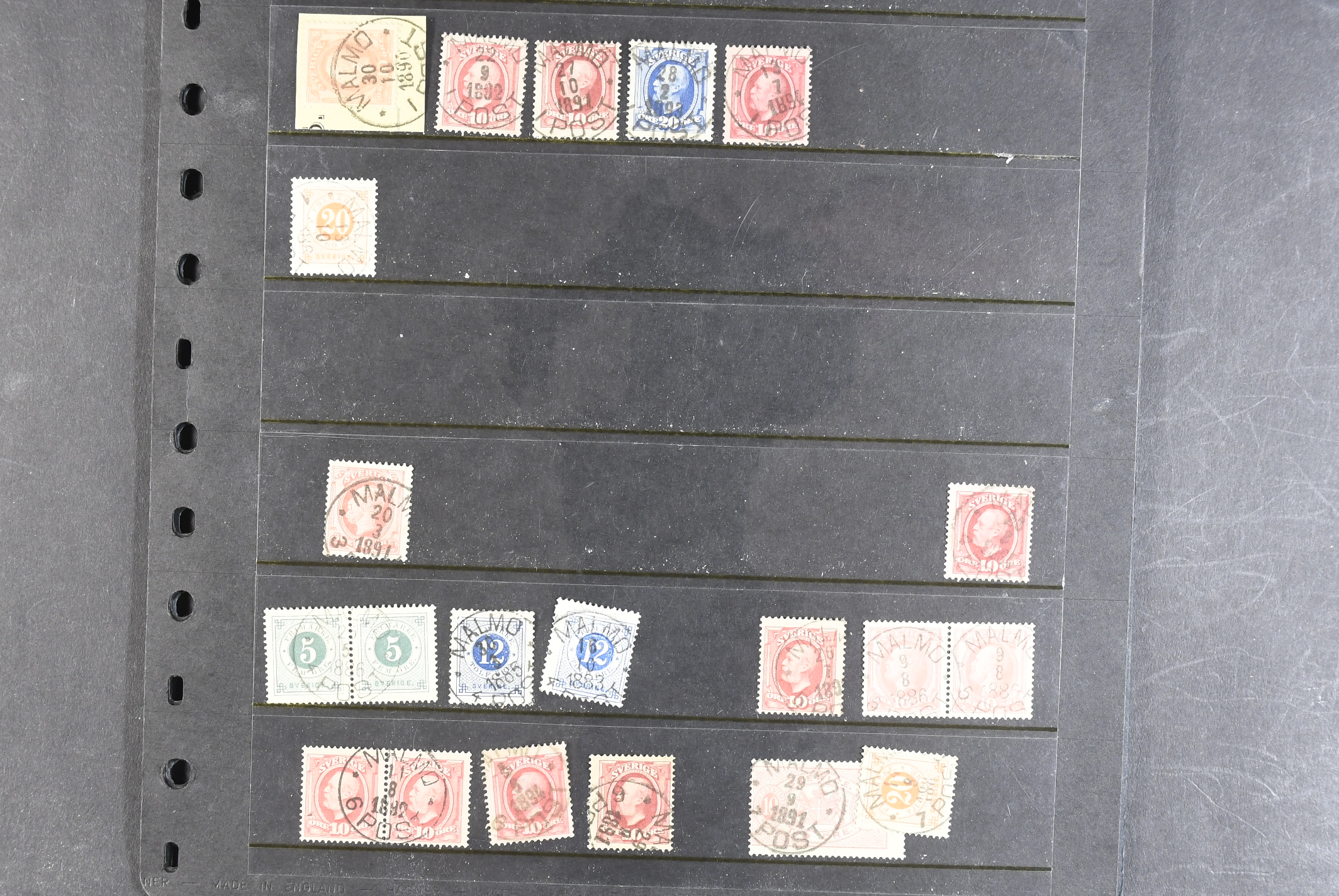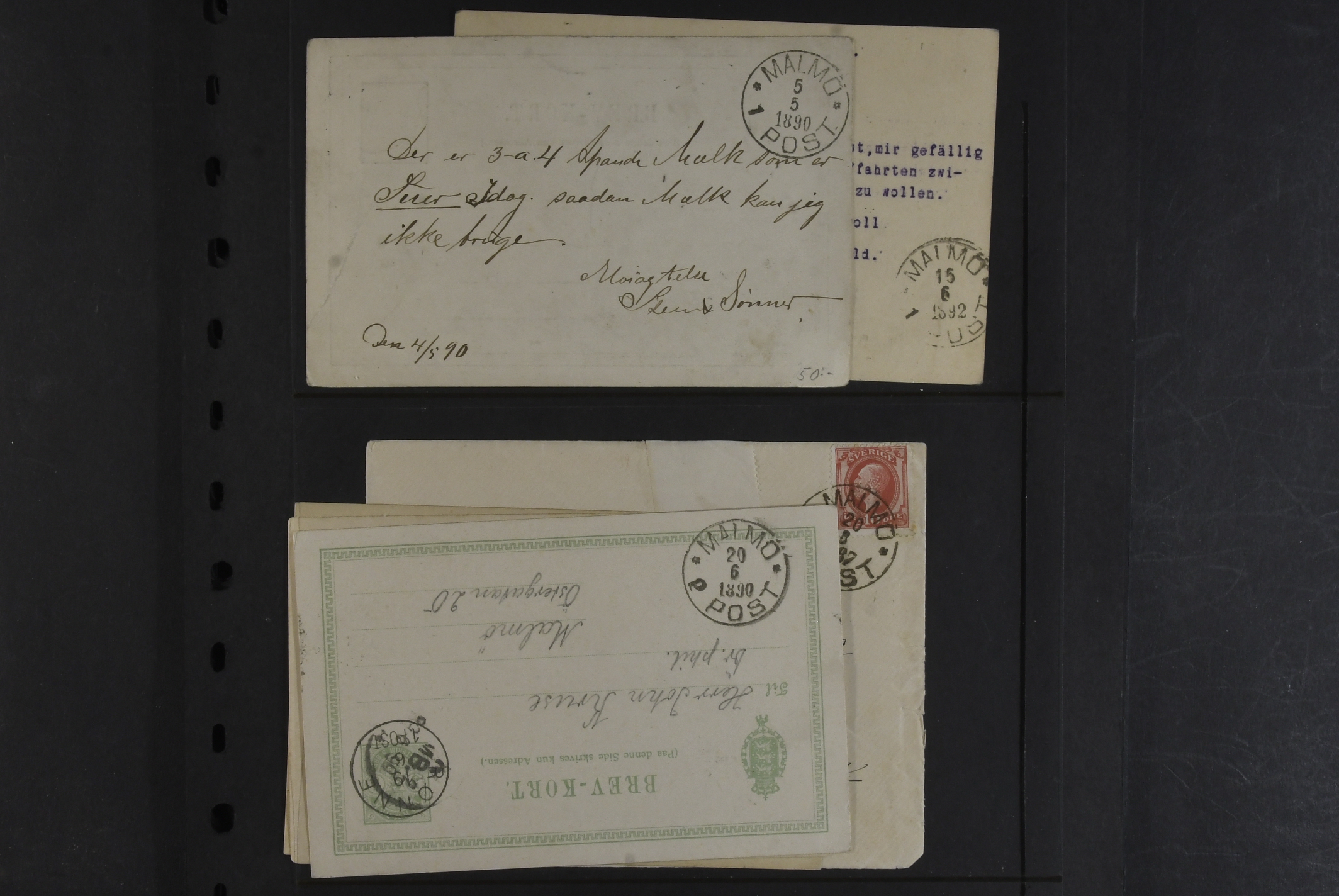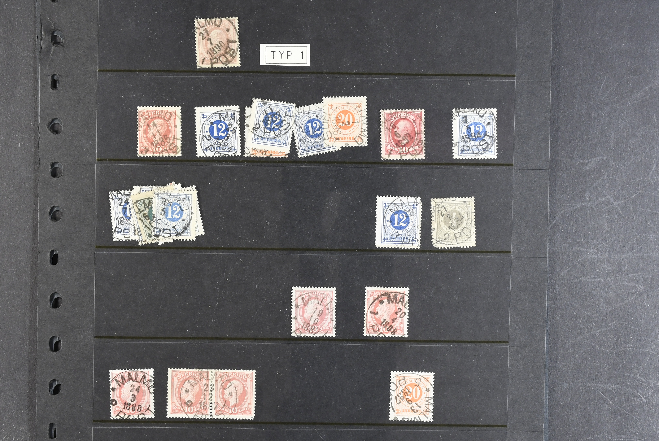 Sweden. Cancellations, collection MALMÖ POST on visir leaves. 45 stamps and 30 covers and cards. The entire lot is presented at www.philea.se. Somewhat mixed quality.