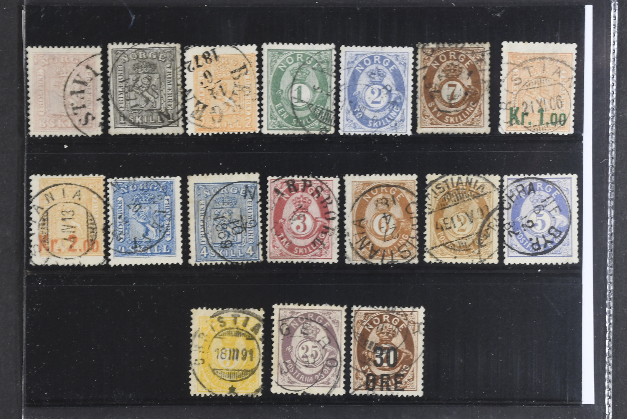 Norway. Used 1863–1905. All different, e.g. F 9, 11–12, 16–17, 20–21, 87, 89. Mostly good quality. F SEK 5550 (17)
