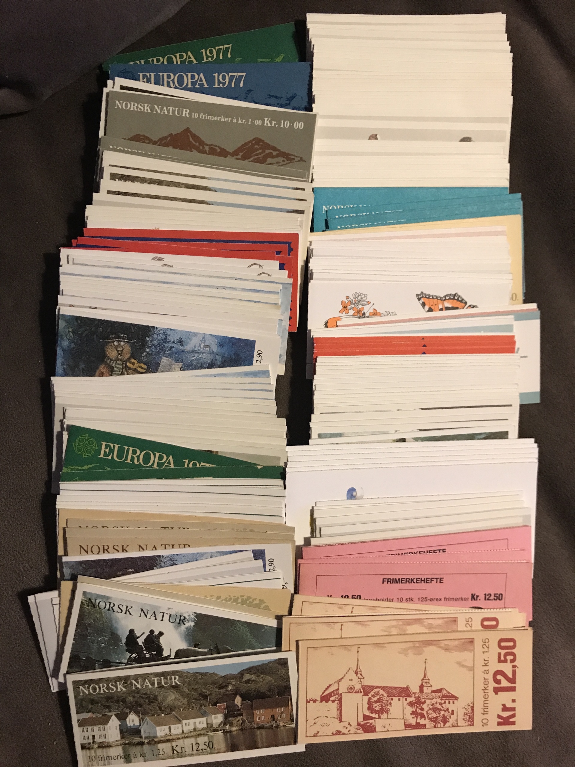 Norway. Booklets. About 195 booklets 1975–1992 + 14 used incl. many with KN, etc. Face value approx. 4000.
