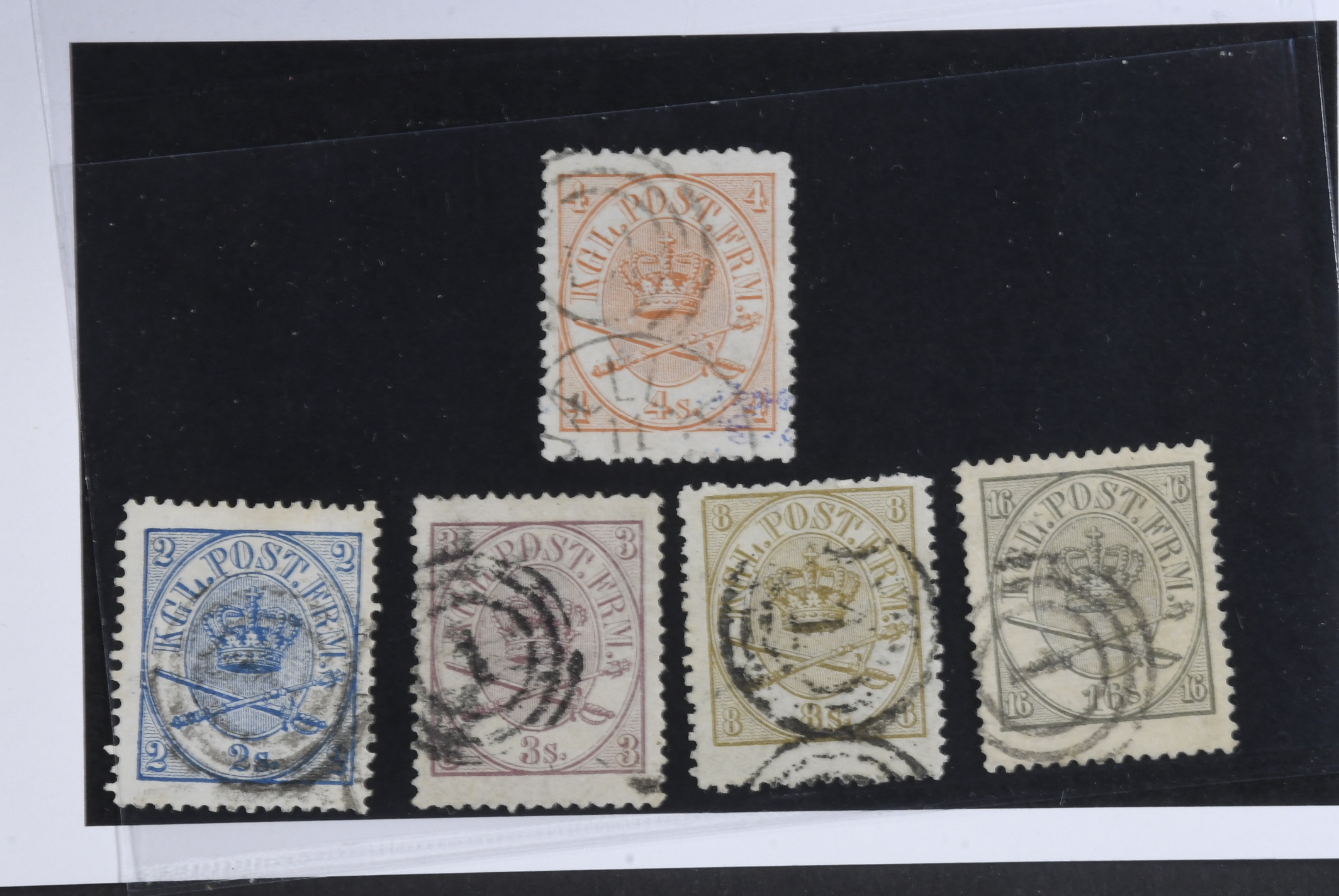 Denmark. Facit 11–15 used, 1864 Large oval type. 2–16 Skill, perf 13 × 12½. Somewhat mixed quality. SEK over 4000