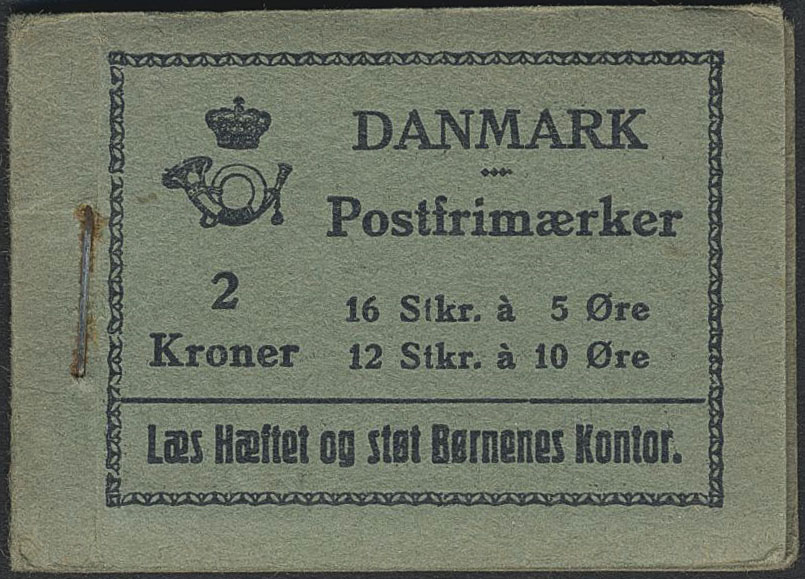 Denmark. Booklet Facit H12, 1933 Wavy-lines 2 kr 16 × 5 øre, 12 × 10 øre with double transfer (AFA 5, Boom 3.20B).