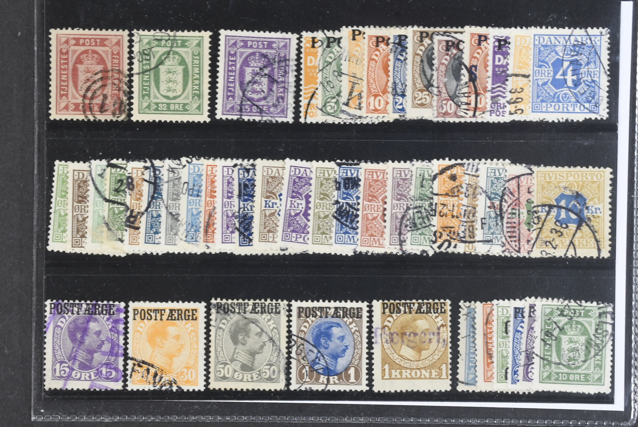 Denmark. Used 1871–1945. Back-of-the-book. All different, e.g. Tj 2, Tj9, Tj23, L1–14, L16–25, TI1–10, PF1–7, PF10. Mostly good quality. F SEK 5777 (38)