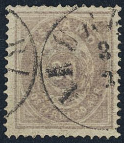 Iceland. Facit 14 used, 1876 Aur values 20 aur violet, perf 14 × 13½. SEK 4400