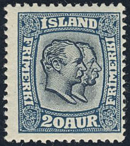 Iceland. Facit 97 ★, 1918 Two Kings 20 aur blue wmk cross. SEK 2000