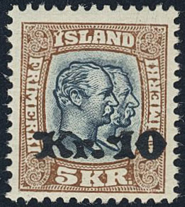 Iceland. Facit 107 ★, 1930 Surcharge on Two kings 10/5 Kr blue-grey/brown. SEK 4000