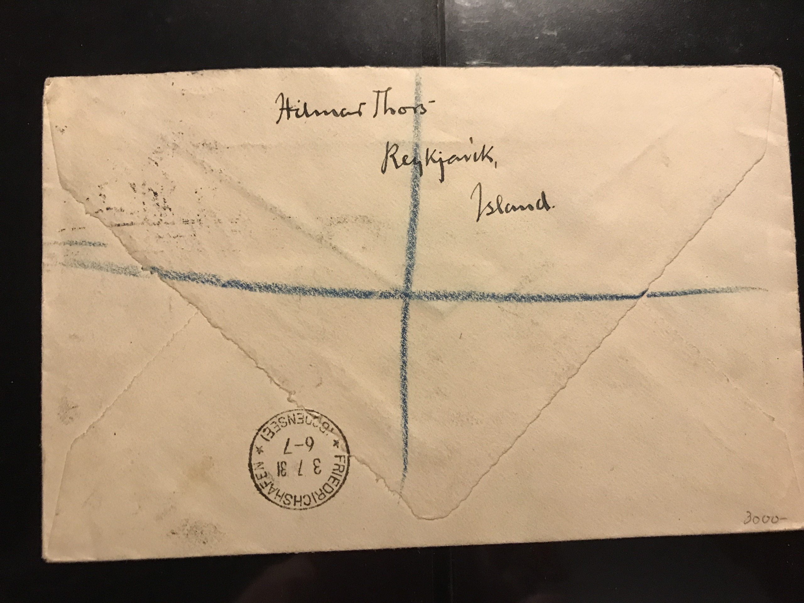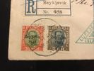 Iceland. Facit 162, 164 on cover, Zeppelin 30 aur and 2 kr on cover with Islandfahrt 1931 to Sweden, there franked with 10+35 öre and then forwarded to England.