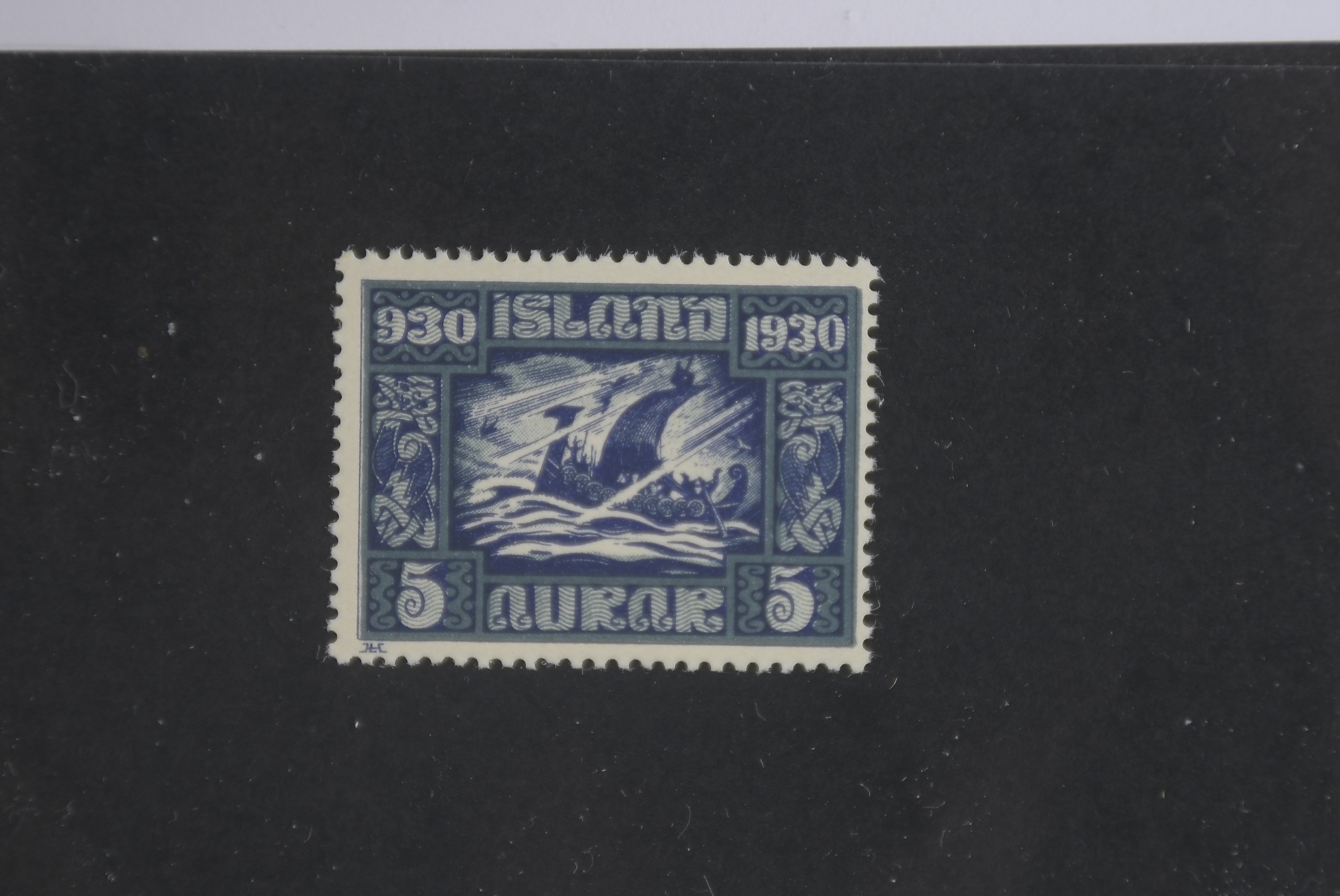 Iceland. Facit 174v1 ★★, 1930 The Parliament 5 aur green/blue with white sunrays and waves variety. Very fresh example. SEK 2000