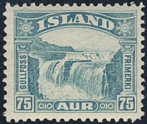 Iceland. Facit 199 ★★, 1932 Gullfoss 75 aur blue. Good centering. SEK 2600