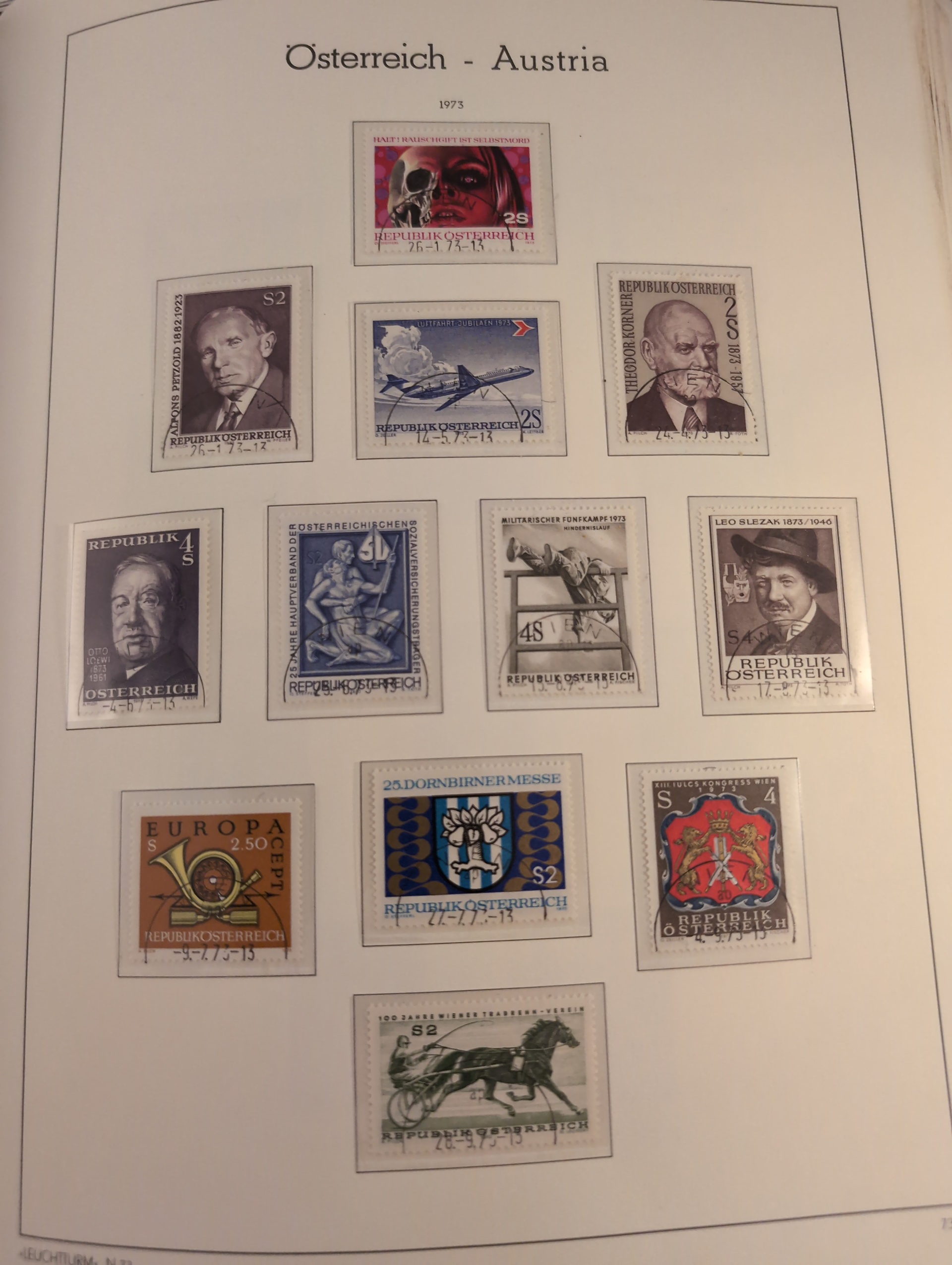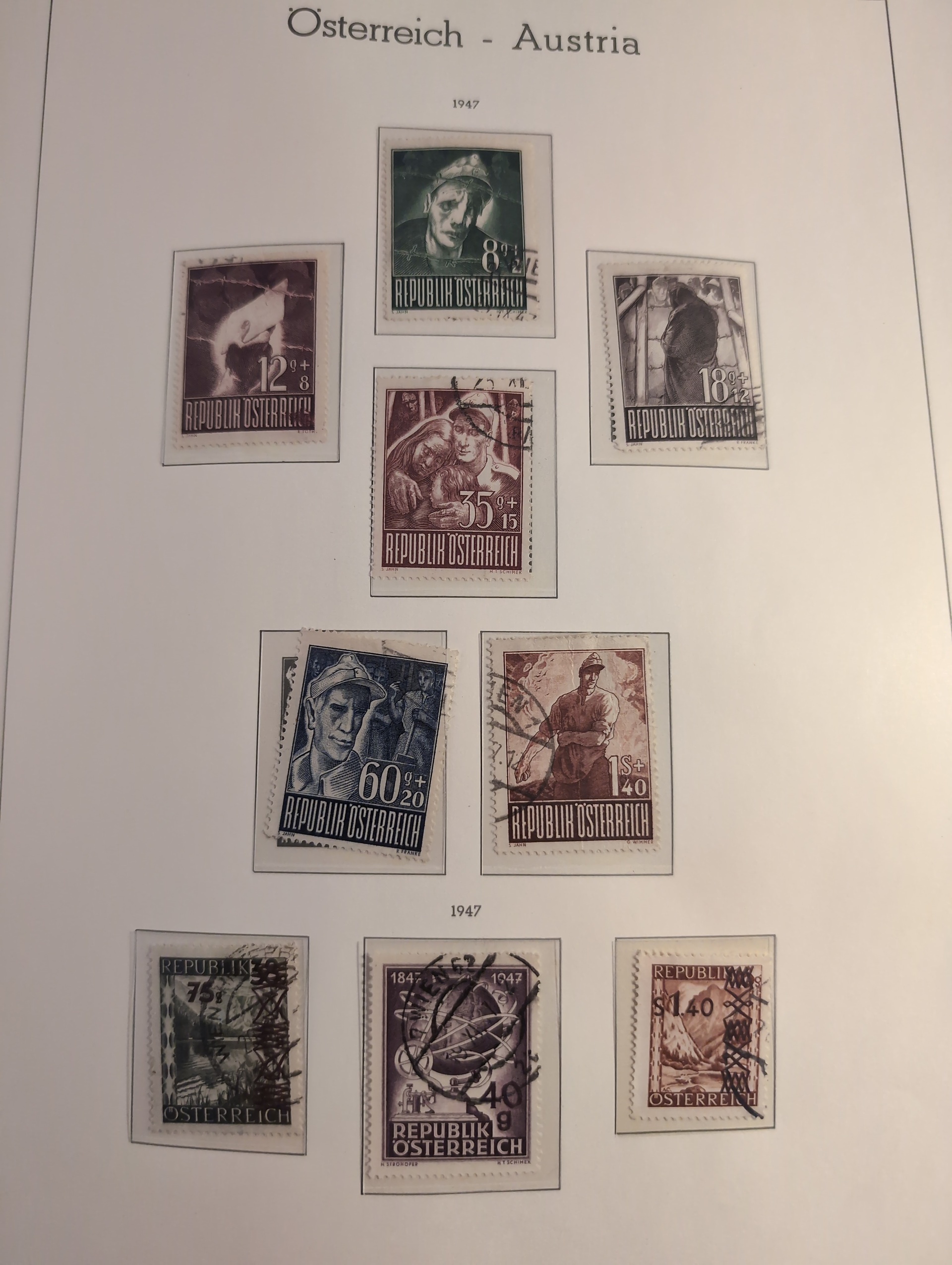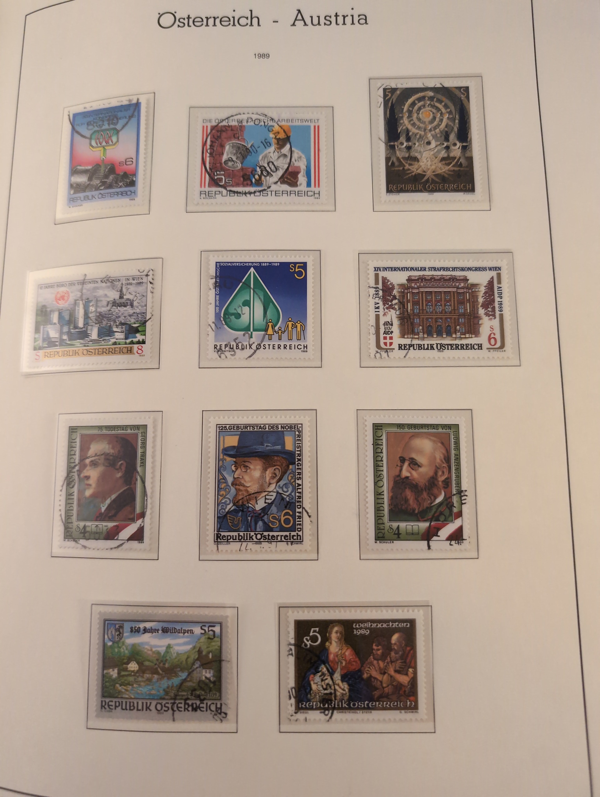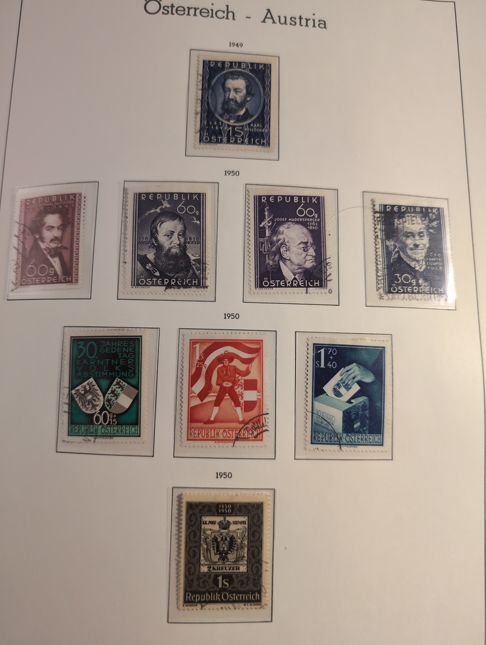 EUROPE. Collection ★★/★/⊙ 1850s–1990 in box. Three thick albums. Leuchtturm album almost complete collection Austria 1945–1990 mostly used but some MNH in the beginning, Leuchtturm album complete Channel Islands 1969–1981 and an old tattered Schaubek europa album with rather much stamps but nothing expensive. Mostly good quality. Approx. 10 kg. (1000s)