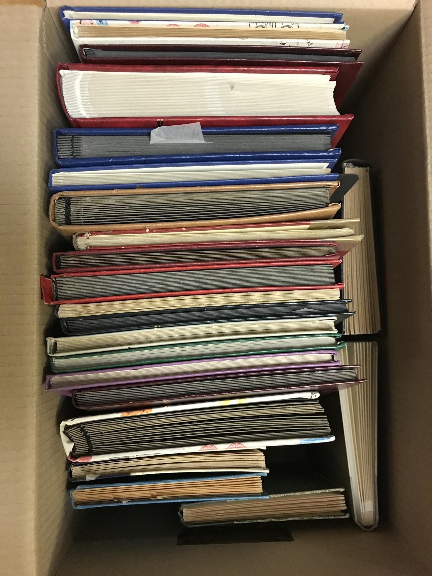 ALL WORLD. Mostly used. 22 stockbooks with 1000s of stamps old–modern. Containing e.g. much Commonwealt, Japan and some China, etc. Approx. 17 kg.