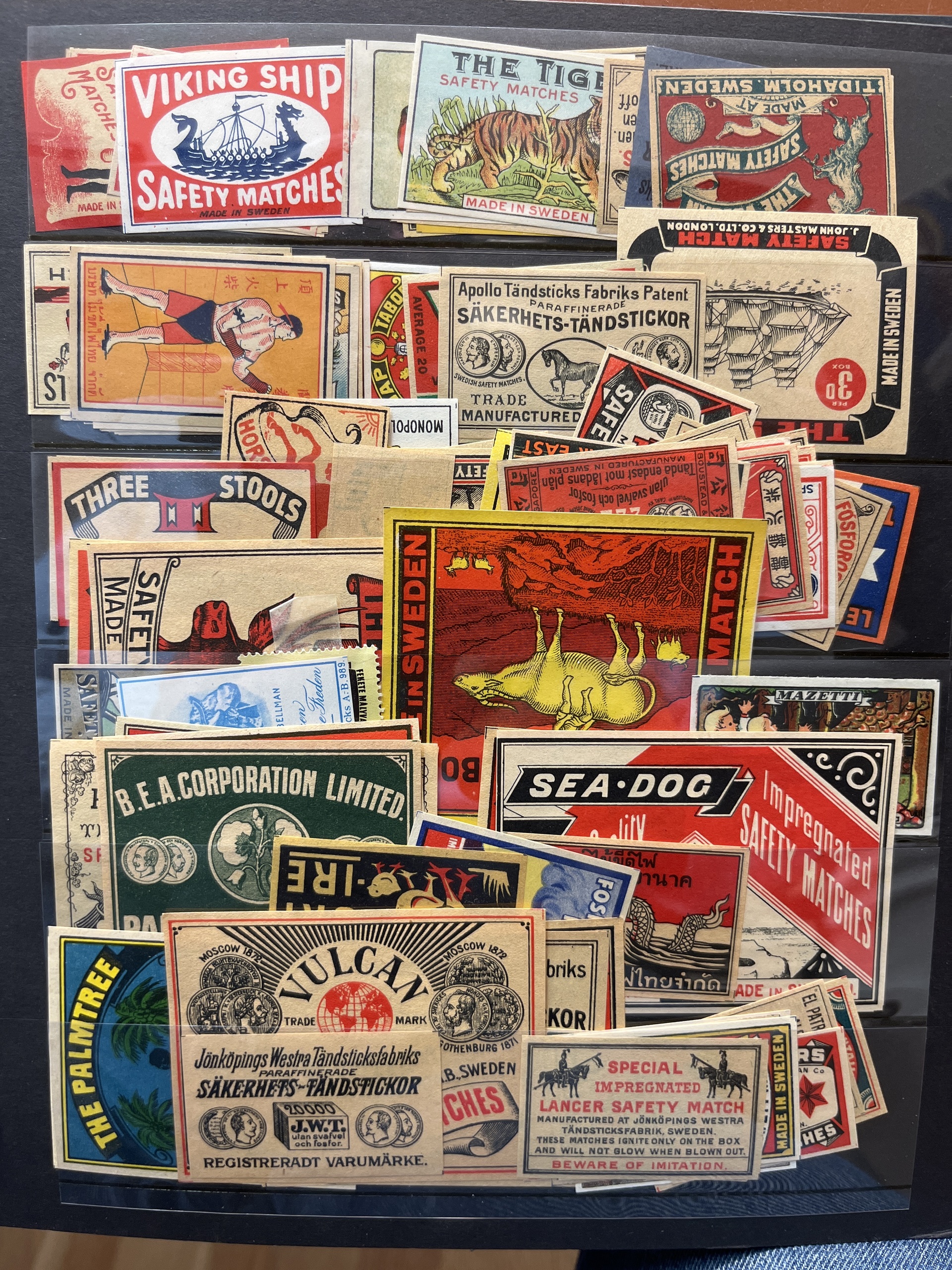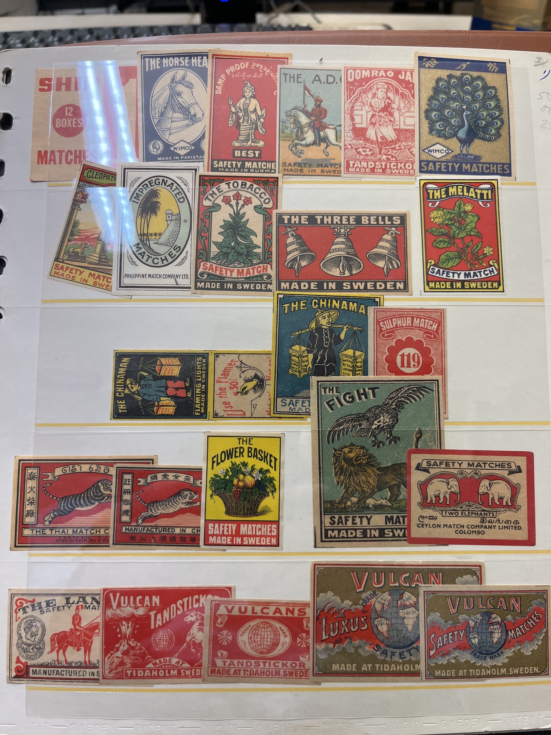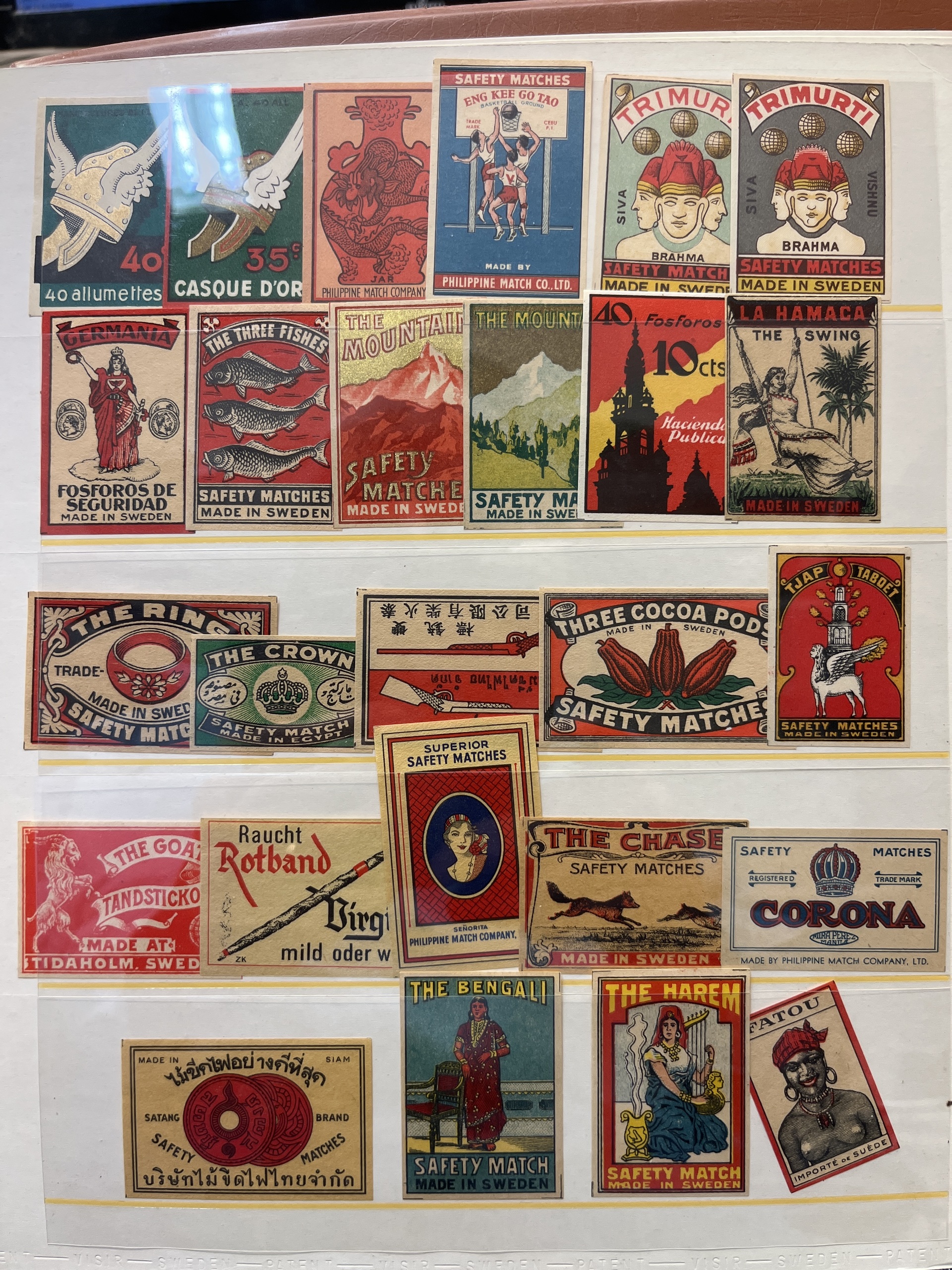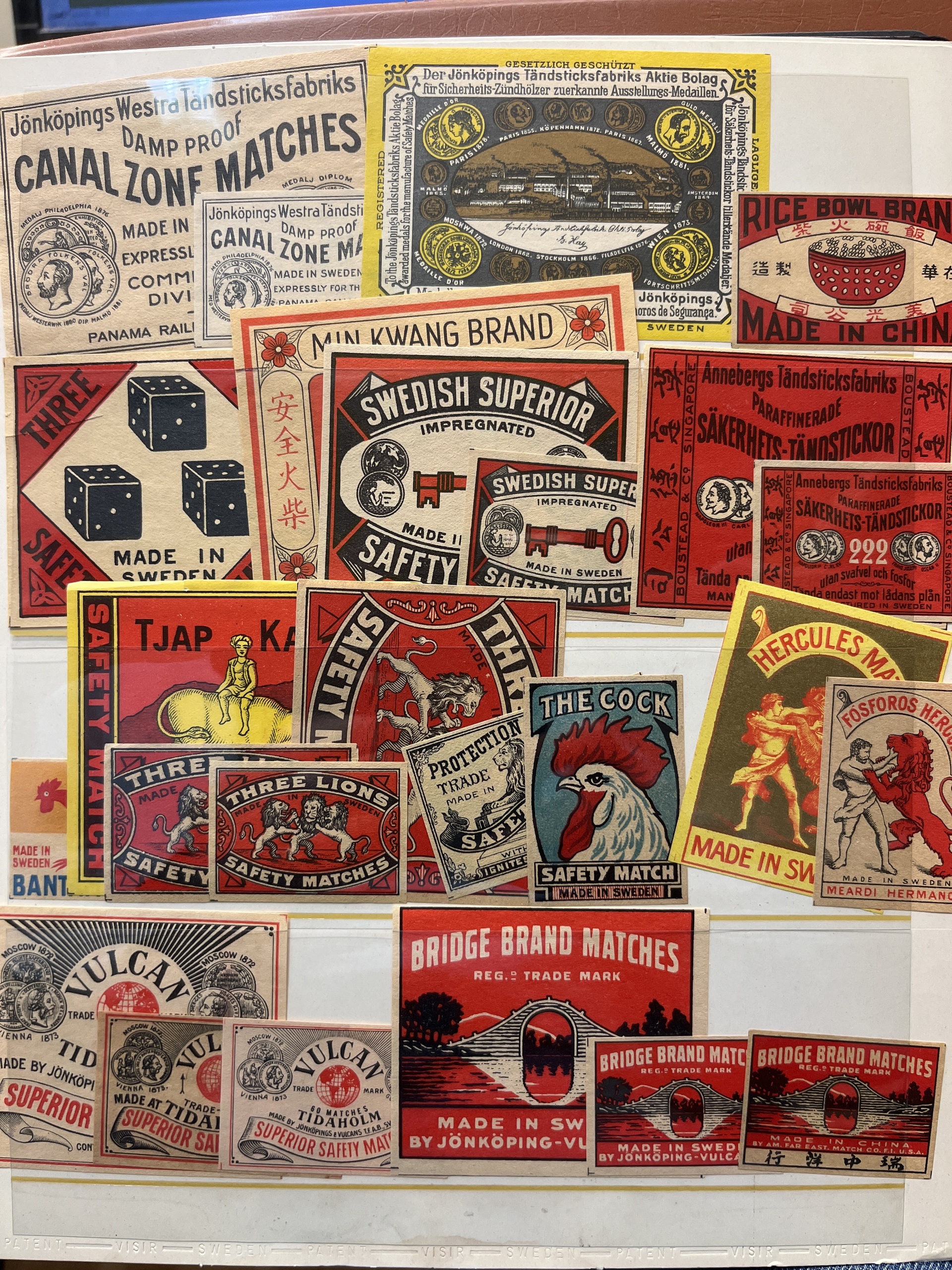 ALL WORLD. Lot ★★/★/⊙ in visir album. With matchstick labels, Swedish face value and some stamps from Norway. Almost entire lot is presented at www.philea.se.