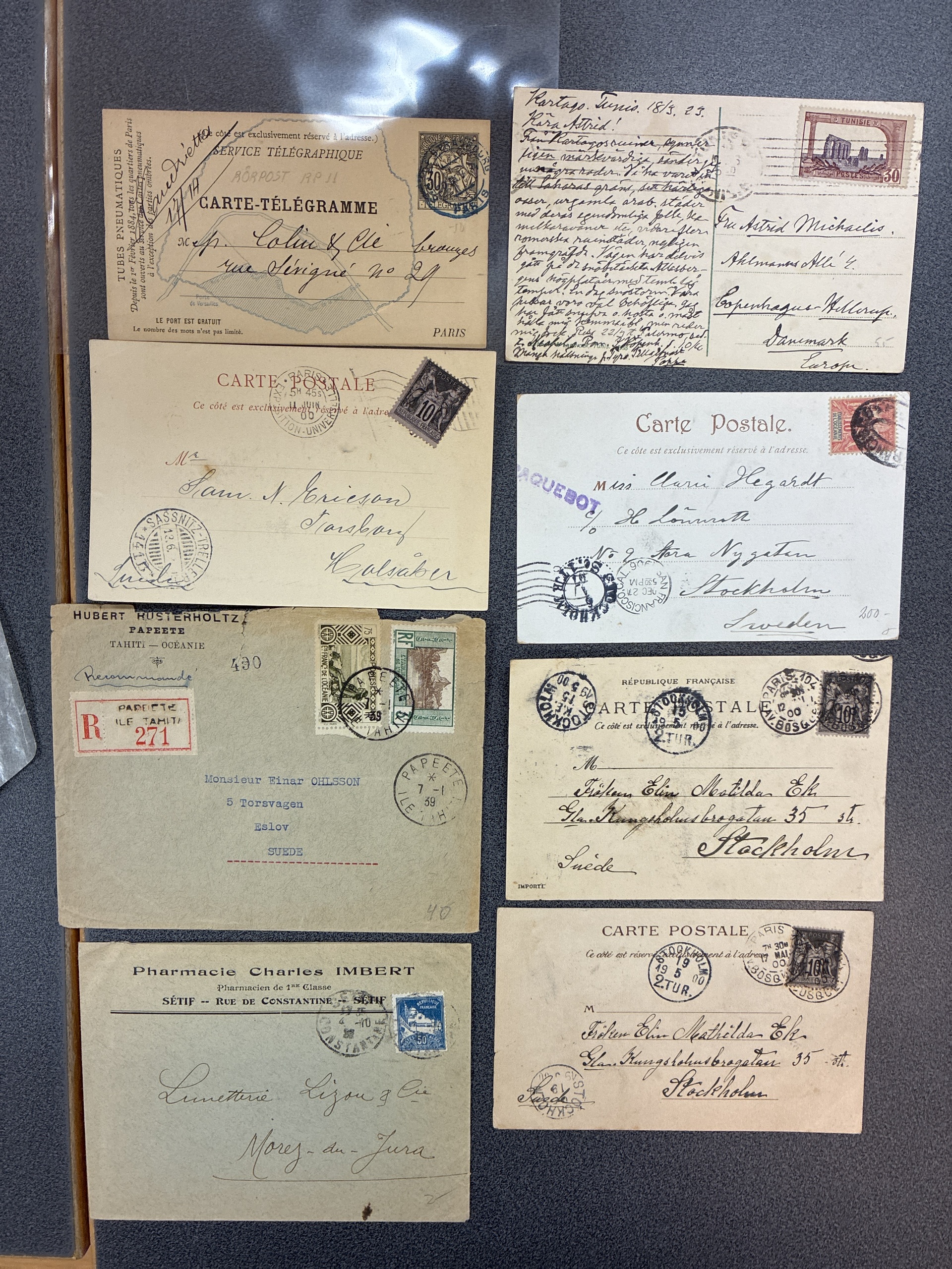 ALL WORLD. Accumulation covers 1900–1940. 13 postcards ore covers from French colonies. The entire lot is presented at www.philea.se.