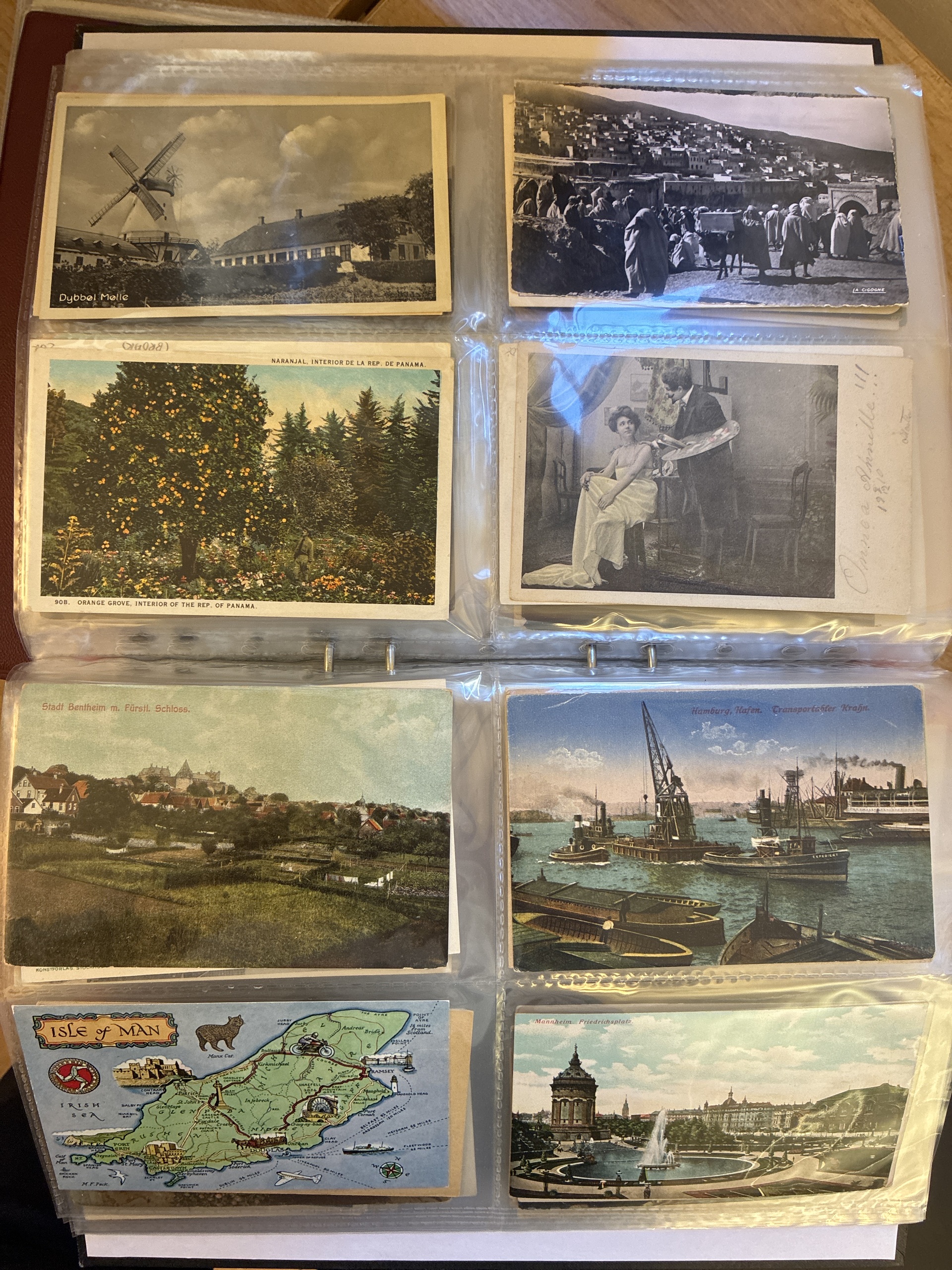 ALL WORLD. Picture postcards, 1900– in box. 3 albums with postcards from different countries including 8 cards from Japan after the atomic bomb. About 500 cards.Please see a selection of scans at www.philea.se. Approx. 5 kg.
