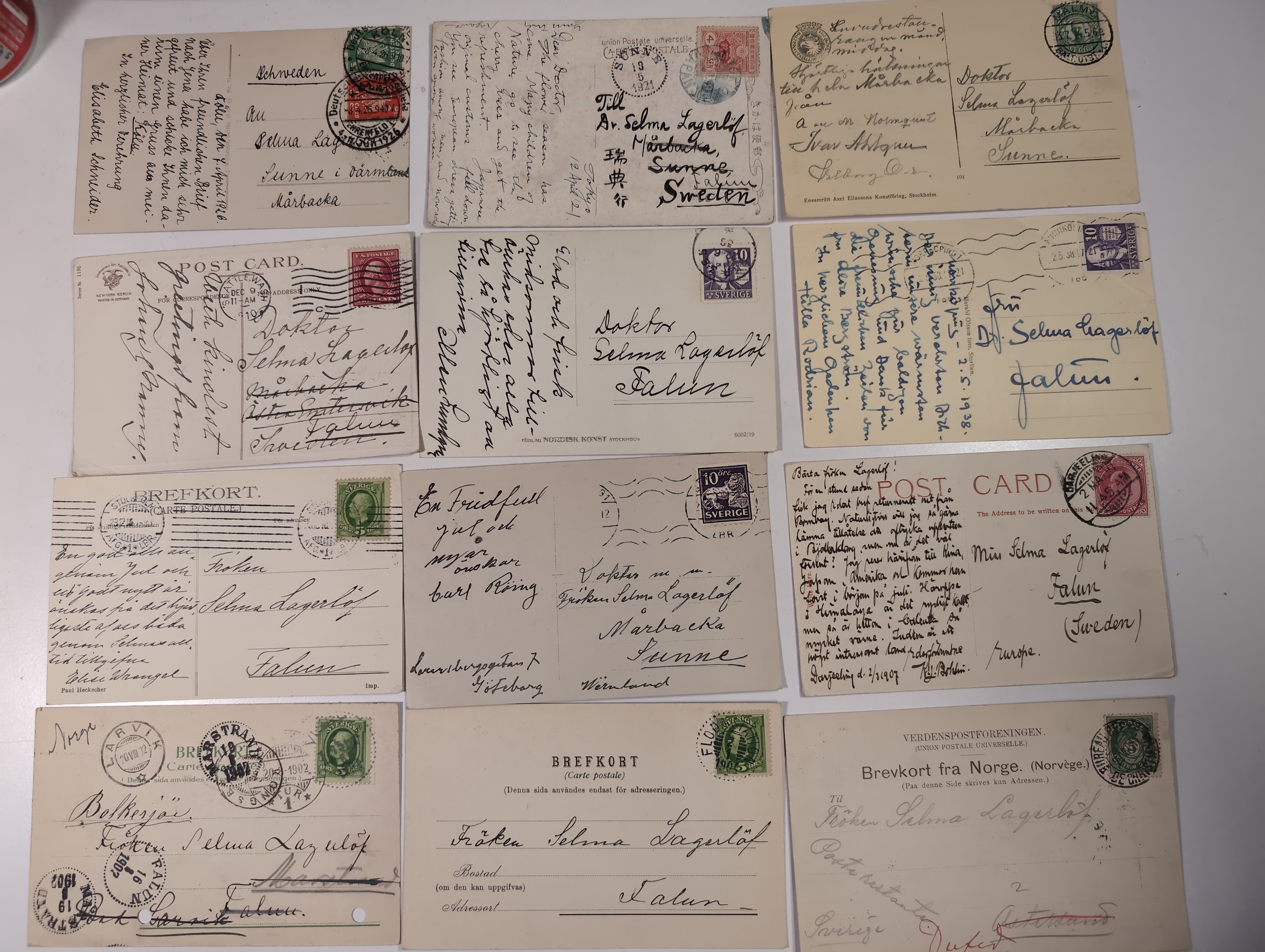 ALL WORLD, Mixed. Accumulation covers 1900–1950s in box. incl. Post Cards. very much related to Selma Lagerlöf and her family incl. one card written by Selma from Germany to her mother Lousie Lagerlöf, also 25+ cards sent to Selma. Please see a selection of scans at www.philea.se. Somewhat mixed quality. (300–400)