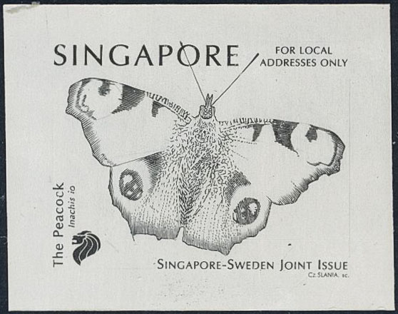 Thematics, Slania, Singapore. Michel 954. (★). 1999 Butterflies – Joint Issue with Sweden. For local addresses. Plate proof in grey.