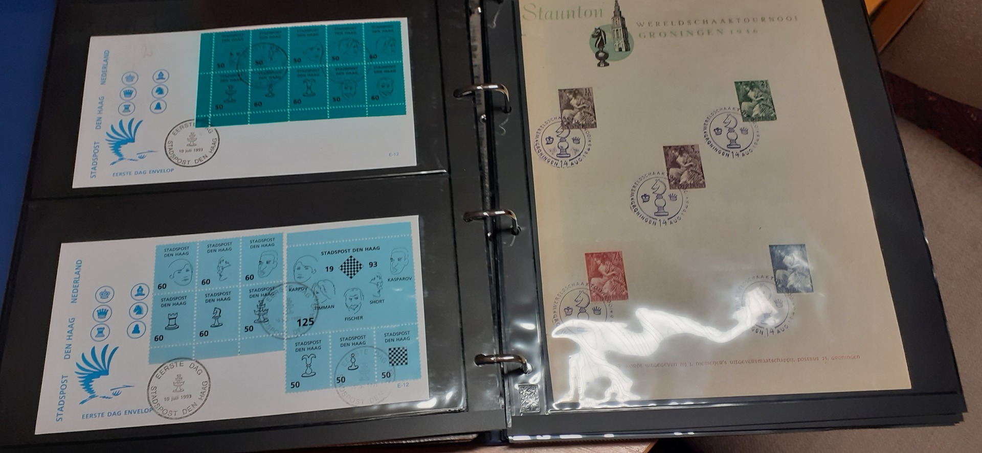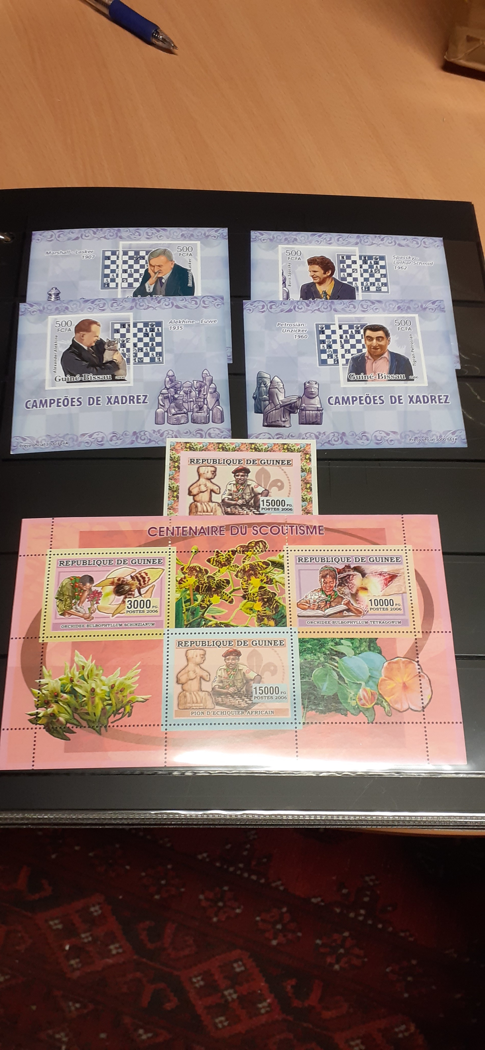 Thematics, Chess. Collection/accumulation ★★/★/⊙ 1930s–2010s in five boxes. A fantastic collection in 30 albums containg sets, souvenir sheets, units, many nice post cards and special cancellation cards, from all over the world incl. better scarce items. Also non-philatelic items such as telephone cards, pictures/ documentation, etc. A great opportunity for the chess enthusisast as well as for the chess philateliist! We have never seen such an extensive chess collection! Please se a wealth of representative photos of the collection on our website. Fine quality. Approx. 88 kg.