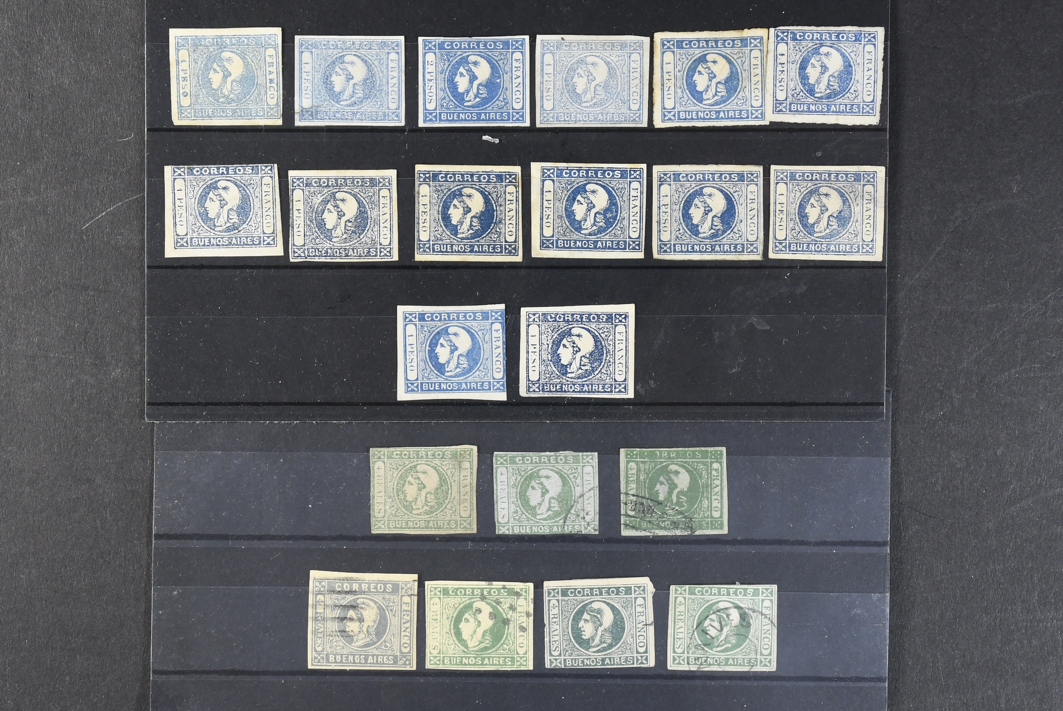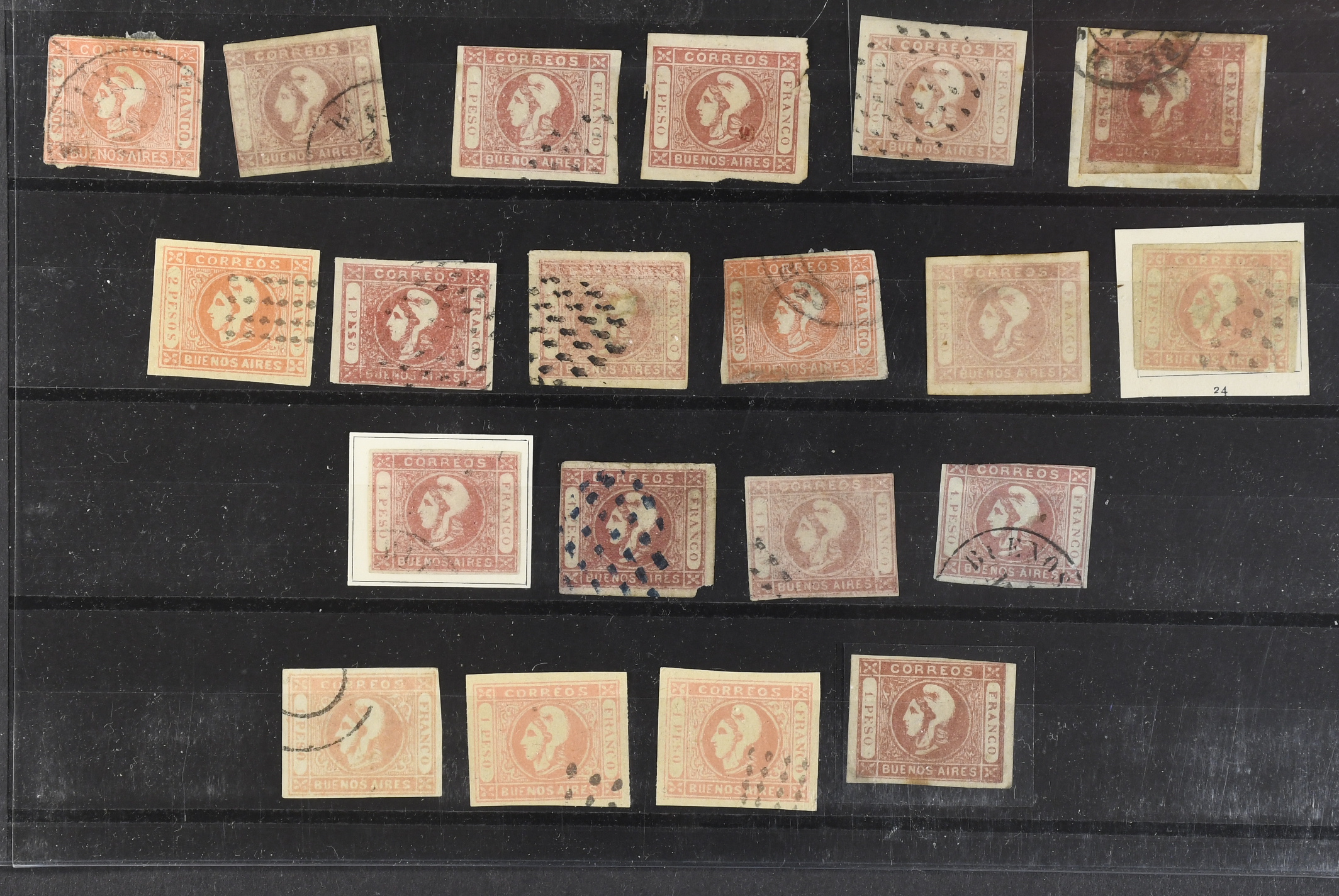 Argentina. Used. Buenos Aires. The work in progress balance of the main collection we sold in the last auction, consisting of different denominations of stones/types, both mint and used of the Liberty Heads, approximately 70 different examples, mostly four margined, including many very good looking to categorise and investigate. Ideal for the specialist, dealer or collector.
