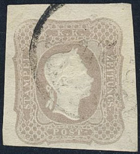 Austria. Michel 23 used, 1861 Newspaper stamp (1.05 Kr) lilac-grey. EUR 200