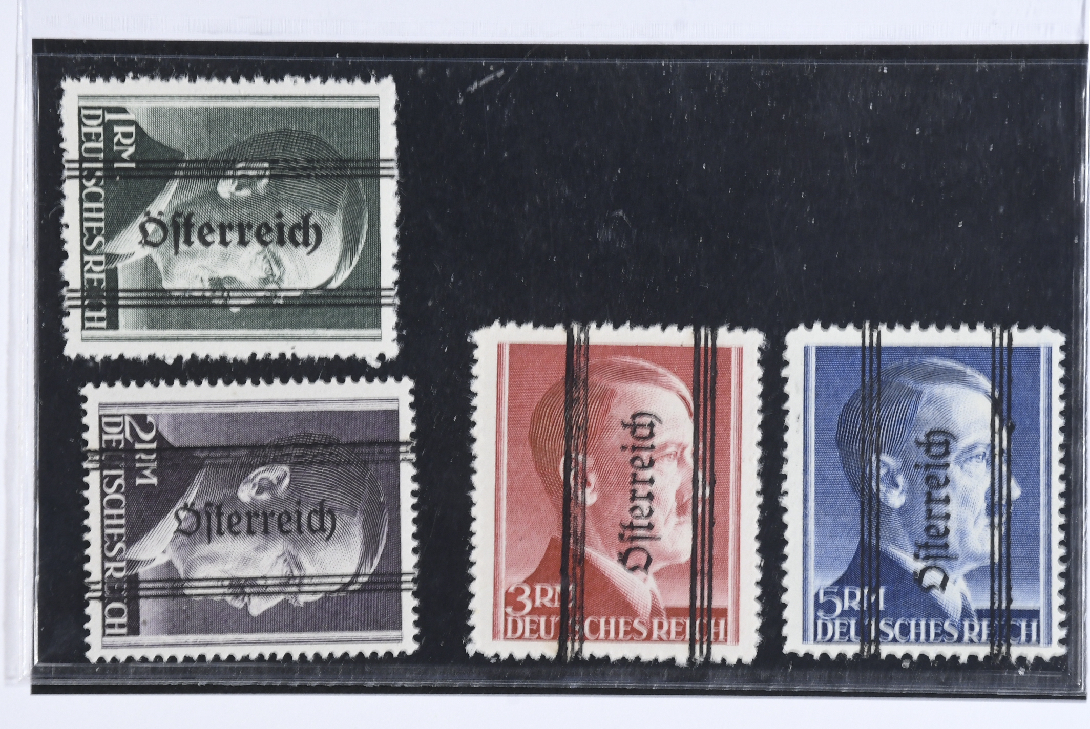 Austria. Michel 693–96 II ★, 1945 Overprint on Hitler SET Type 1 with 16¼ mm overprint (4). EUR 500 if**