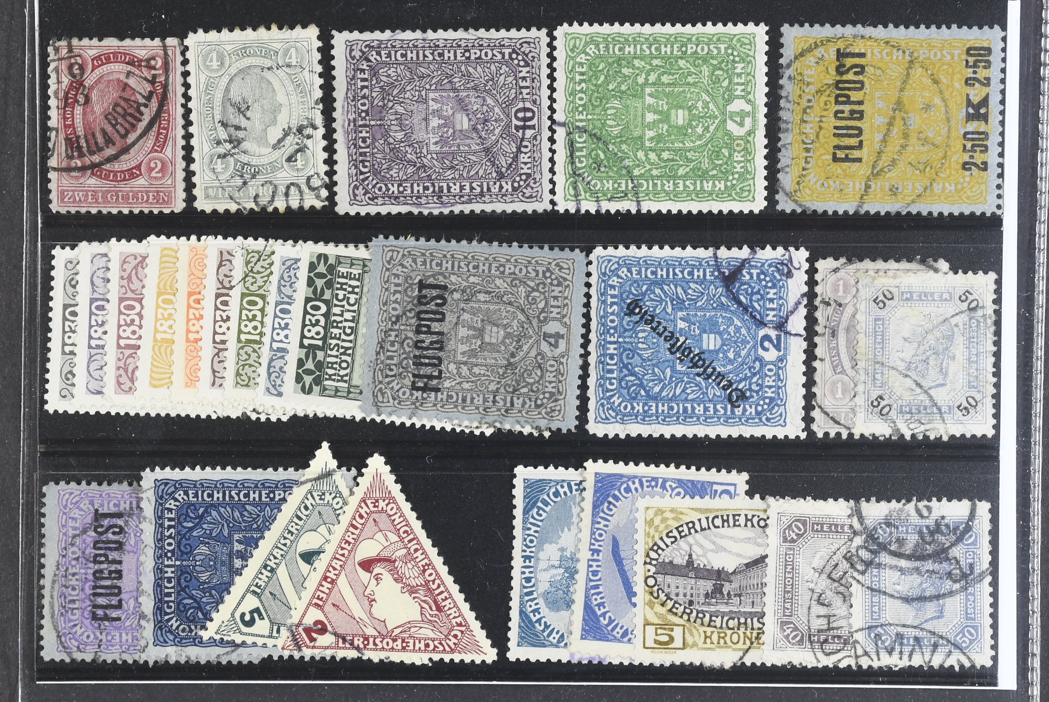 Austria. Used 1890–1919. All different, e.g. Mi 62, 83, 102, 162, 207 I, 210 II, 226x, 227y, 243 IIBa (perf 11½). Mostly good quality. Mi € 63 (27)