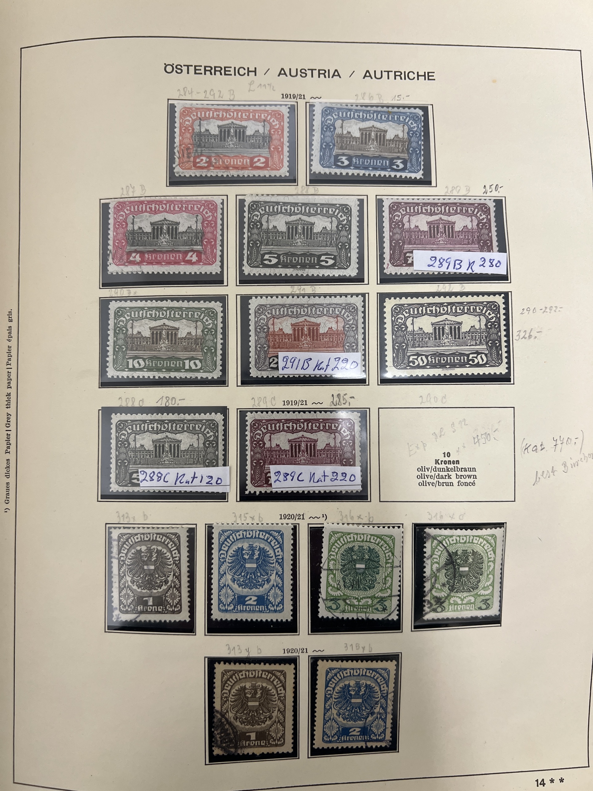 Austria, areas. Austria, Collection in Schaubek album 1863–1969, with some highlights, Mi 156, 175–77 and other better stamps around 1920, all mint. Early parts sparscly filled, and the good series in the 30s are missing. Please inspect.