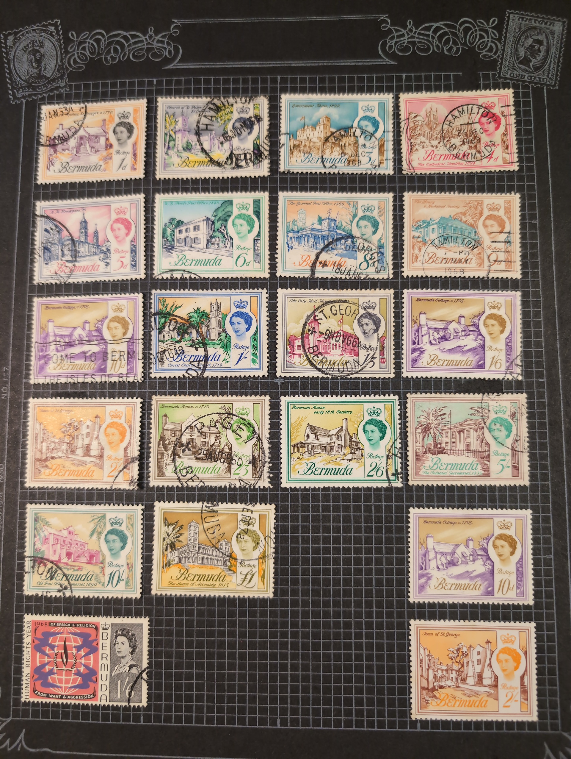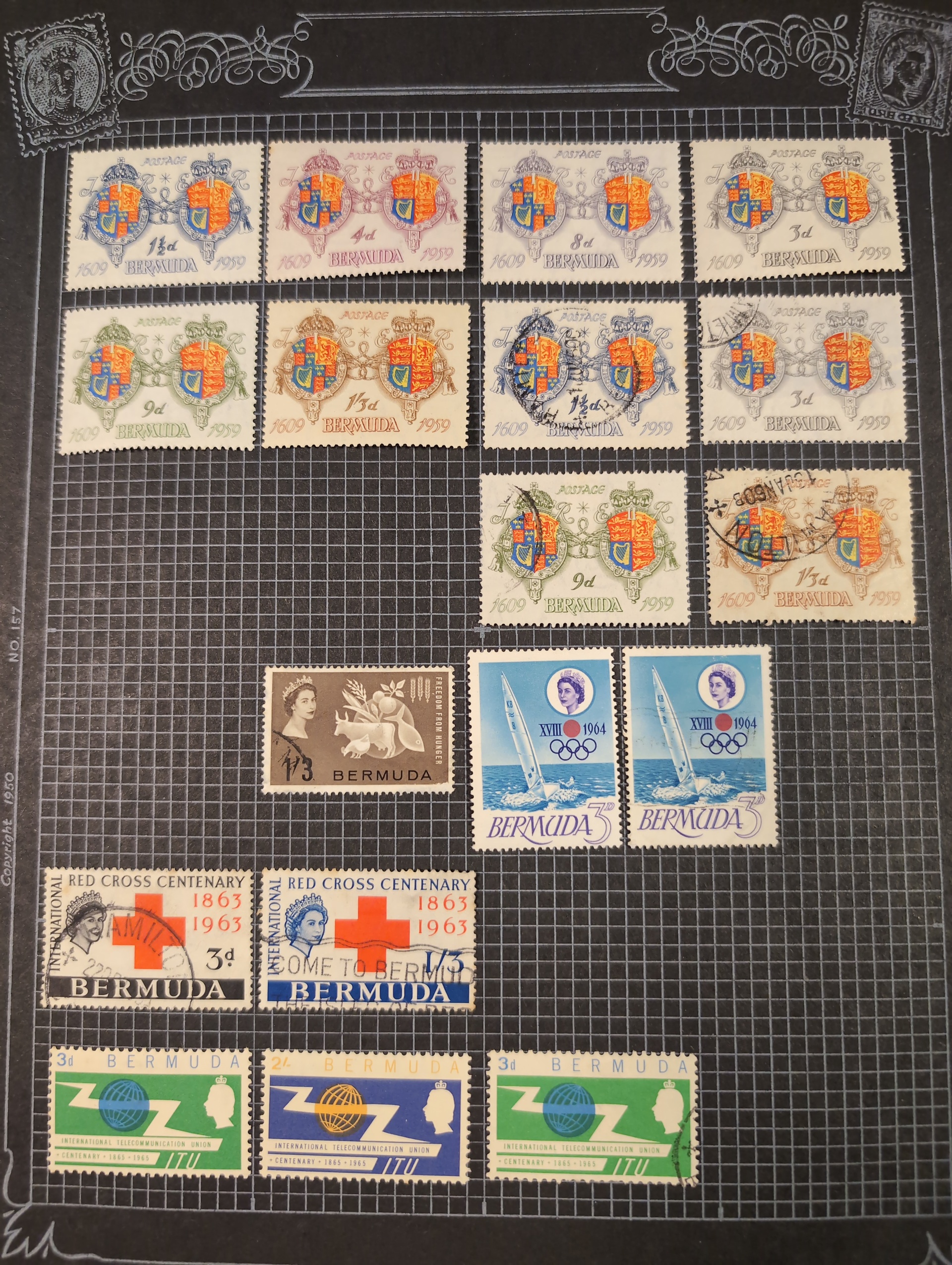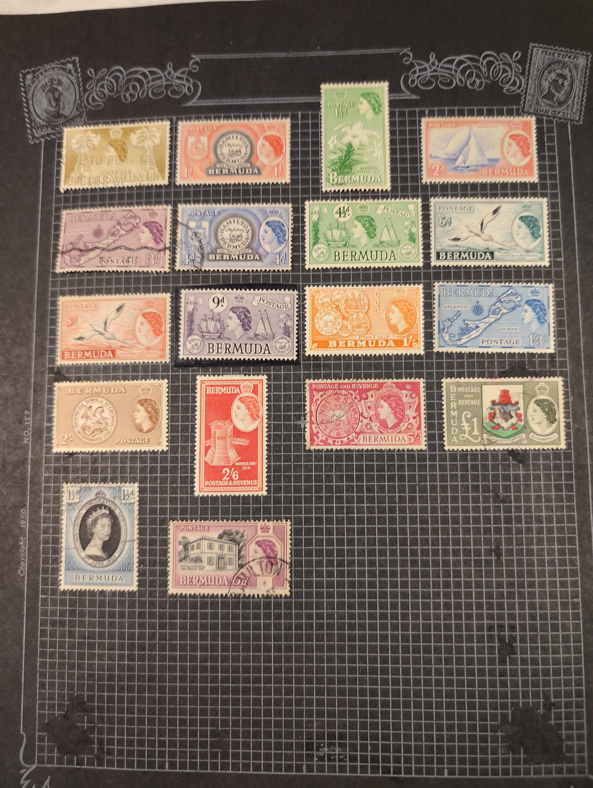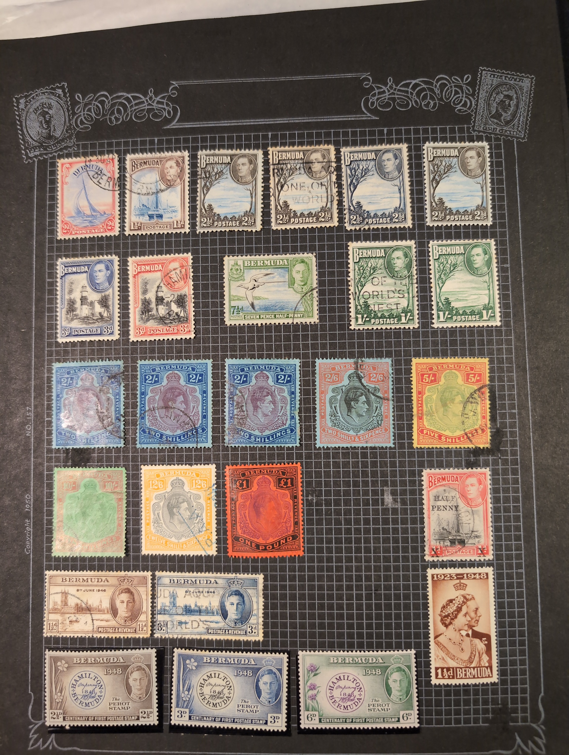 Bermuda. Lot mostly used 1937–1960s on leaves. Incl KGVI to £1 mint, 12s6d fiscal and faults. QEII up to £1×2 different, etc. The entire lot is presented at www.philea.se. Mostly fine quality. (80)
