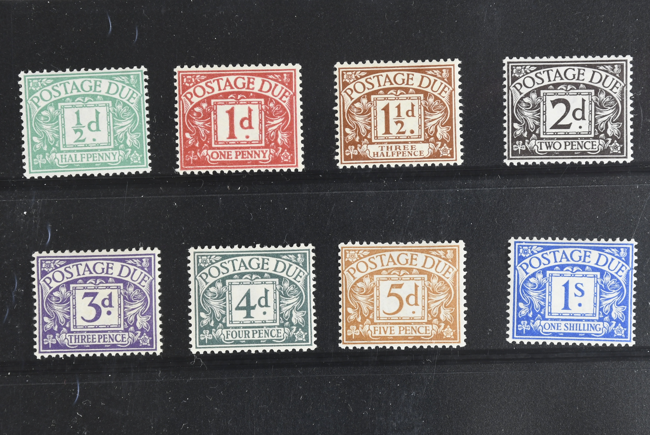Britain. Postage due Michel 1–8 ★★, 1914 with wmk Simple Cypher SET (8). Unmounted Mint Set, 5d with some short perfs. EUR 160 for mint, ** much more.