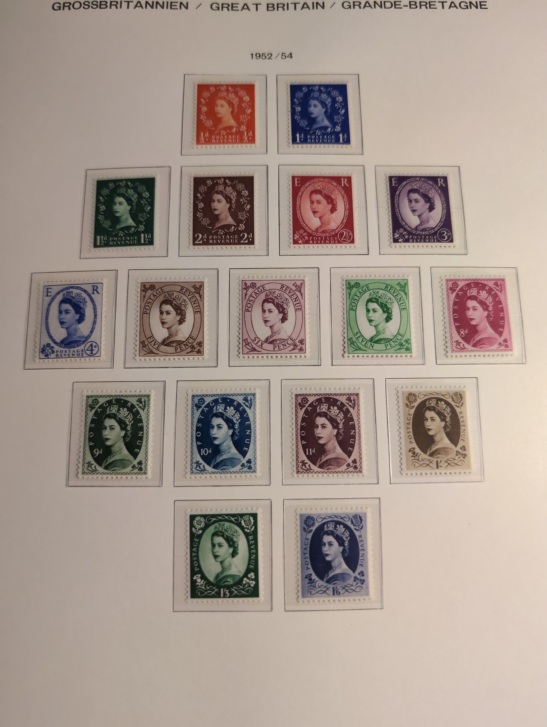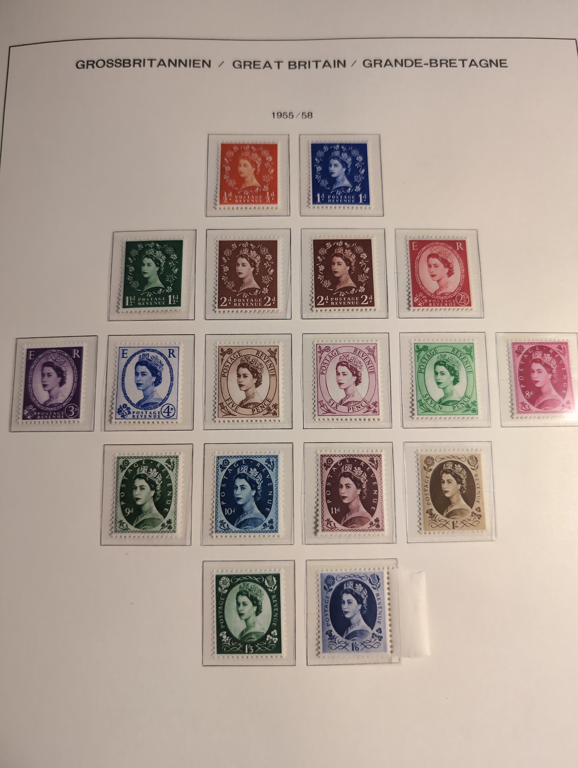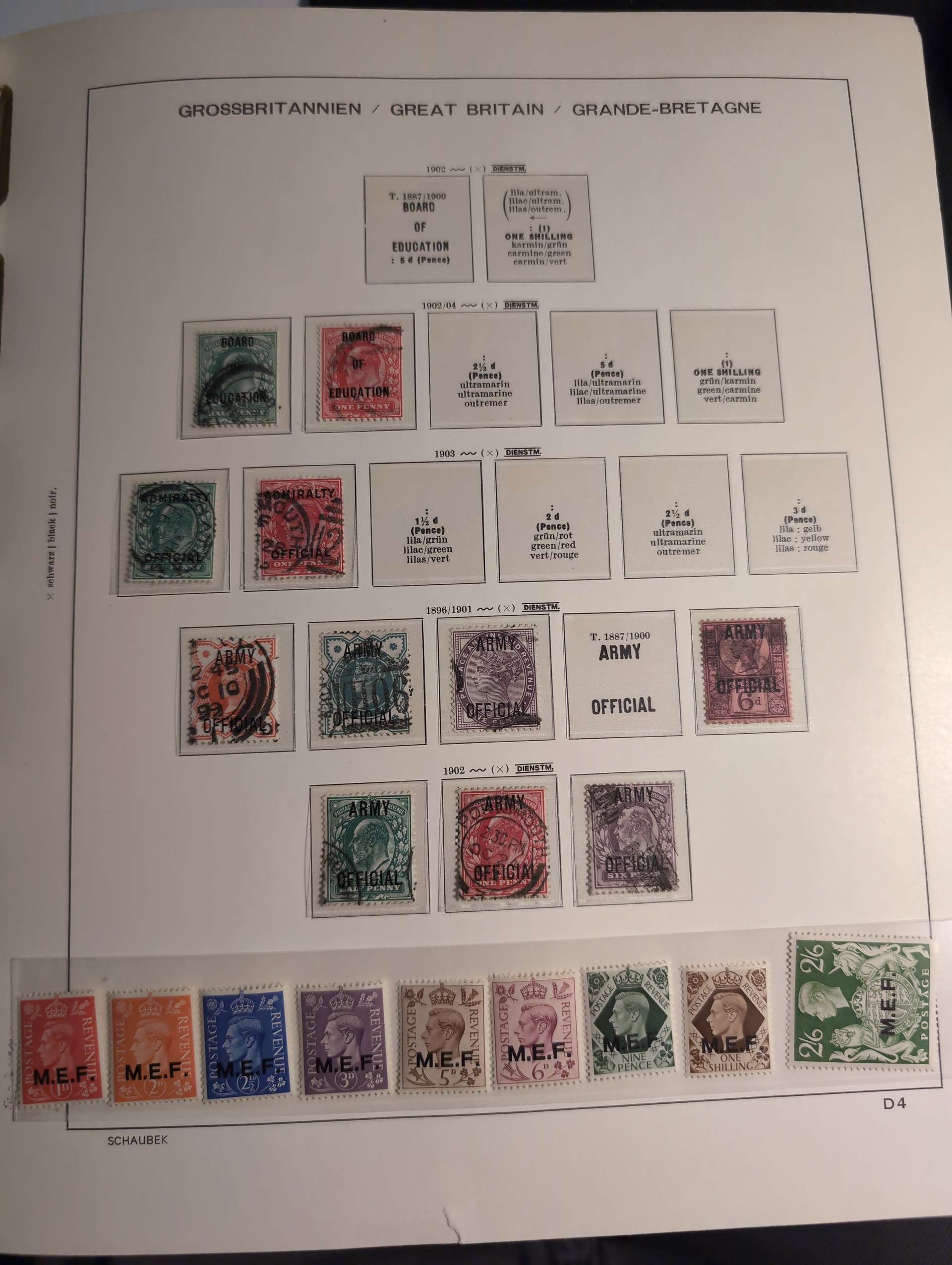 Britain. Collection ★★/★/⊙ 1841–1990 in two Schaubek albums. Starts with a few better QV in mixed condition and KEVII £1 and a good section of officials all used. KGV and KGVI mostly mint with many UM, but nothing expensive. QEII almost complete UM incl. phosphors. Missing the early castles sets. Please see a selection of scans at www.philea.se. Mostly fine quality. Approx. 5 kg. (1000+)