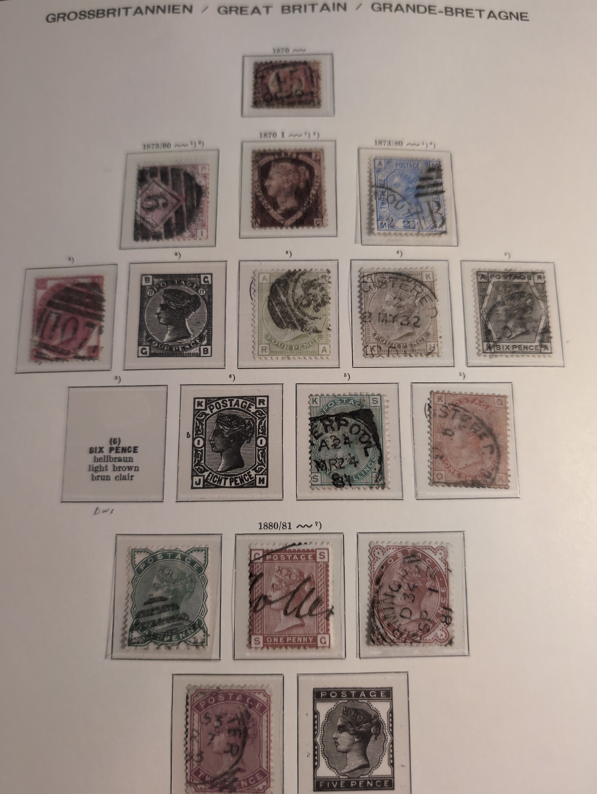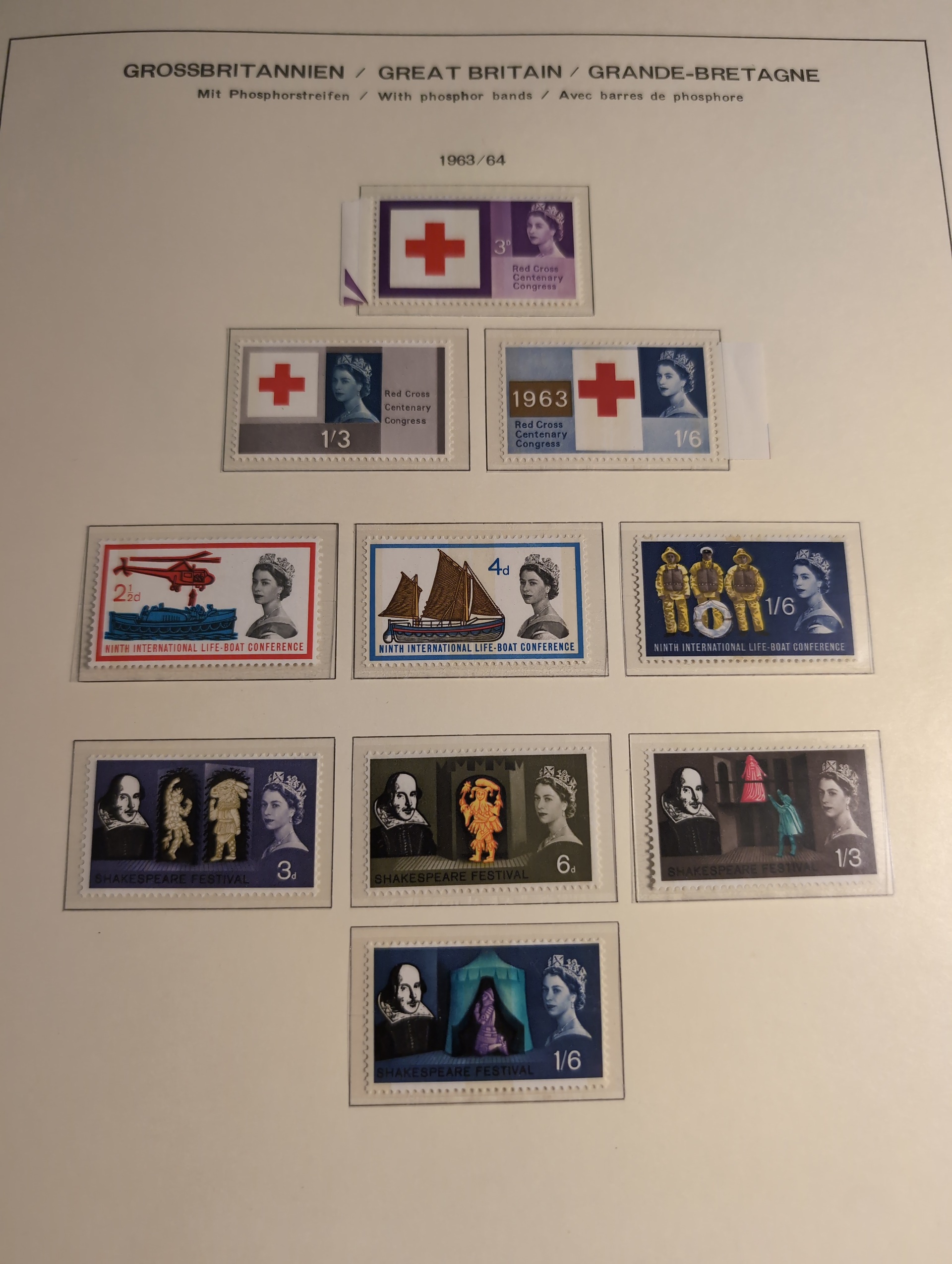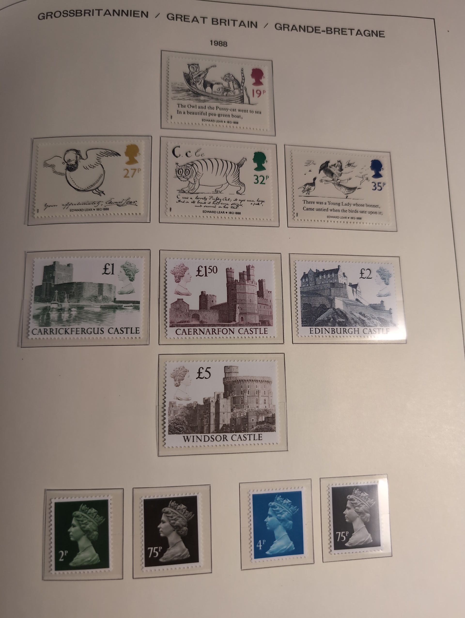 Britain. Collection ★★/★/⊙ 1841–1990 in two Schaubek albums. Starts with a few better QV in mixed condition and KEVII £1 and a good section of officials all used. KGV and KGVI mostly mint with many UM, but nothing expensive. QEII almost complete UM incl. phosphors. Missing the early castles sets. Please see a selection of scans at www.philea.se. Mostly fine quality. Approx. 5 kg. (1000+)