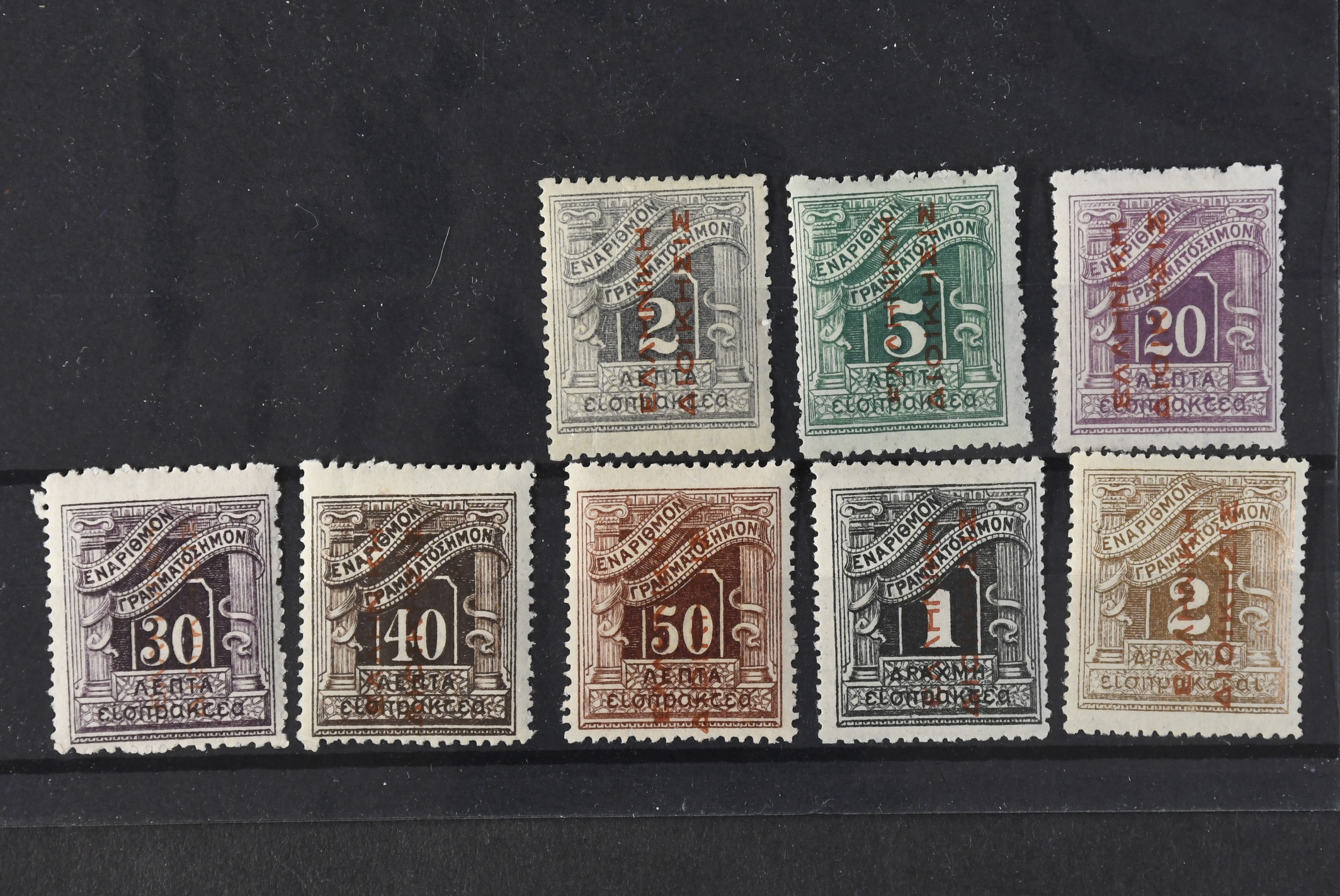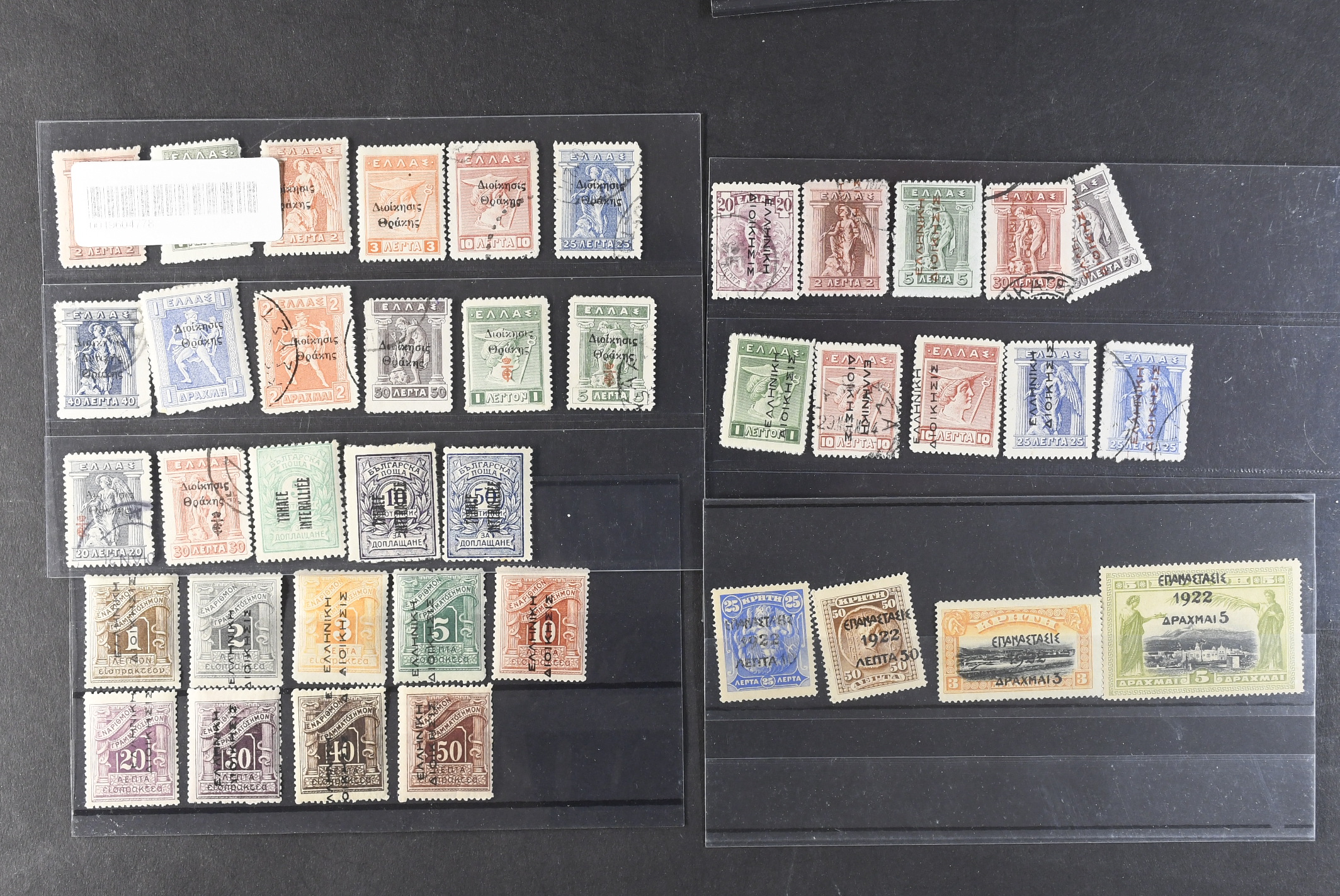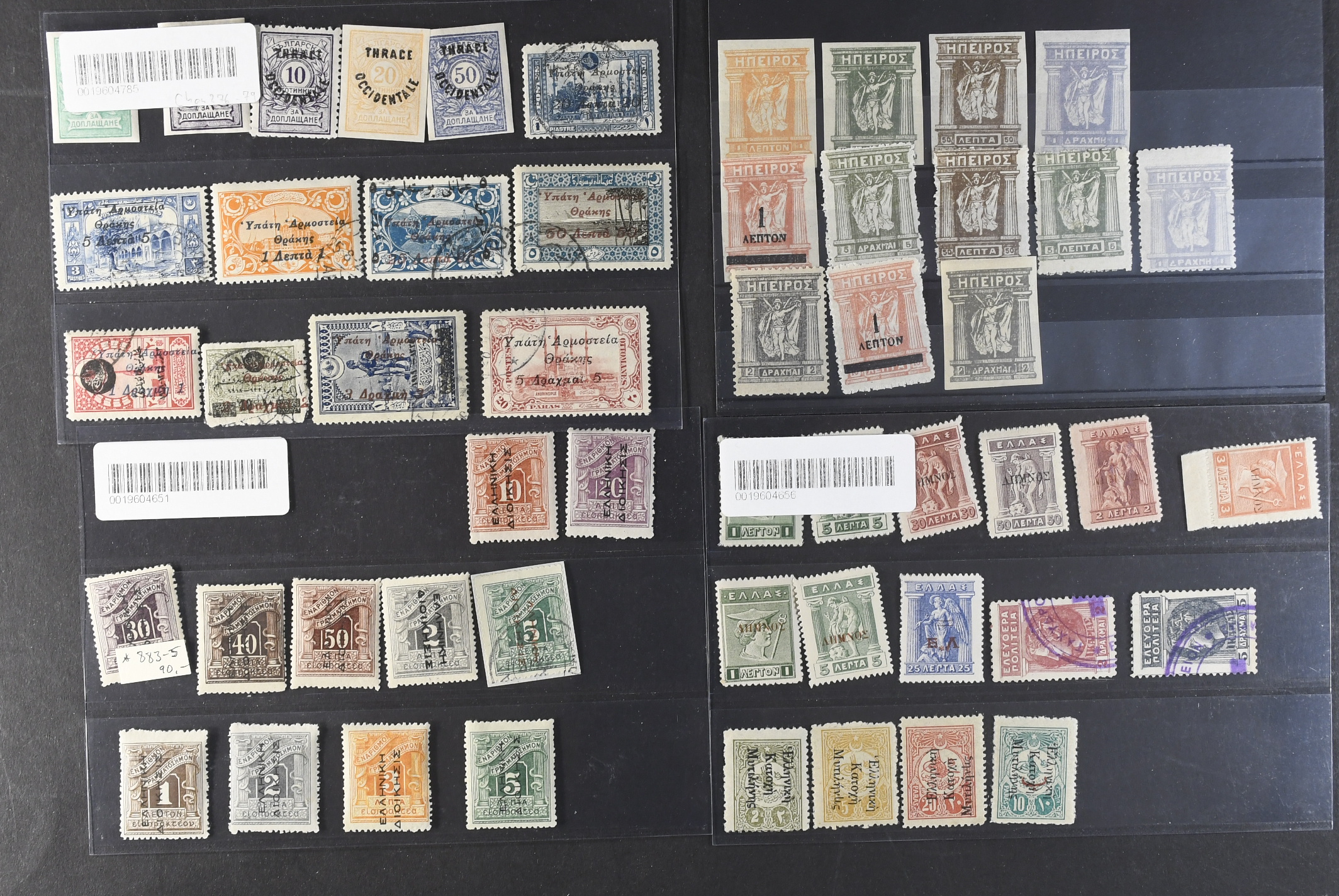 Greece. Lot ★/⊙ on nine stock cards. Areas, also San Marino.