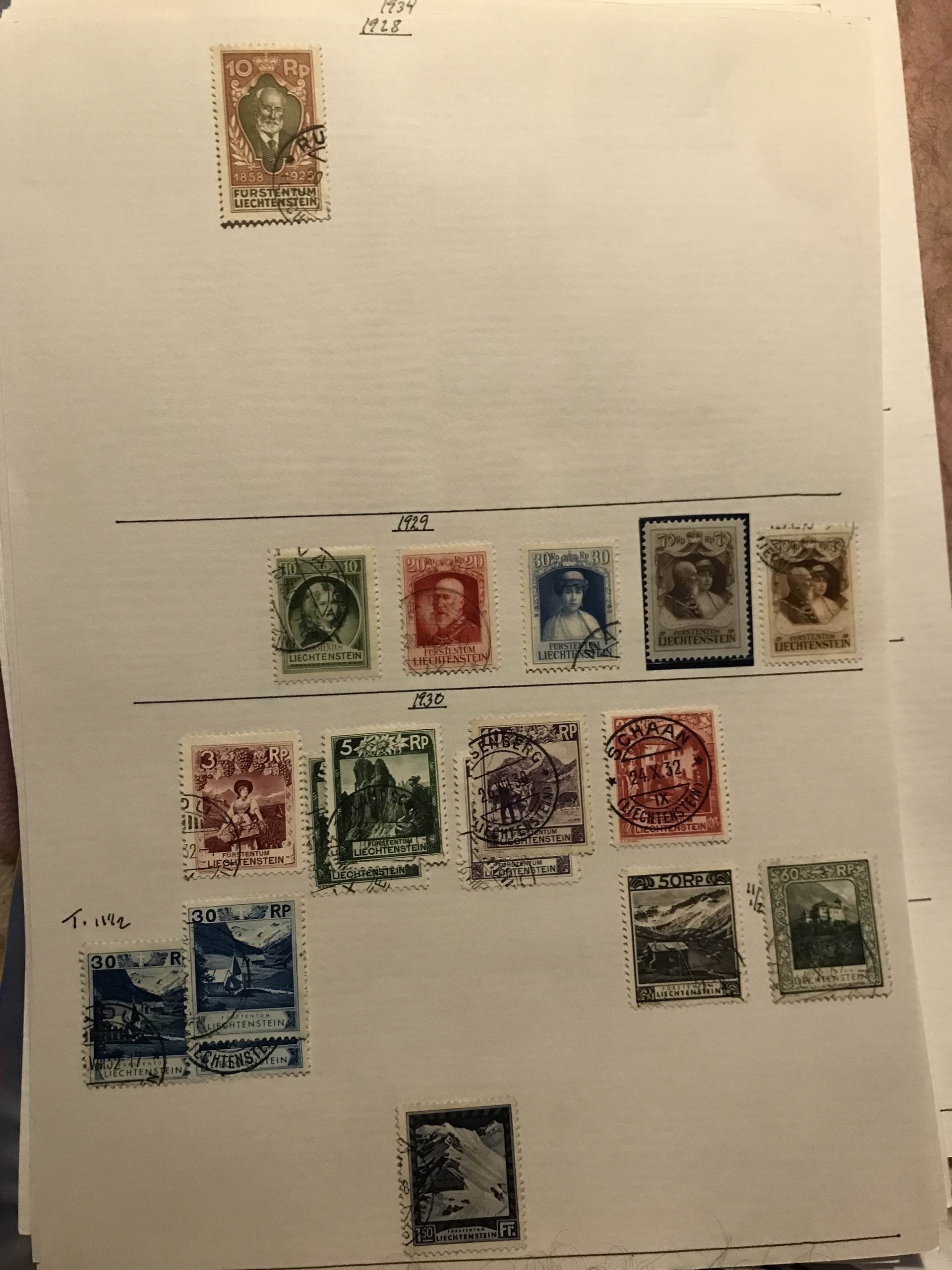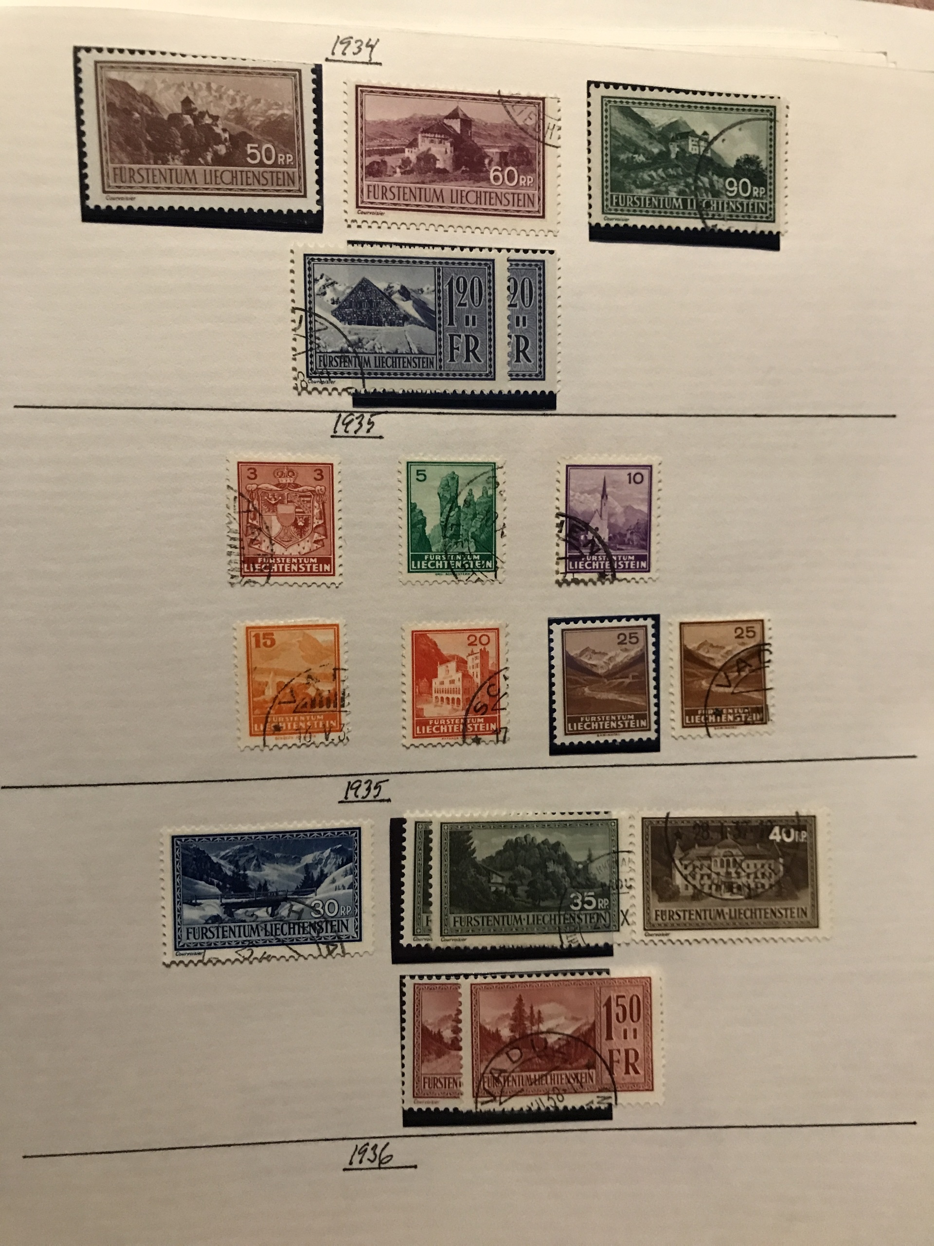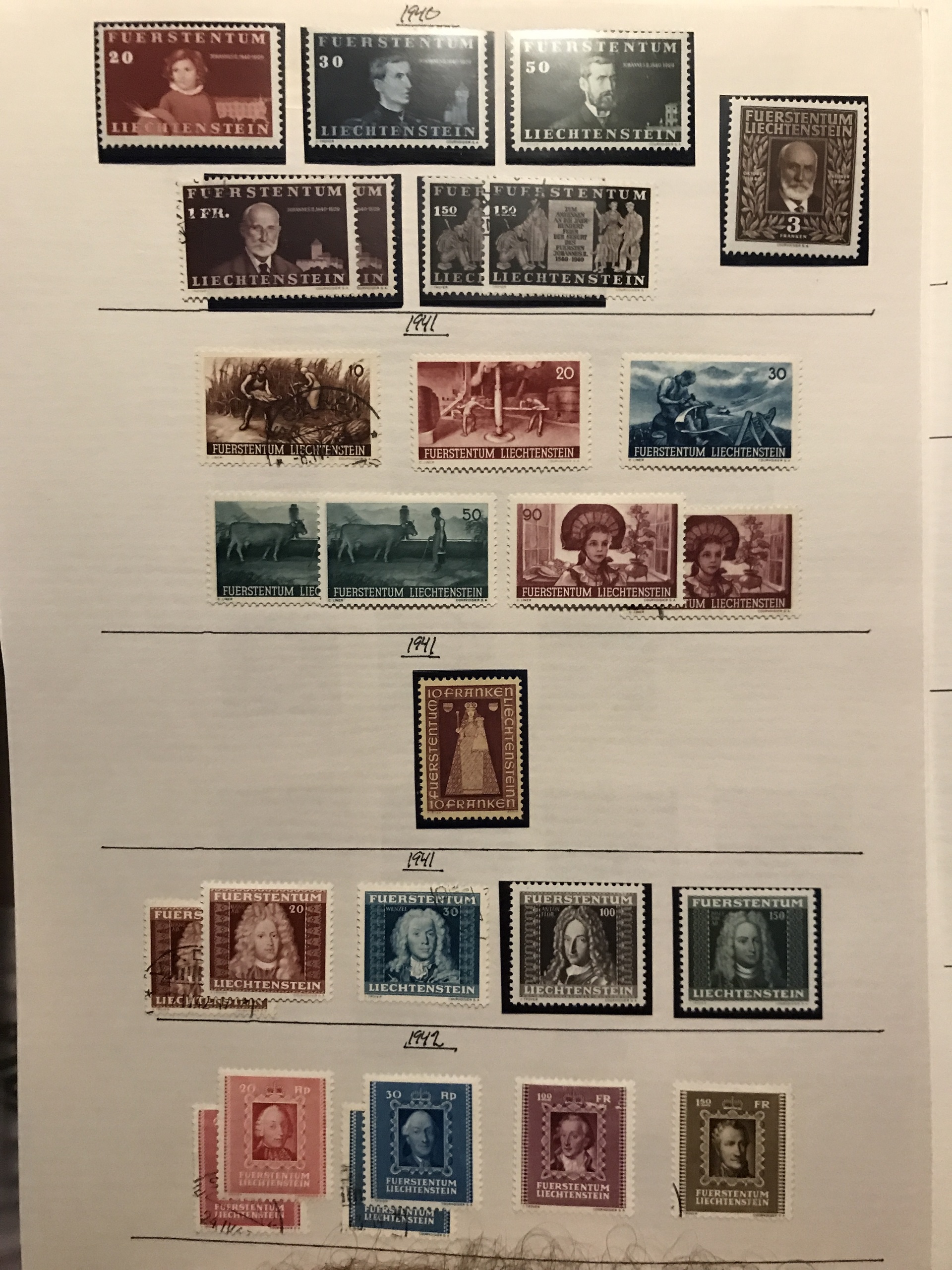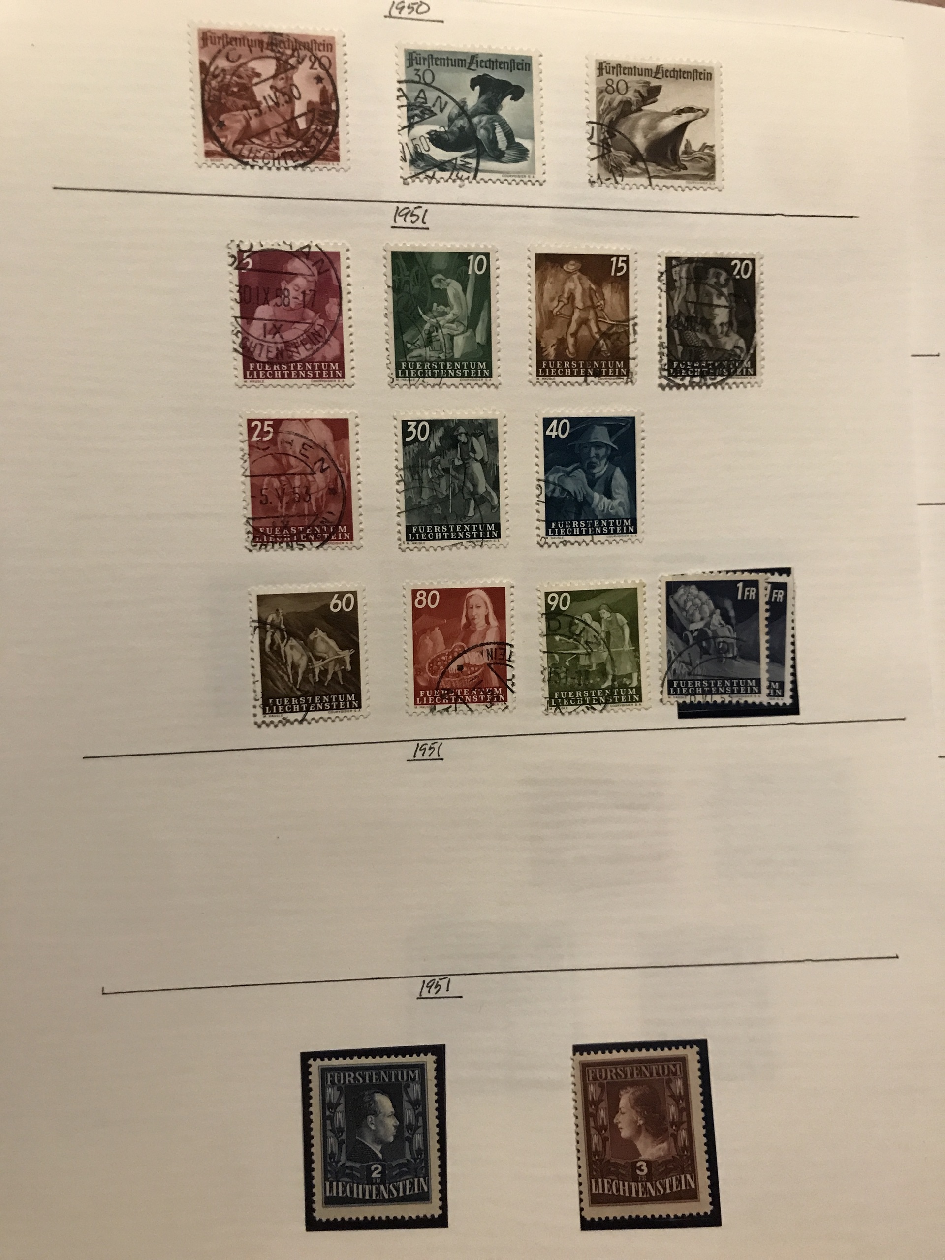 Liechtenstein. ★★/★/⊙. Mainly o/* collection 1912-63 on leaves incl. e.g. Mi1-3x+y used, Mi46-52B, 65-79 and 126-39, Official stamps etc. Please see a selection of scans at www.philea.se. (420)